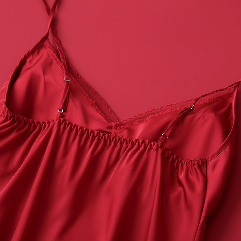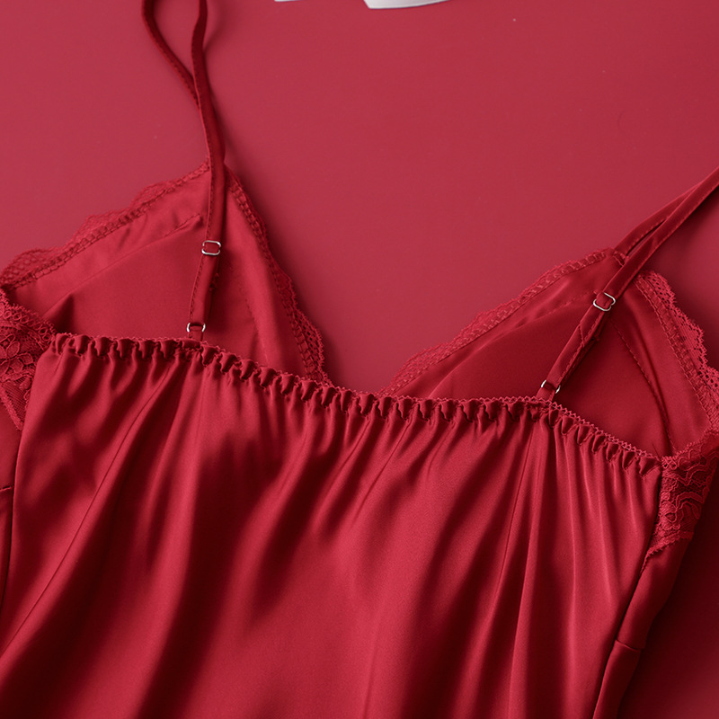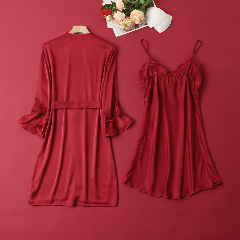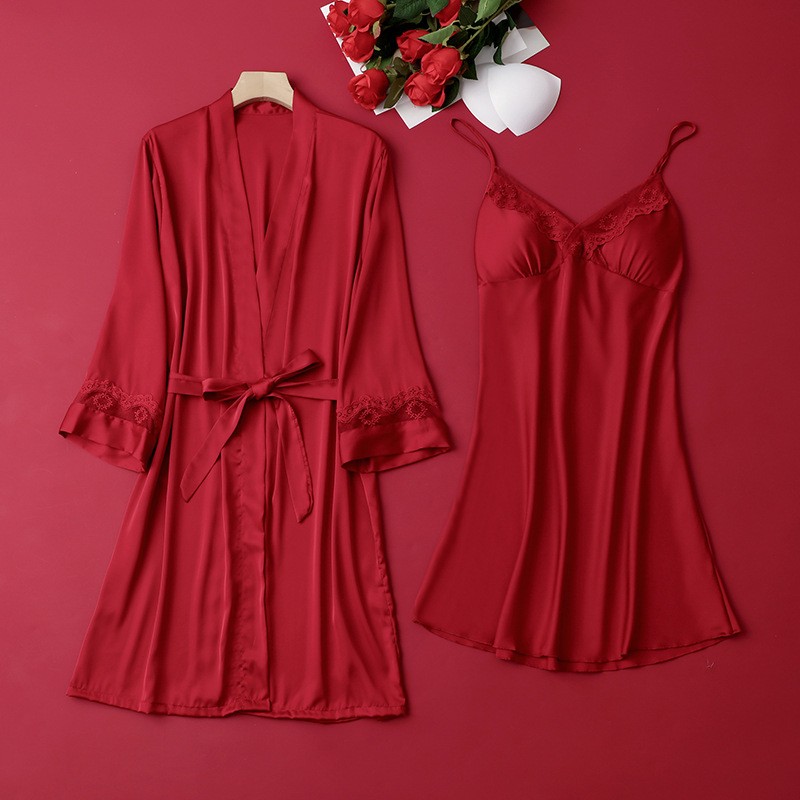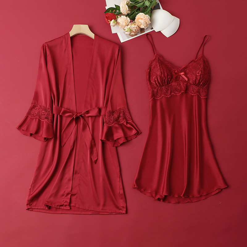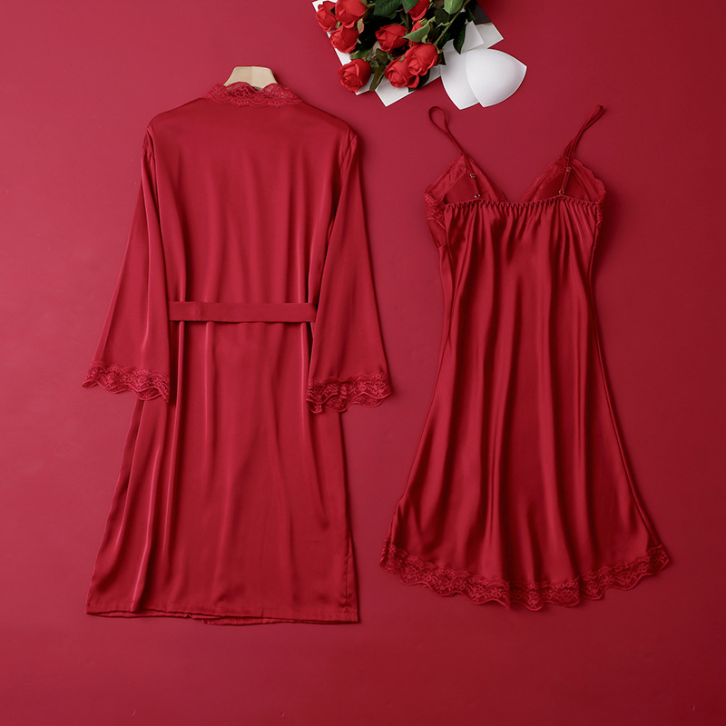 [선물 상자] 아침 가운 여성의 투피스 봄과 가을 여름 결혼식 붉은 신부 섹시한 결혼식 밤 잠옷 아이스 실크스토어 가기