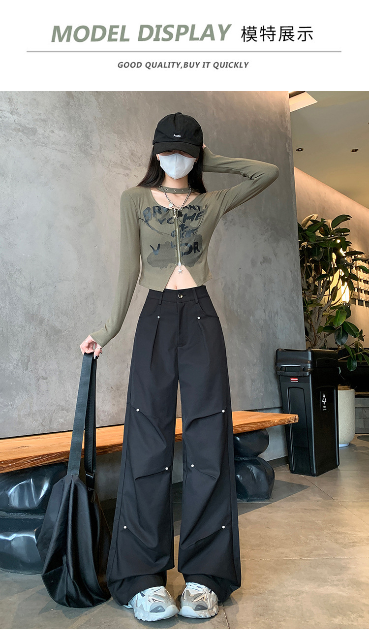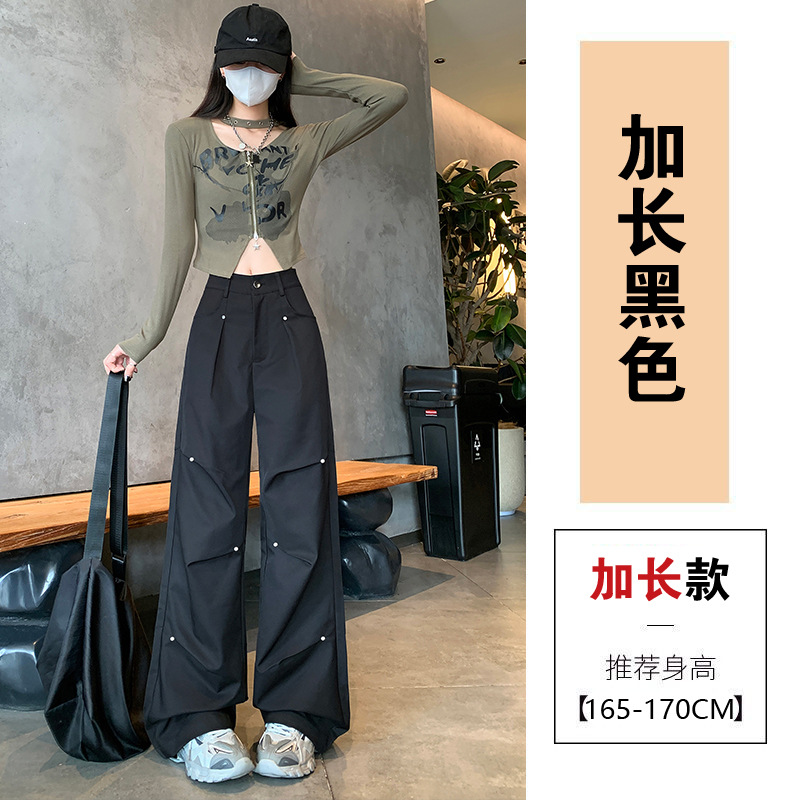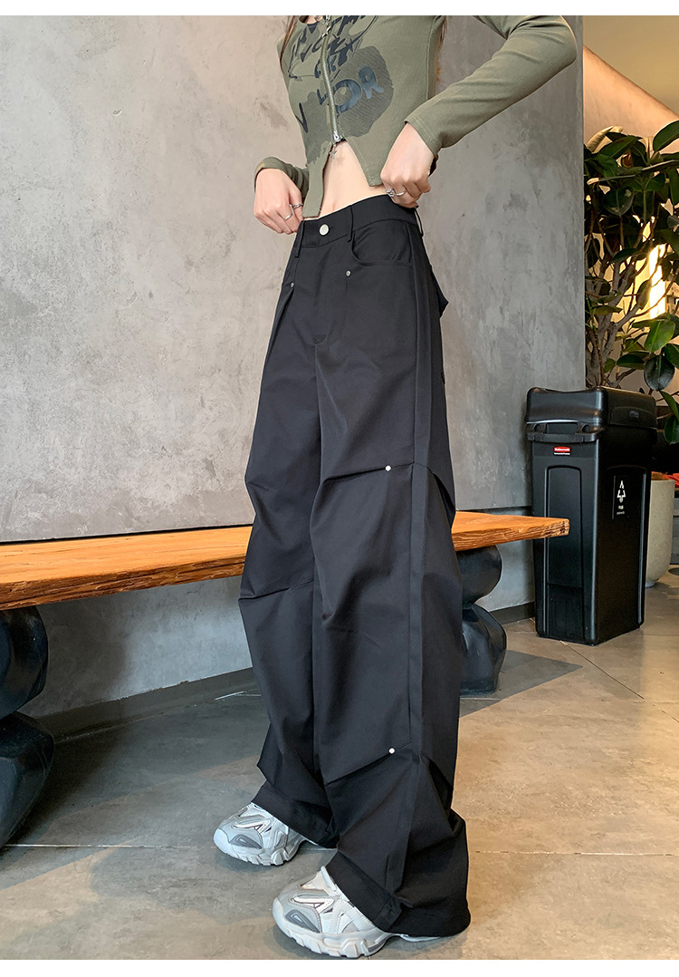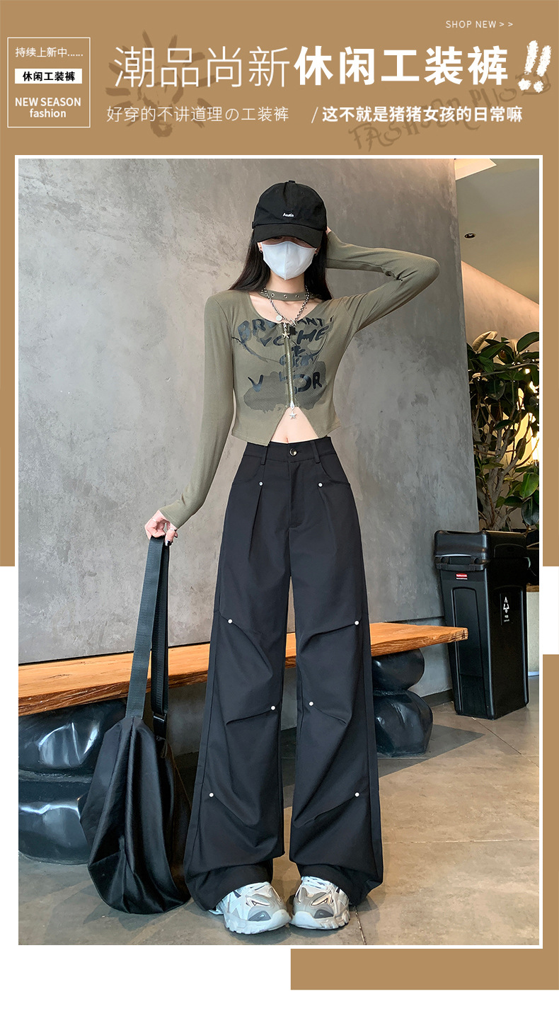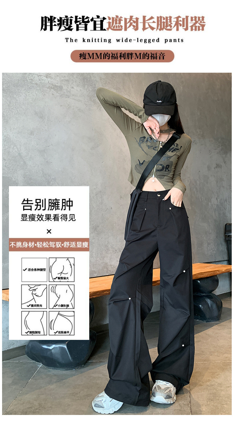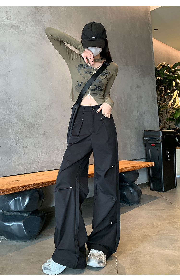 아메리칸 스타일 스파이스 소녀 블랙 리우 네일 크록 바지 여성의 가을 2024 높은 허리 느슨한 스포츠 캐주얼 등산 와이드 다리 바지스토어 가기