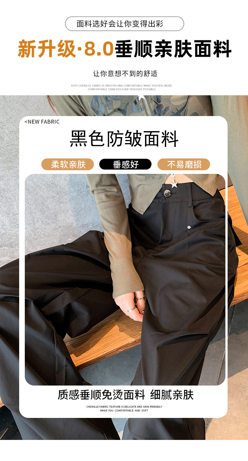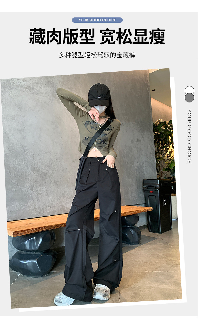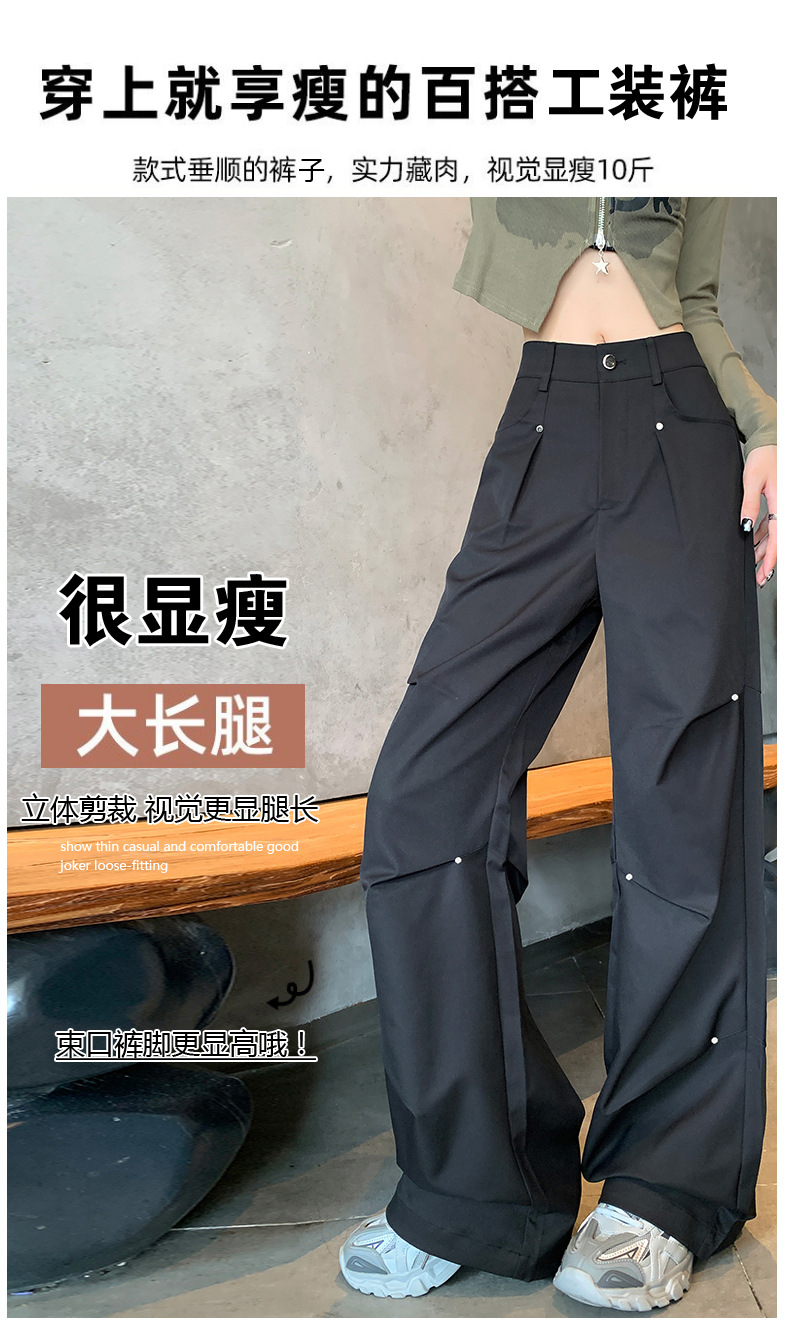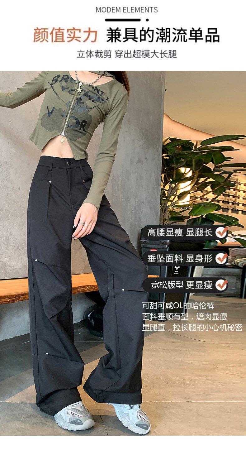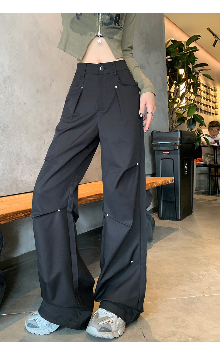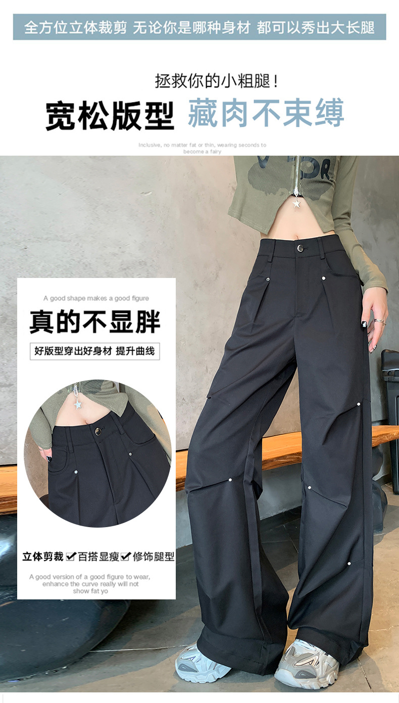 아메리칸 스타일 스파이스 소녀 블랙 리우 네일 크록 바지 여성의 가을 2024 높은 허리 느슨한 스포츠 캐주얼 등산 와이드 다리 바지스토어 가기