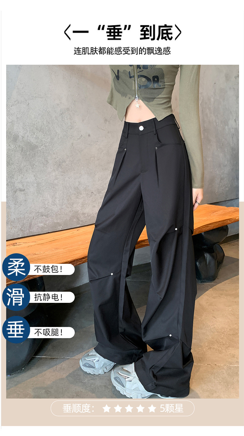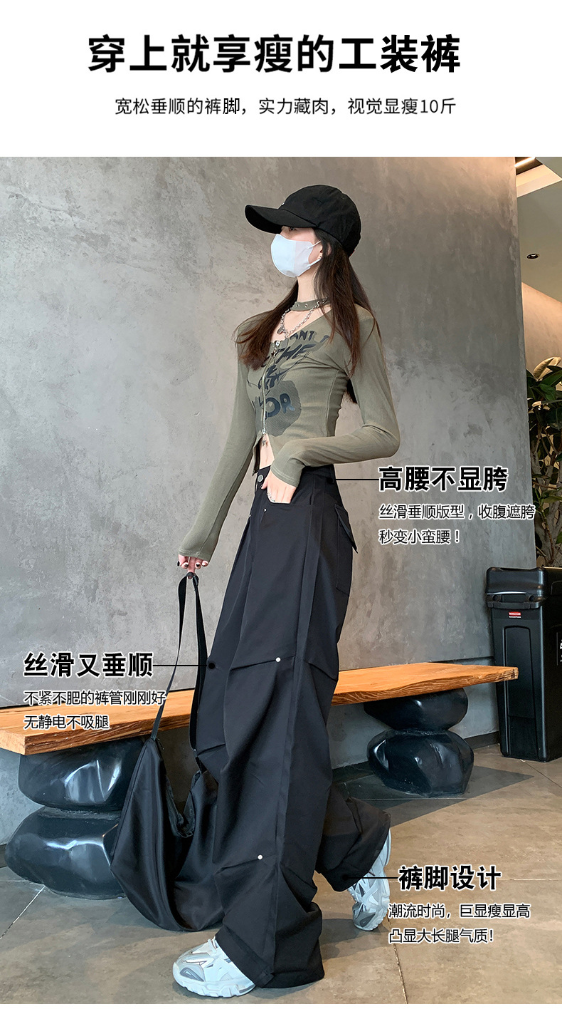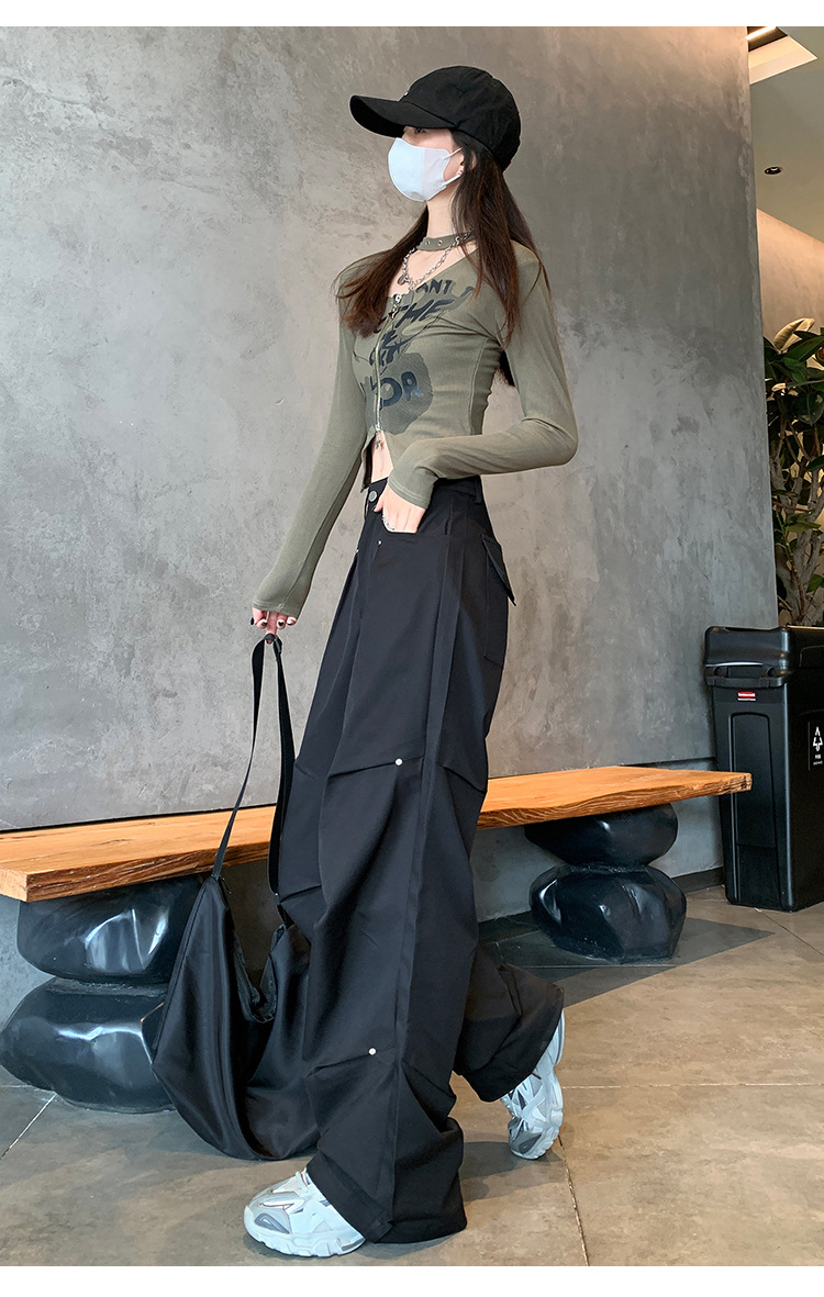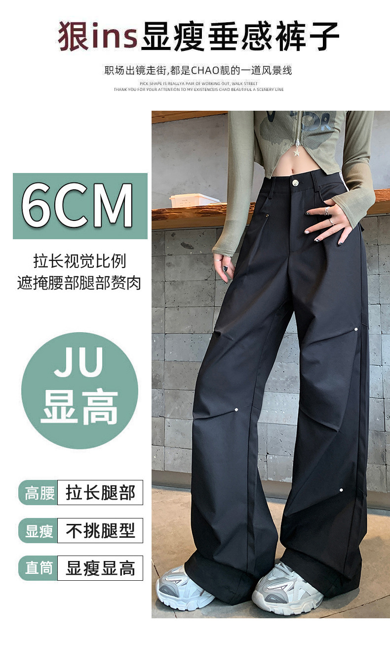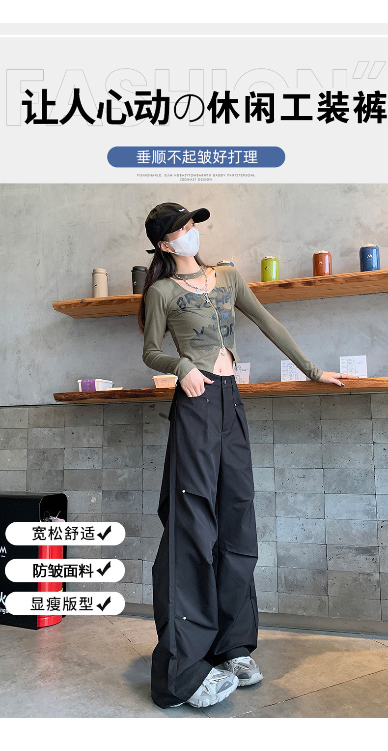 아메리칸 스타일 스파이스 소녀 블랙 리우 네일 크록 바지 여성의 가을 2024 높은 허리 느슨한 스포츠 캐주얼 등산 와이드 다리 바지스토어 가기