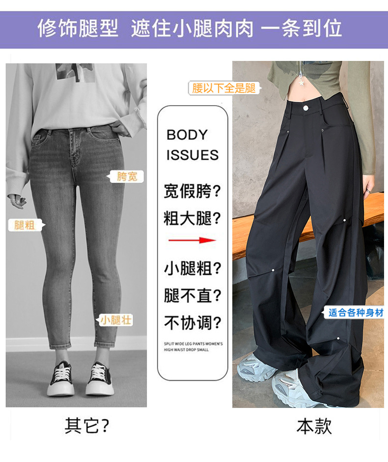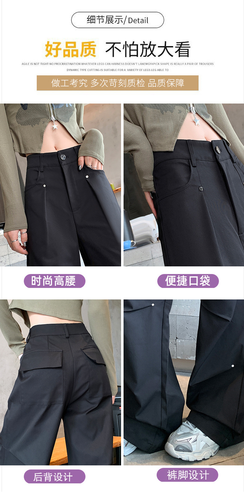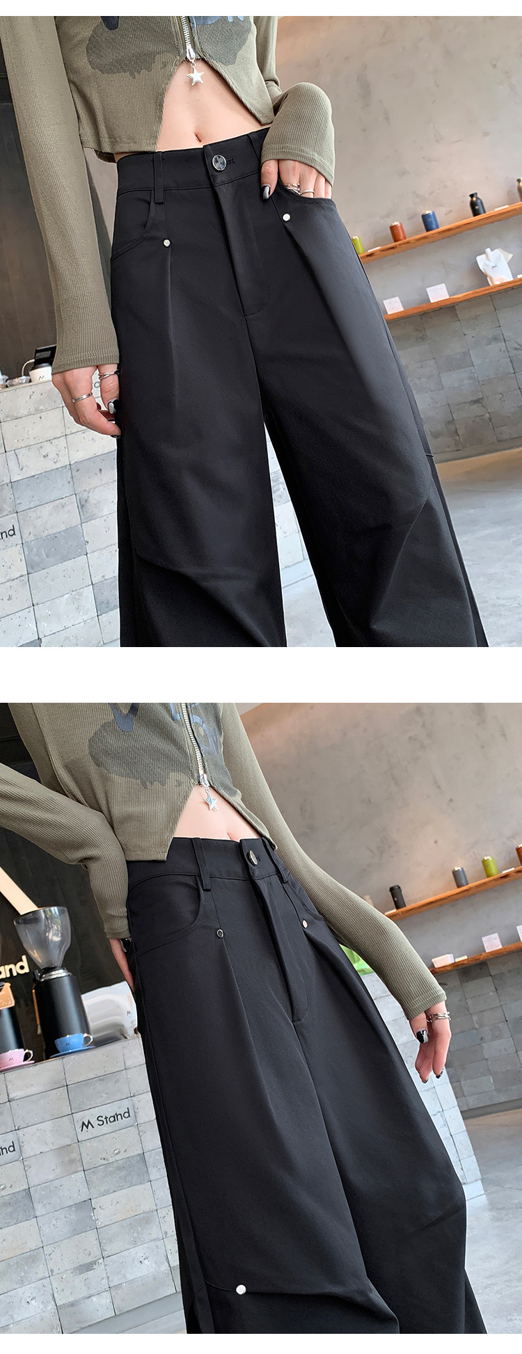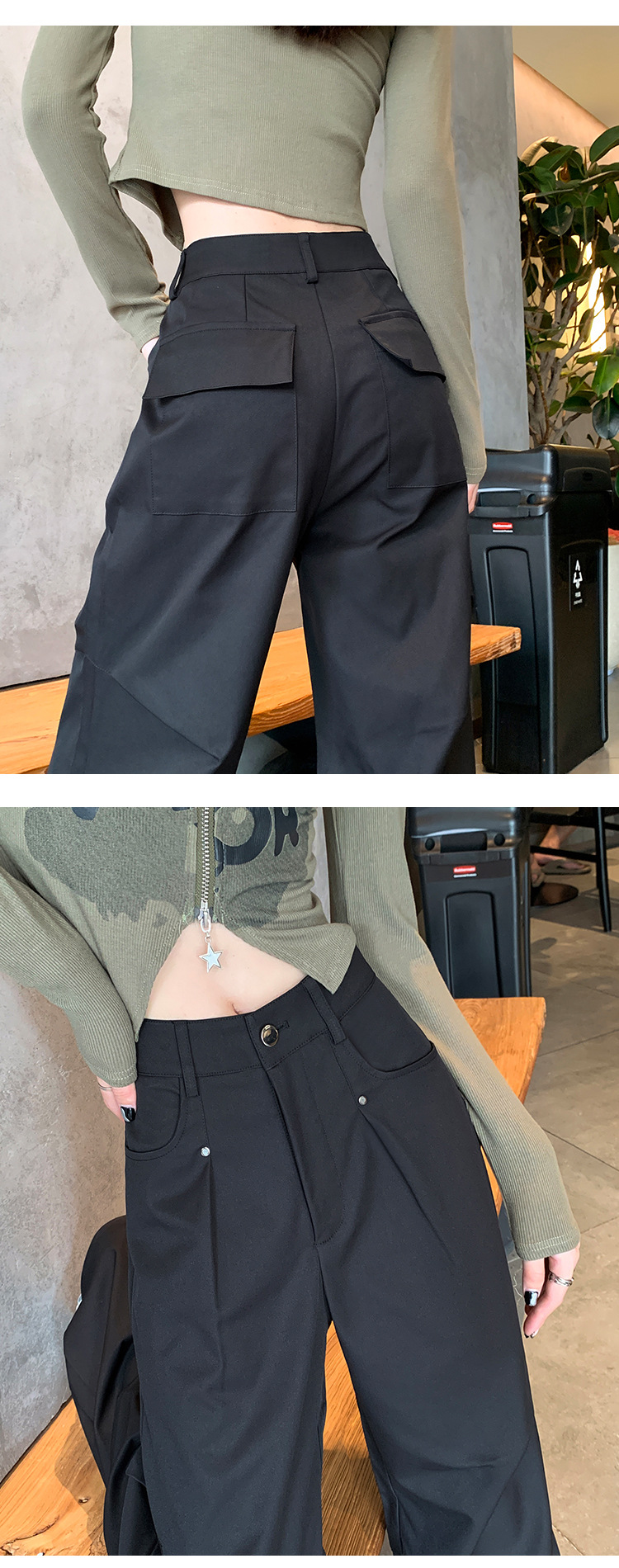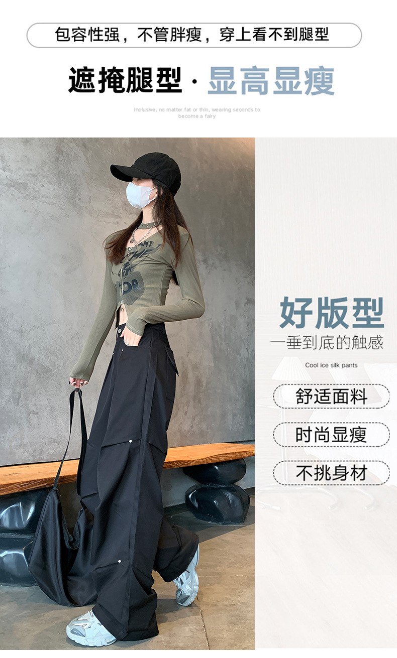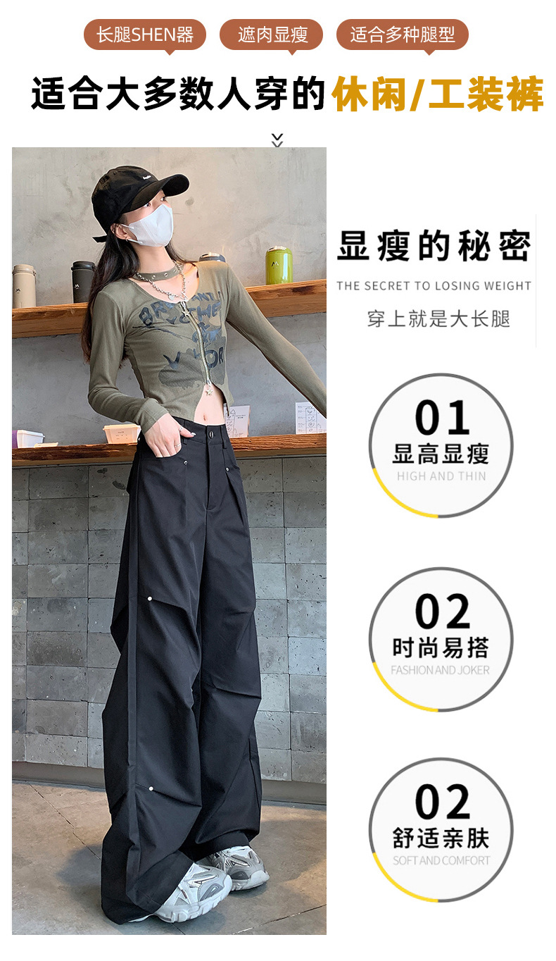 아메리칸 스타일 스파이스 소녀 블랙 리우 네일 크록 바지 여성의 가을 2024 높은 허리 느슨한 스포츠 캐주얼 등산 와이드 다리 바지스토어 가기