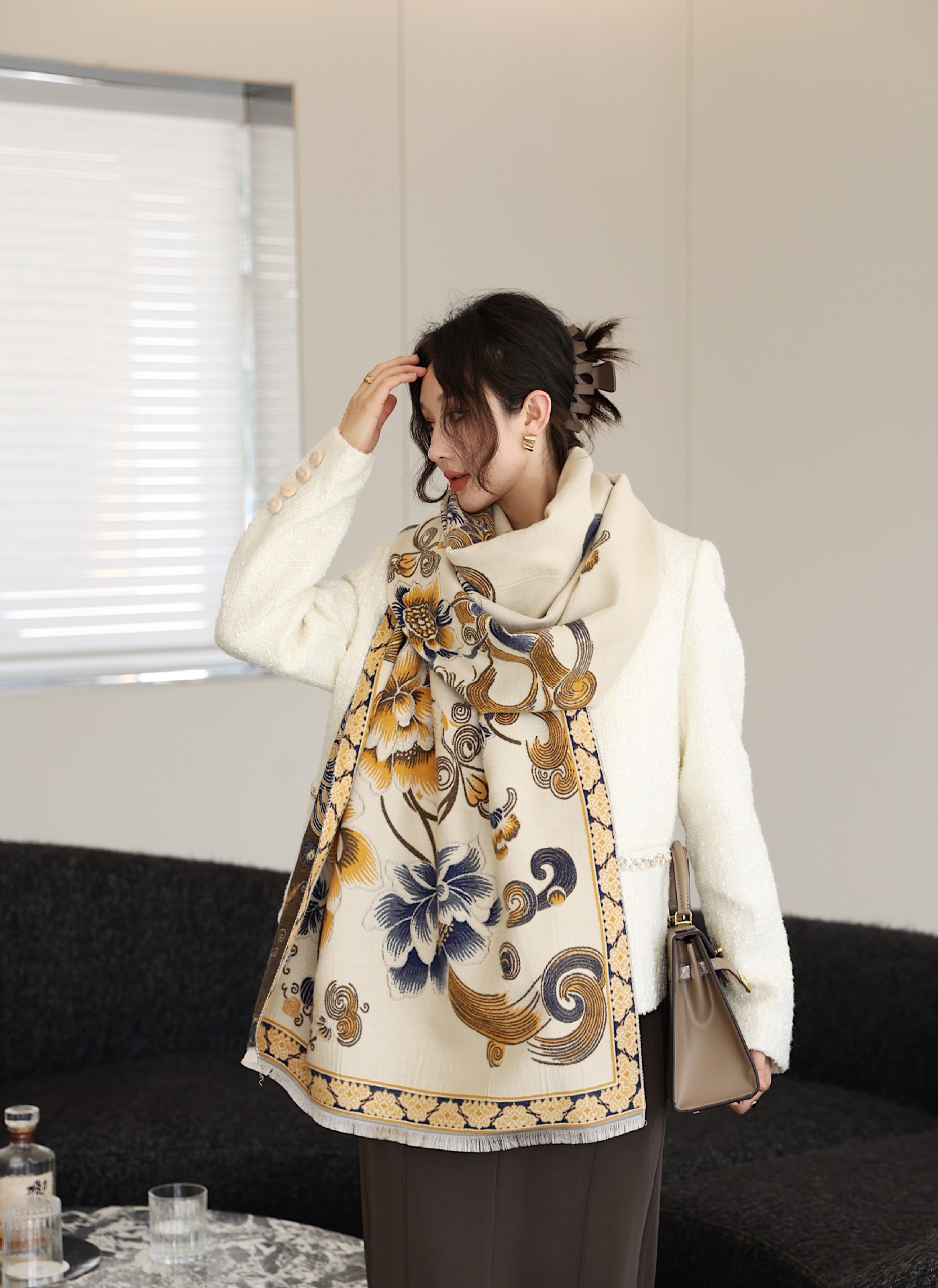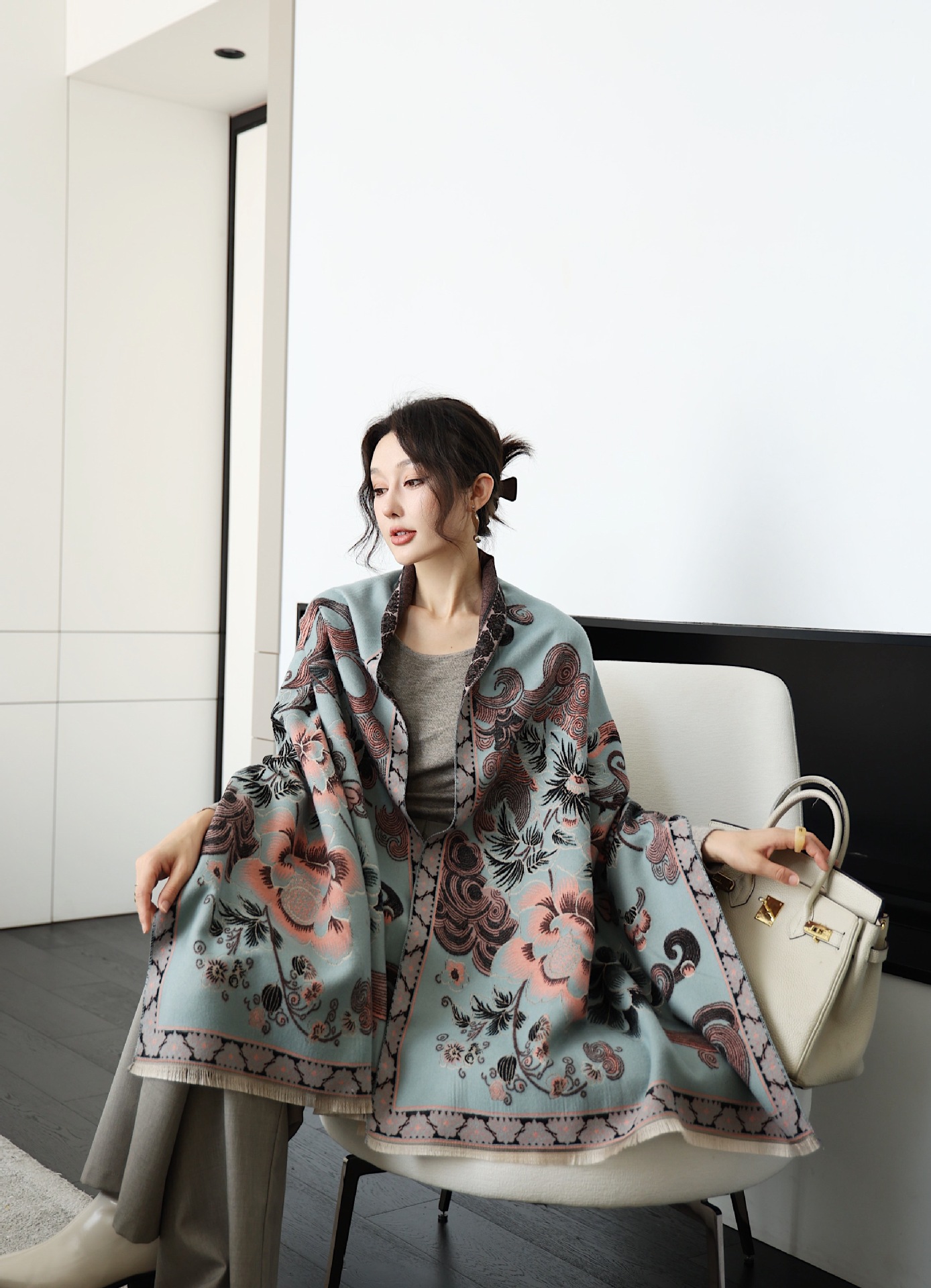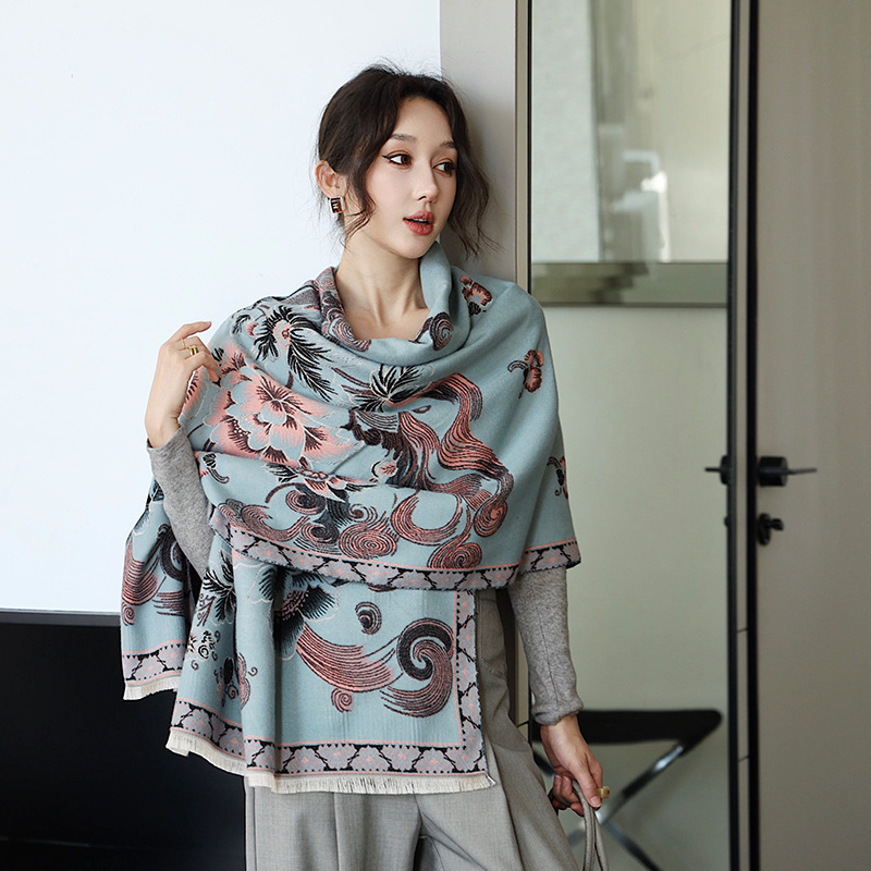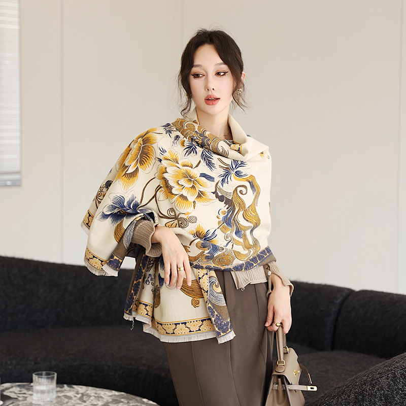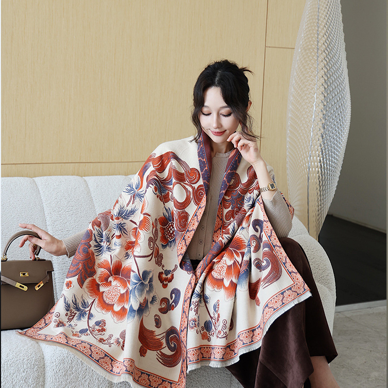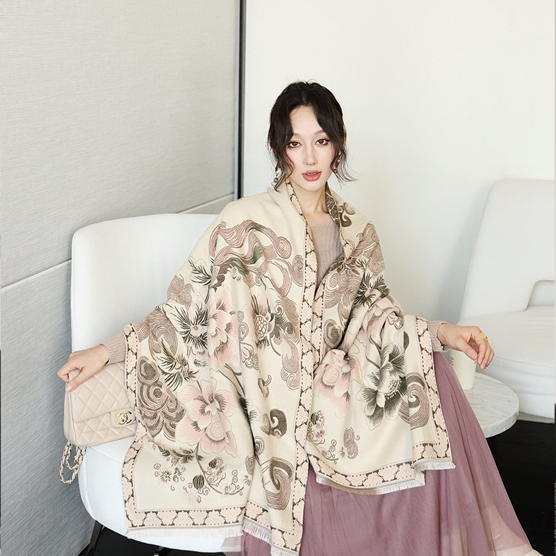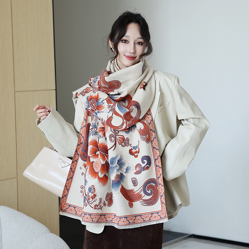 스카프 여자 올 매치 플랜트 플라워 스카프 모방 캐시미어 양면 이중용 따뜻한 아우터 2024