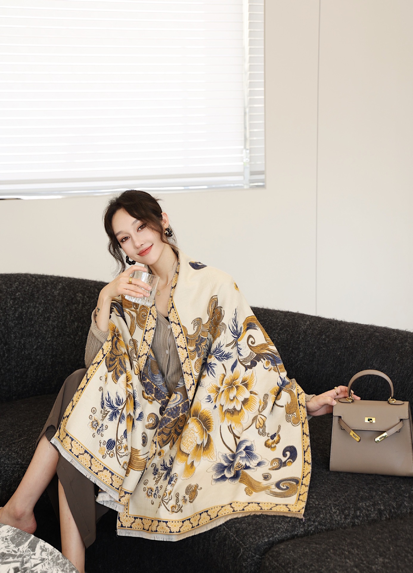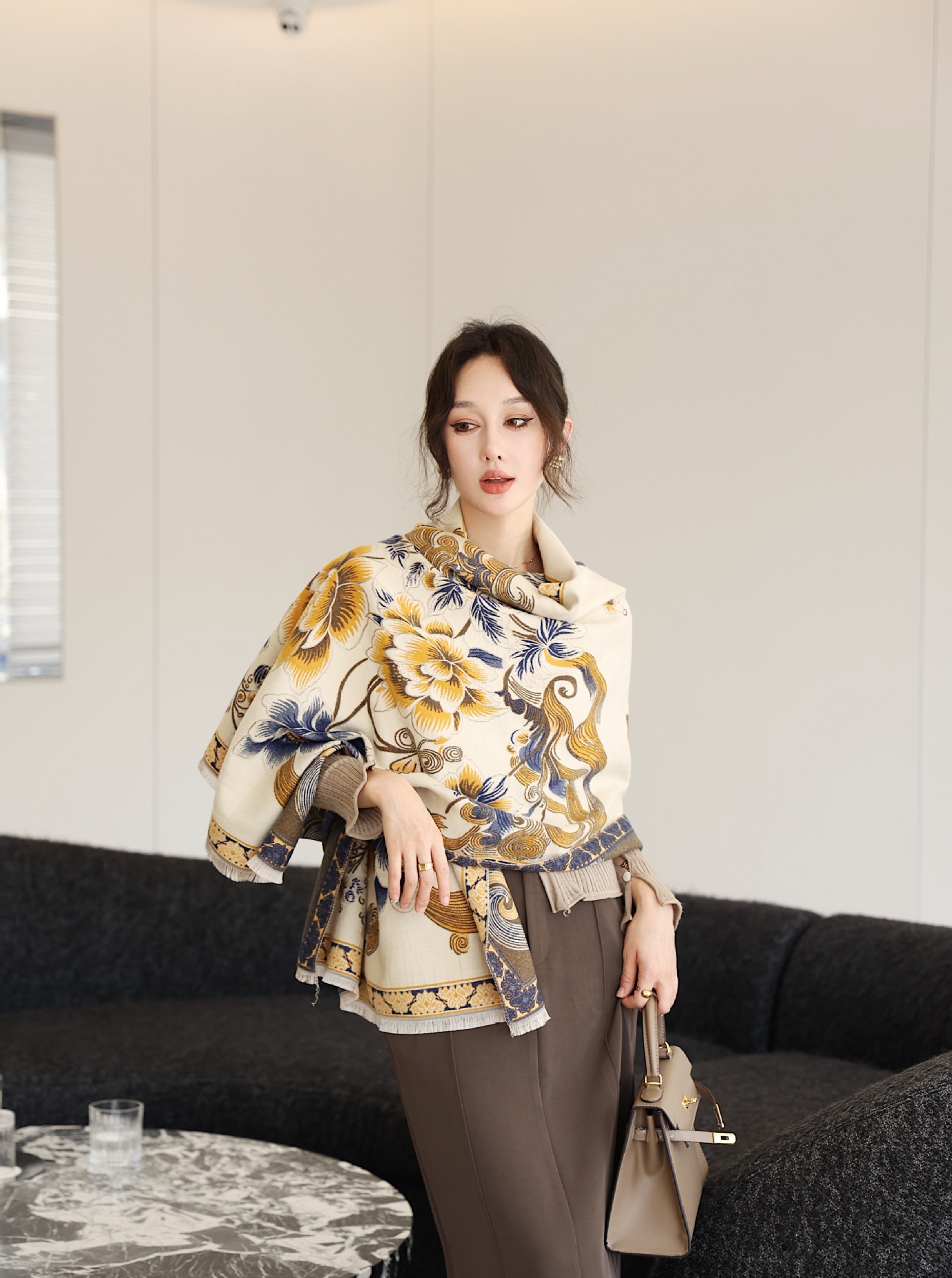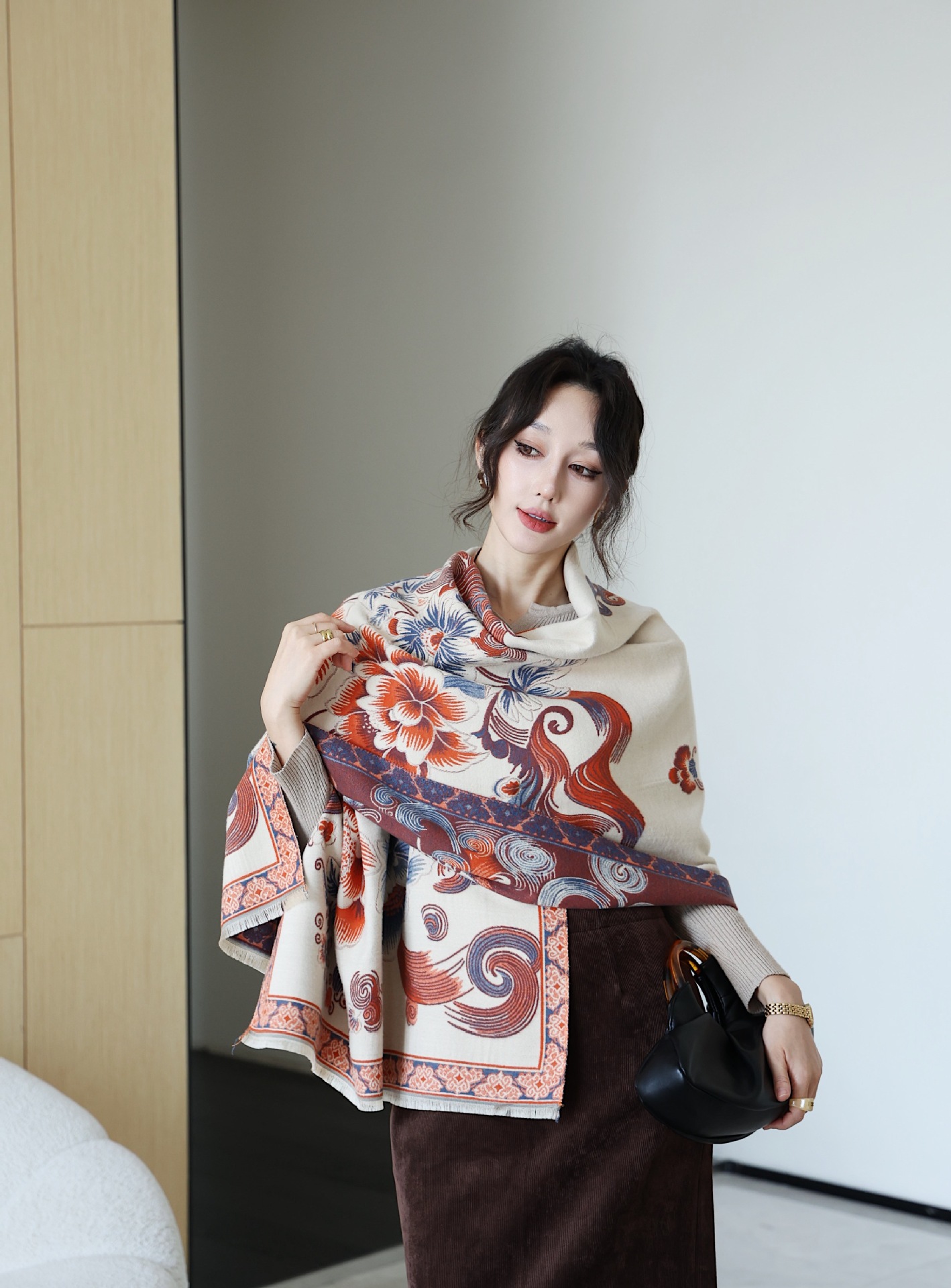 스카프 여자 올 매치 플랜트 플라워 스카프 모방 캐시미어 양면 이중용 따뜻한 아우터 2024스토어 가기