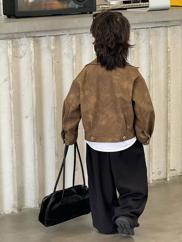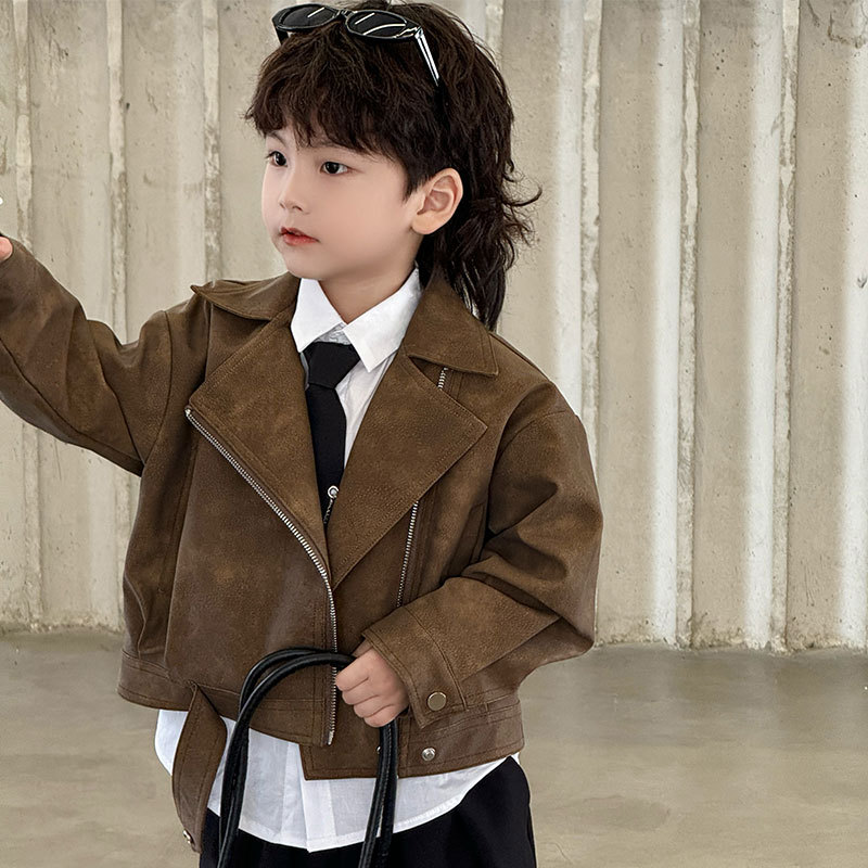 아동 의류 2025 가을 새로운 가죽 자켓 탑 어린이 캐주얼 패션 소년 가죽 자켓 드롭 배송