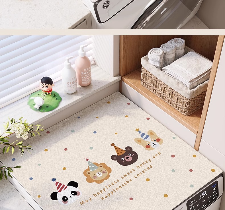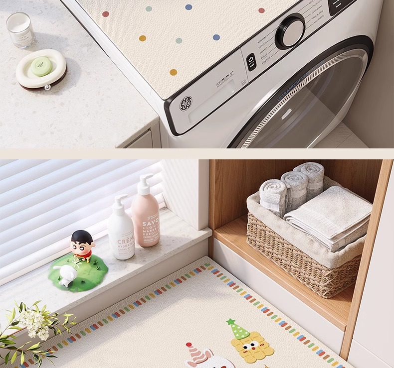 만화 가정용 드럼 세탁기 방진 매트 냉장고 커버 천 규조토 미끄럼 방지 매트 흡수성 빠른 건조 침대 옆 테이블 매트스토어 가기