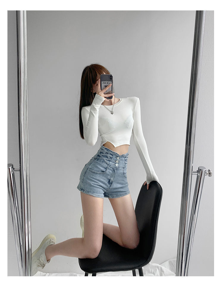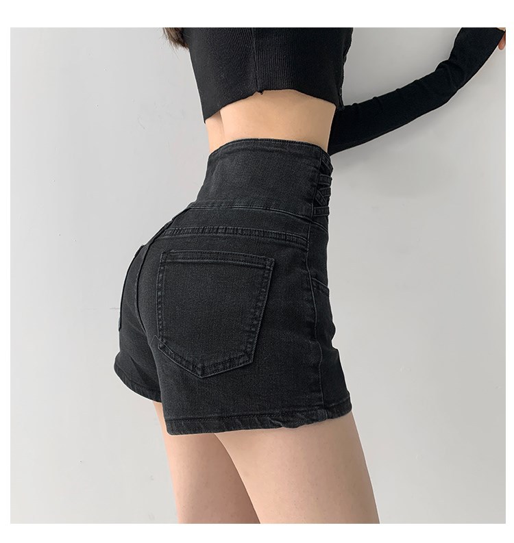 유럽과 미국의 뜨거운 소녀 스타일 높은 허리 데님 반바지 여성의 봄과 여름 탄성 디자인 통통녀 플러스 사이즈 검은 색 핫 팬츠 조수.
