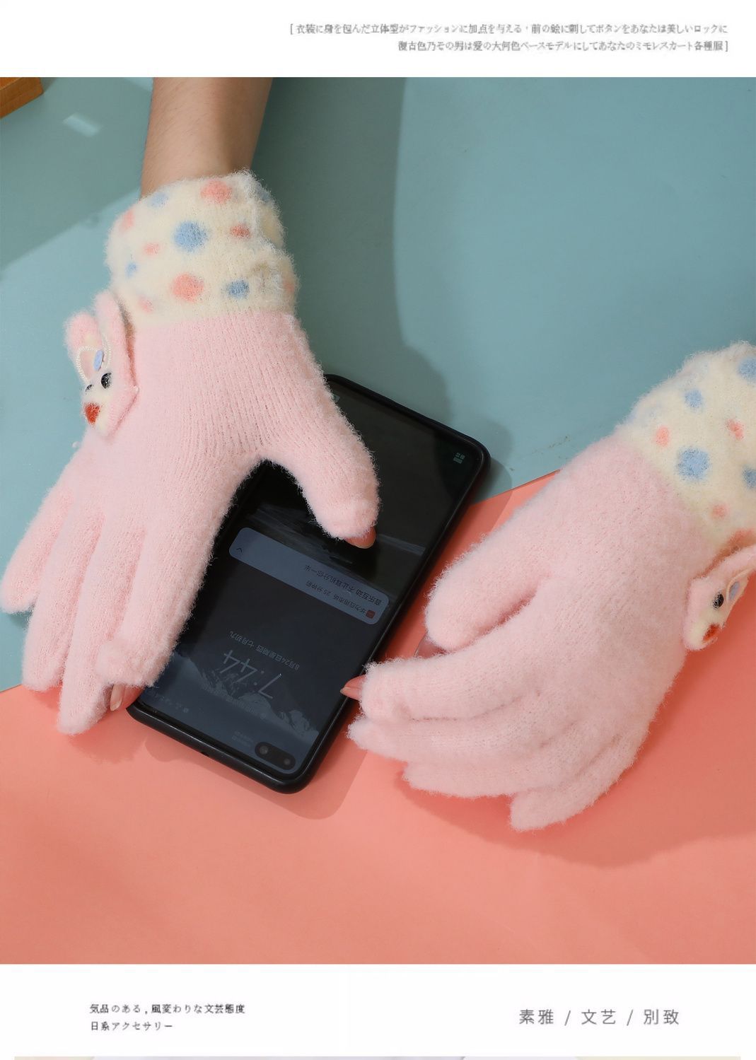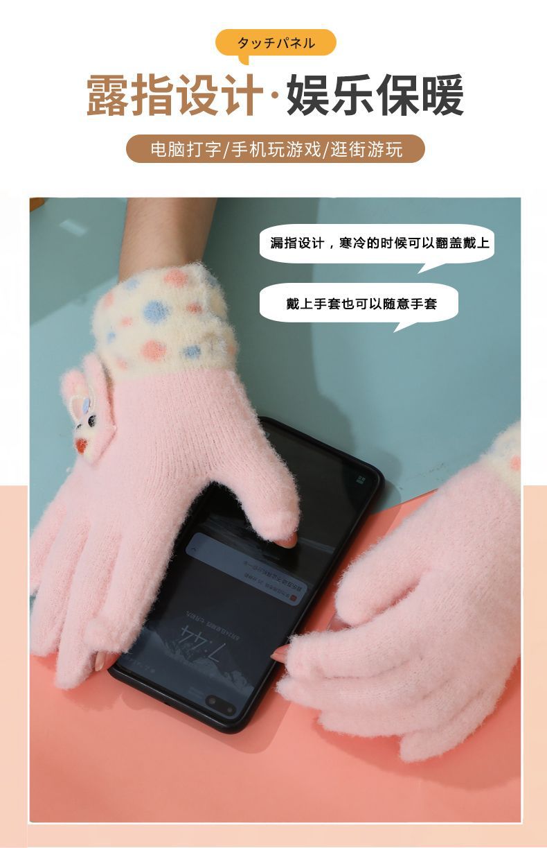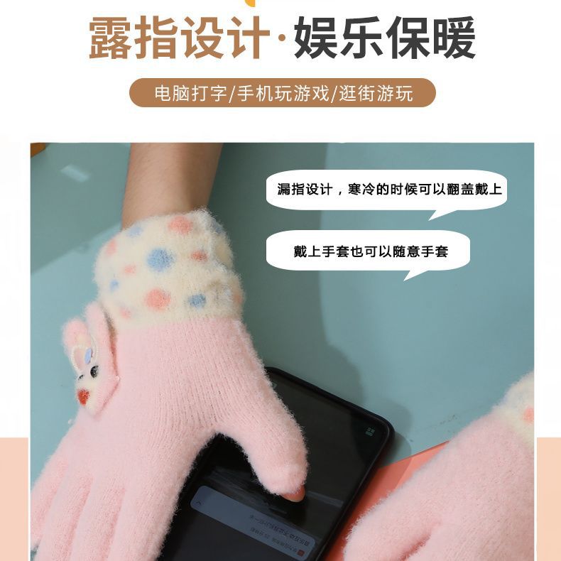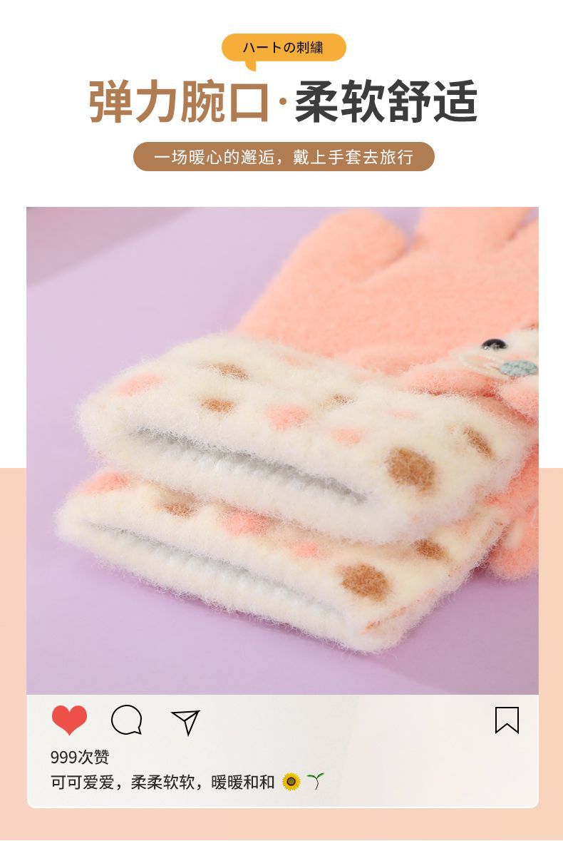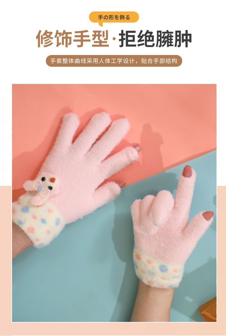 어린이 장갑 5 ~ 10 세 8 가을과 겨울 만화 따뜻한 손가락 세트 소녀는 휴대 전화 터치 스크린 다섯 손가락을 재생 쓰기