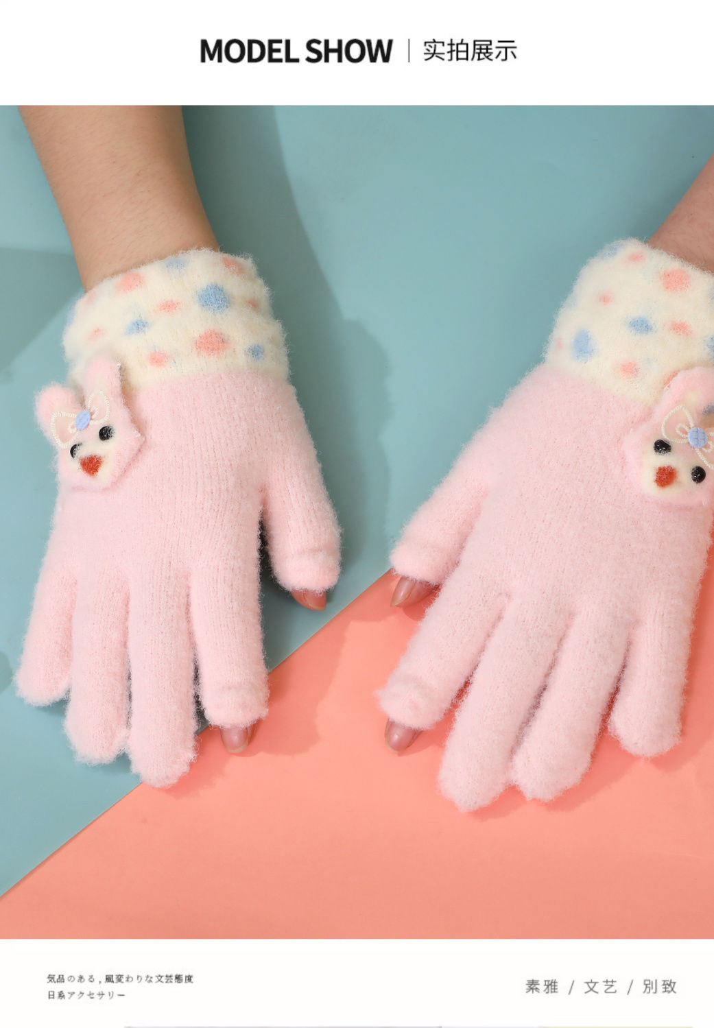 어린이 장갑 5 ~ 10 세 8 가을과 겨울 만화 따뜻한 손가락 세트 소녀는 휴대 전화 터치 스크린 다섯 손가락을 재생 쓰기스토어 가기