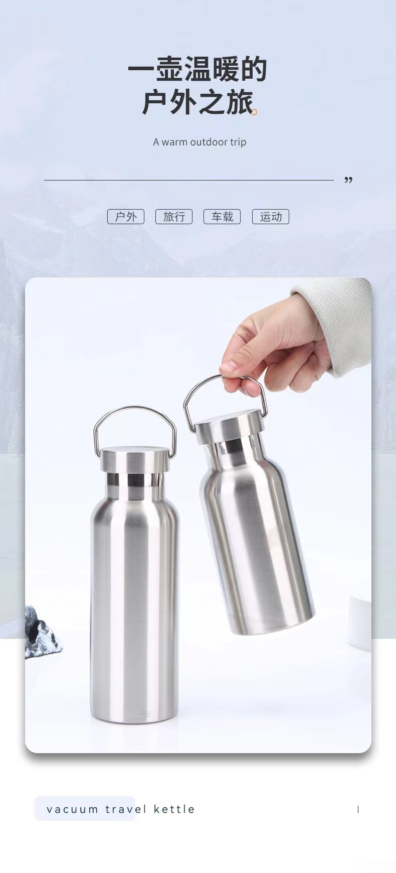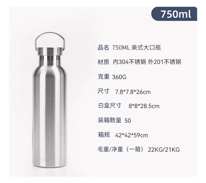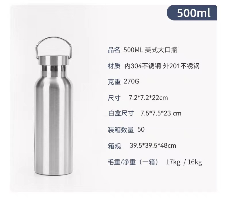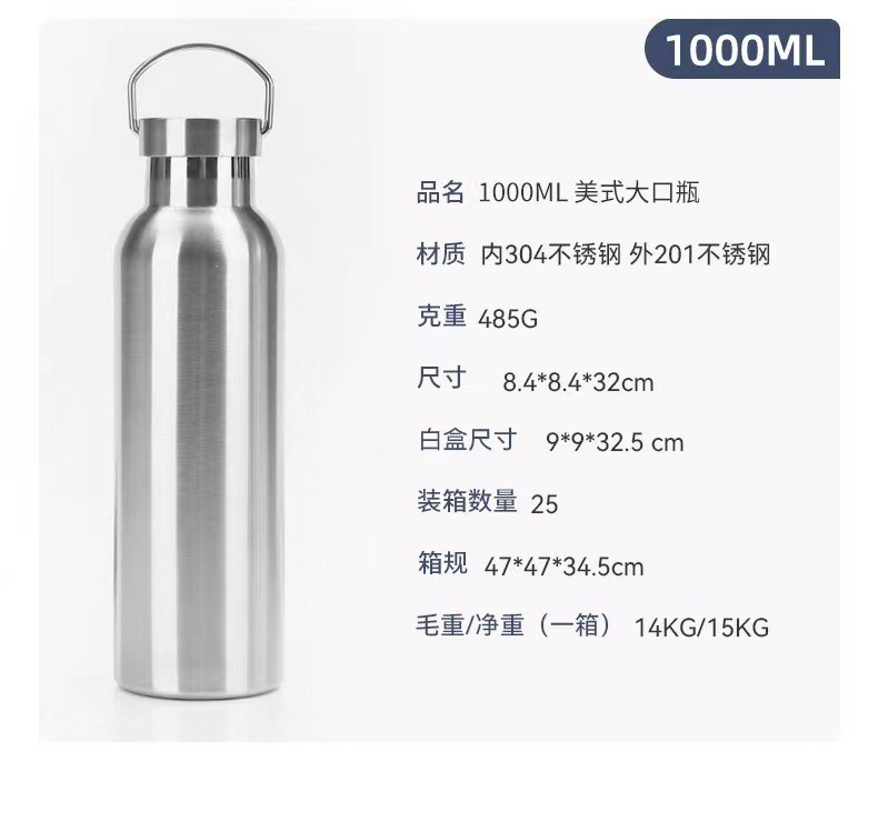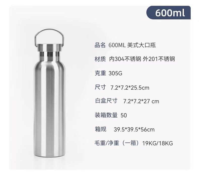 304 스테인레스 스틸 보온병 더블 레이어 아메리칸 스타일 큰 입 병 손잡이를 가진 야외 휴대용 스포츠 워터 컵 등산 냄비스토어 가기
