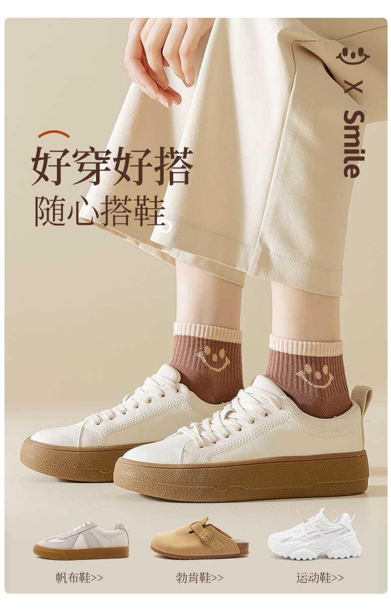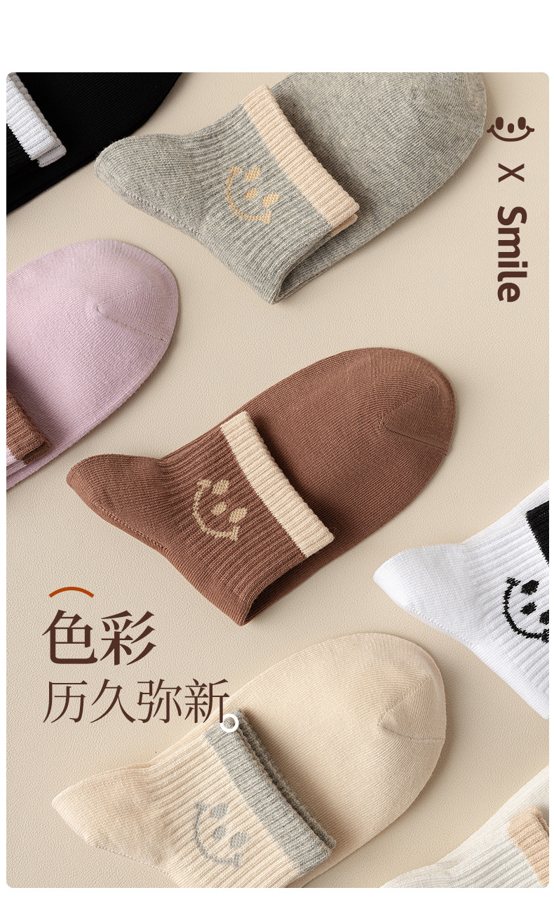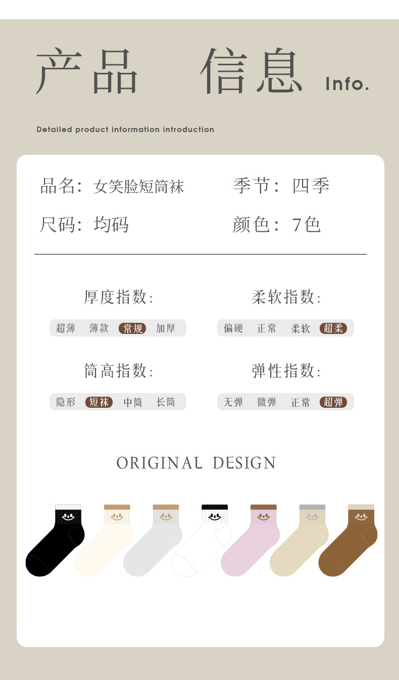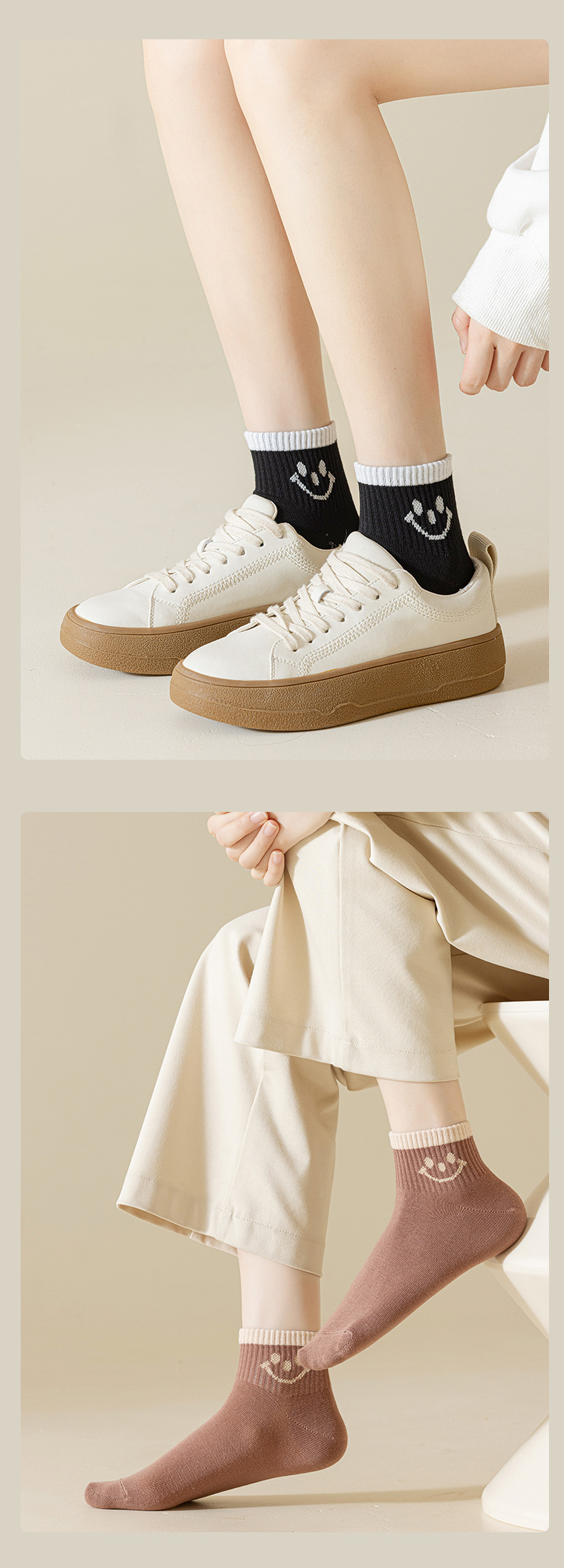 여성용 코튼 양말 통기성 안티 필링 웃는 얼굴 ins2024 새로운 세대의 도매 Zhuji 공장