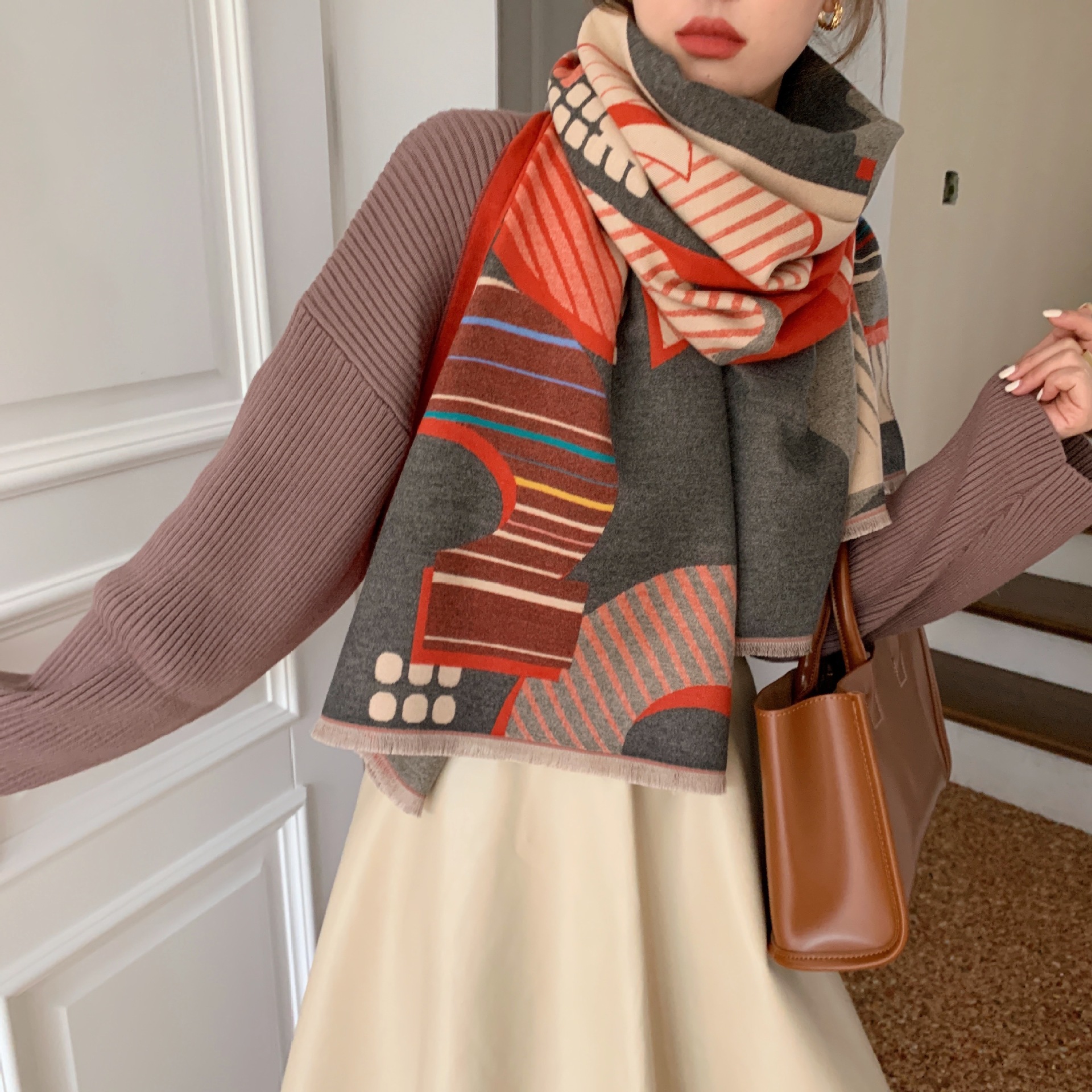 [3D 글자] 가을과 겨울 새로운 캐시미어 자카드 두꺼운 스카프 여성 방풍 따뜻한 스카프 목도리 도매스토어 가기