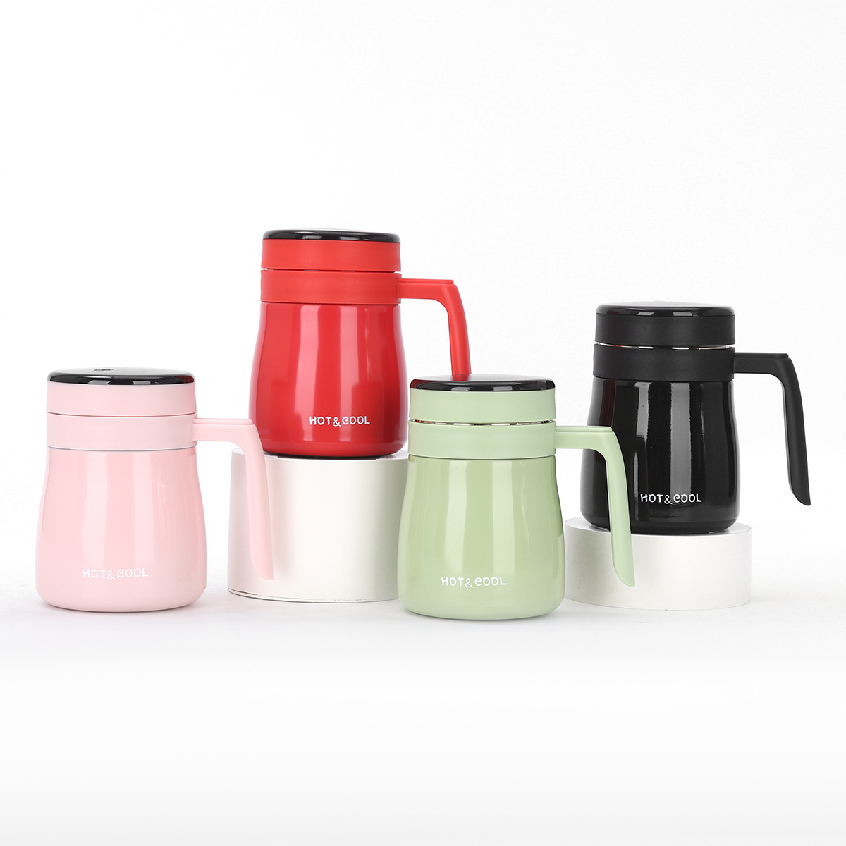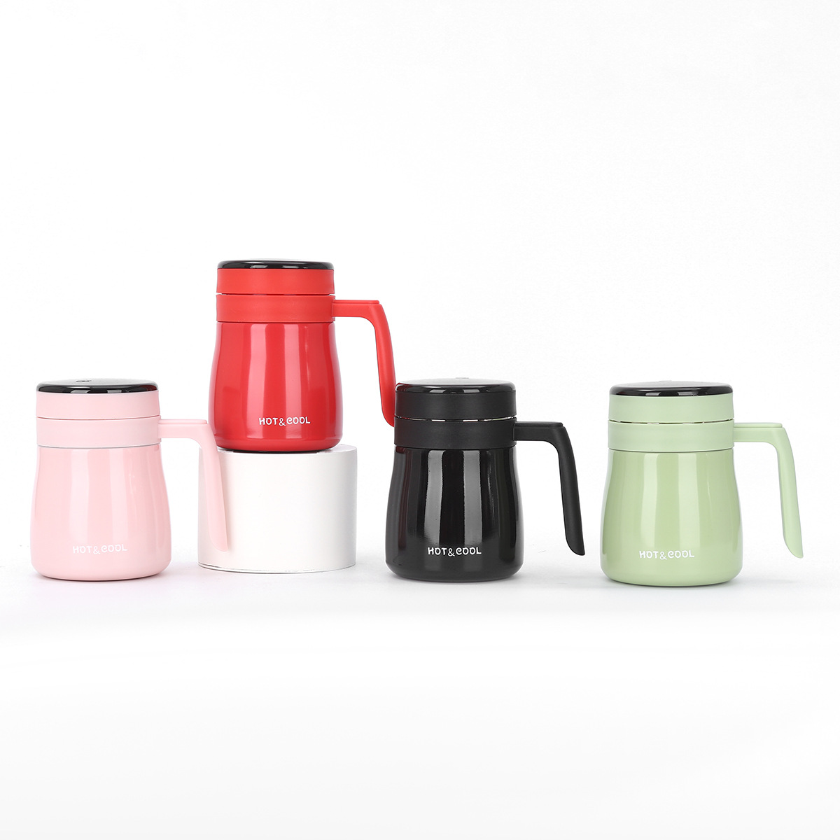 간단한 비즈니스 사무실 차 분리 주전자 304 스테인레스 스틸 온도 커피 컵 휴대용 핸들 보온병 컵