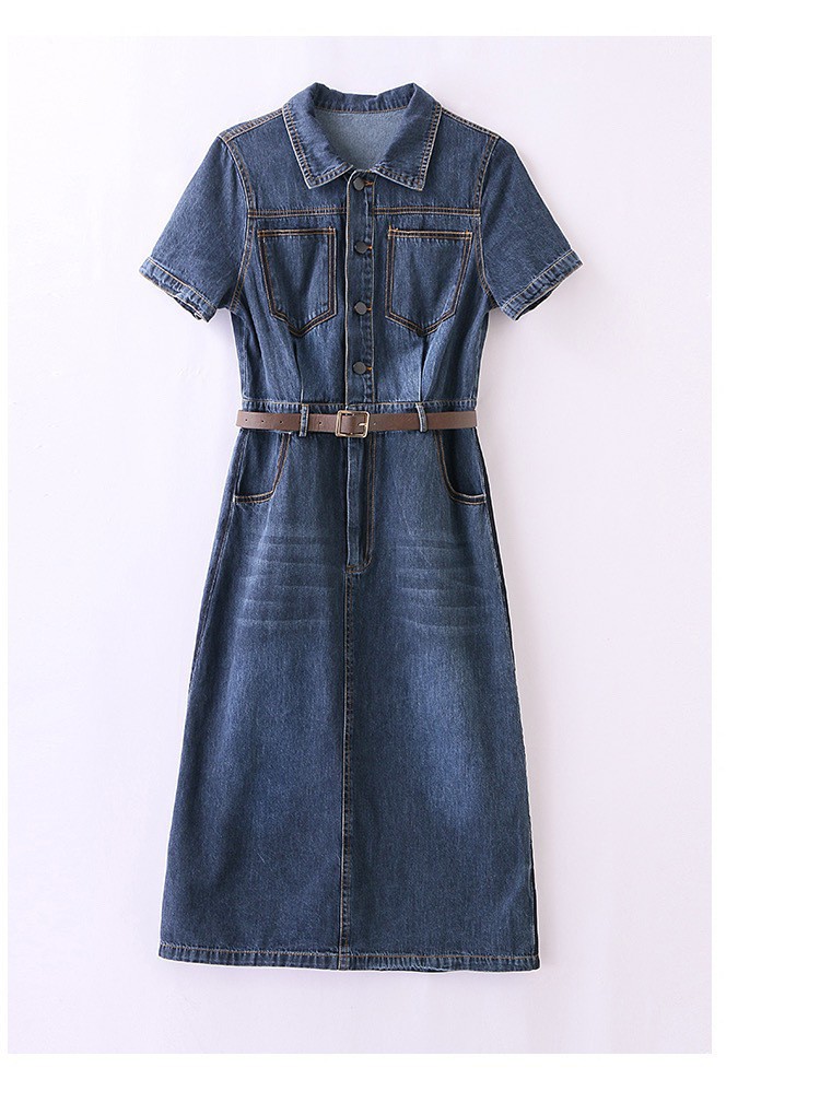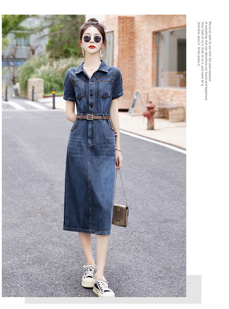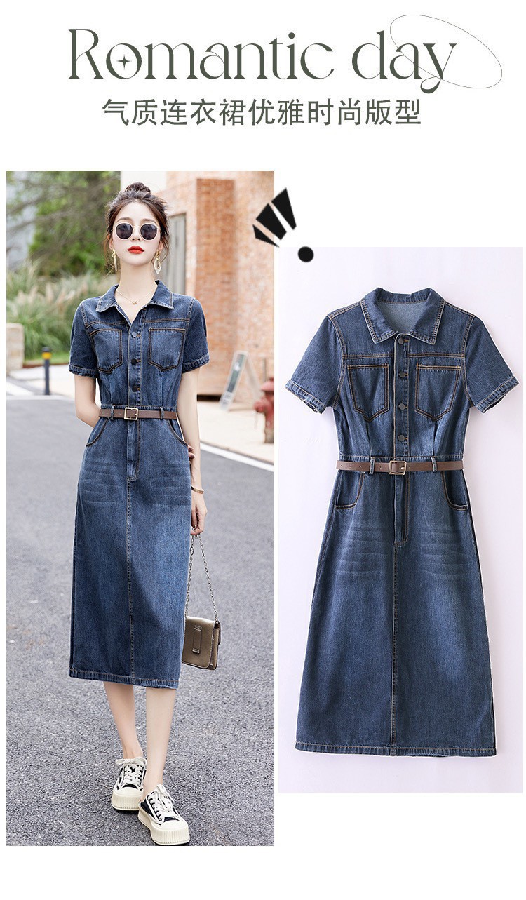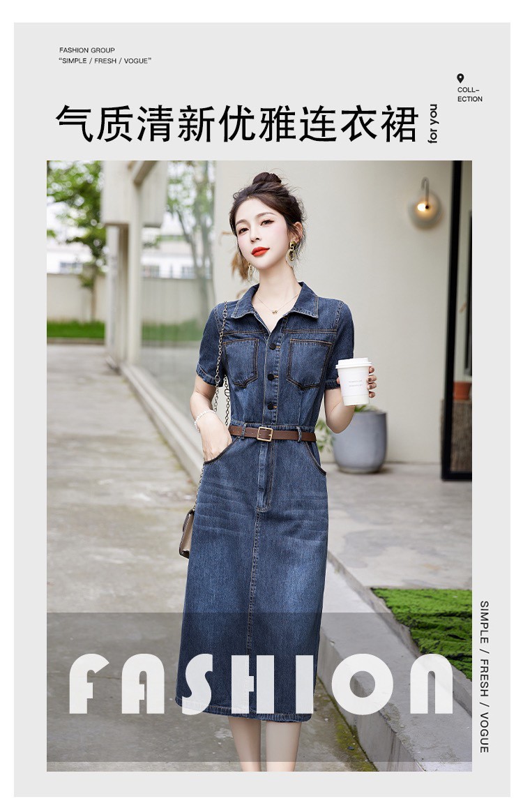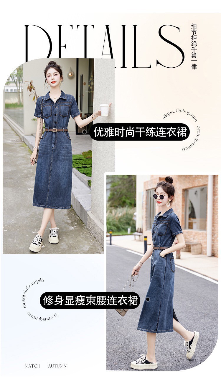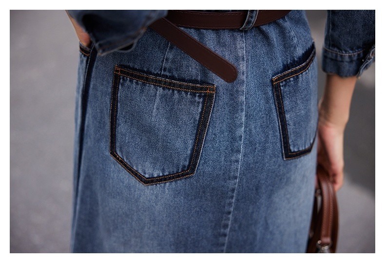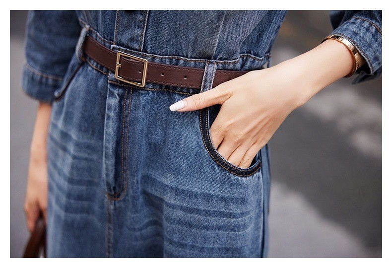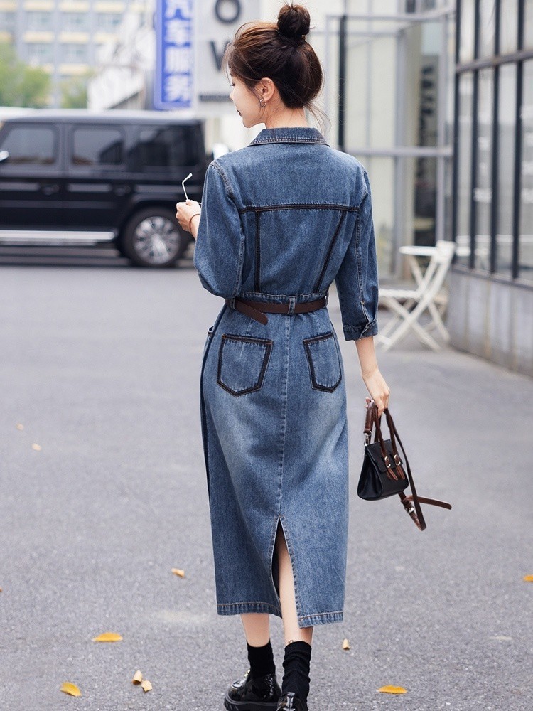 프렌치 레트로 패션 디자인 데님 원피스 여성용 가을 허리 조임 셔츠 원피스 슬림하고 트렌디한 기질의 드레스스토어 가기
