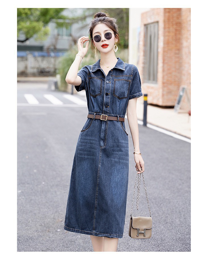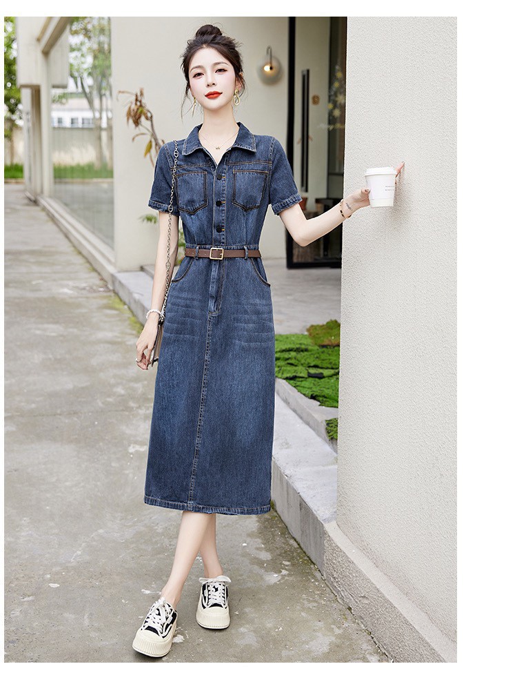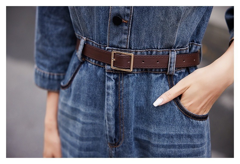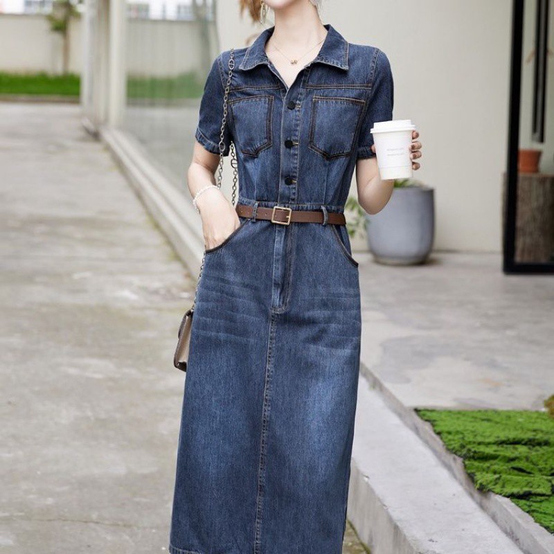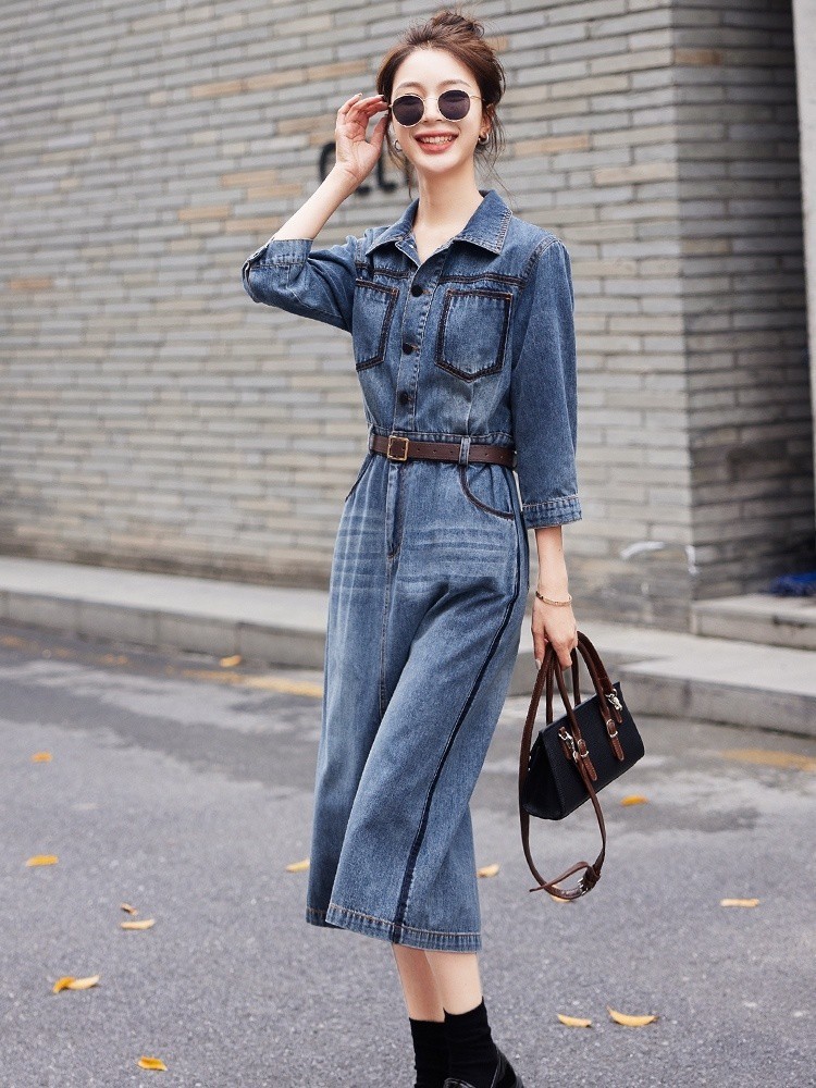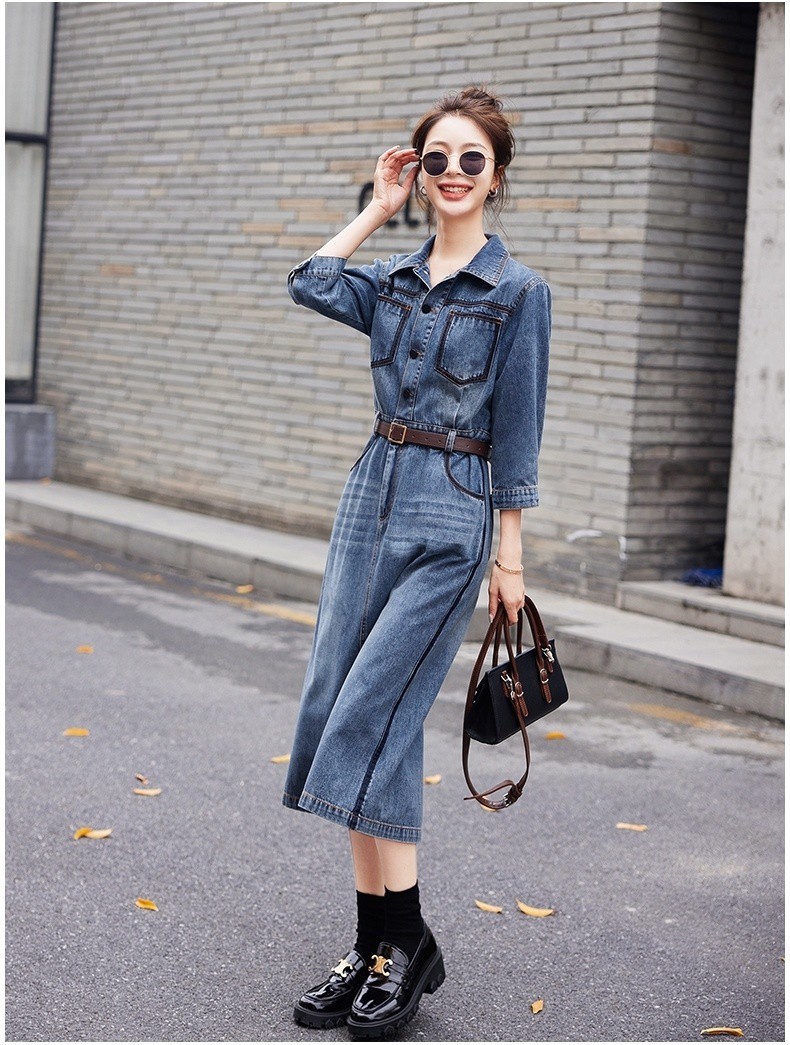 프렌치 레트로 패션 디자인 데님 원피스 여성용 가을 허리 조임 셔츠 원피스 슬림하고 트렌디한 기질의 드레스