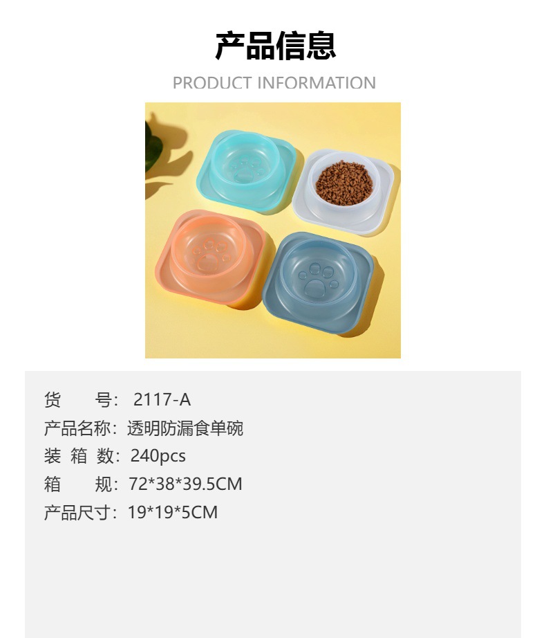 아마존 국경 투명 누출 방지 식품 단일 그릇 애완 동물 사료 고양이와 개는 큰 음식 그릇 도매로 뒤집기 쉽지 않습니다.스토어 가기