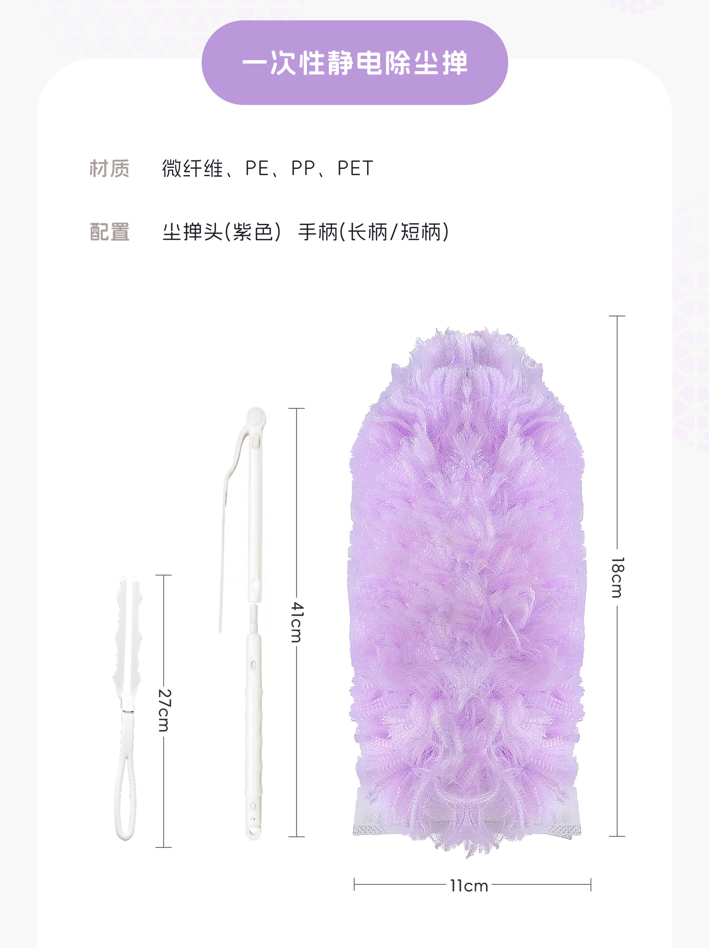 • 보라색 먼지떨이(12개) + 흰색 긴 손잡이 1개, 흰색 짧은 손잡이 1개