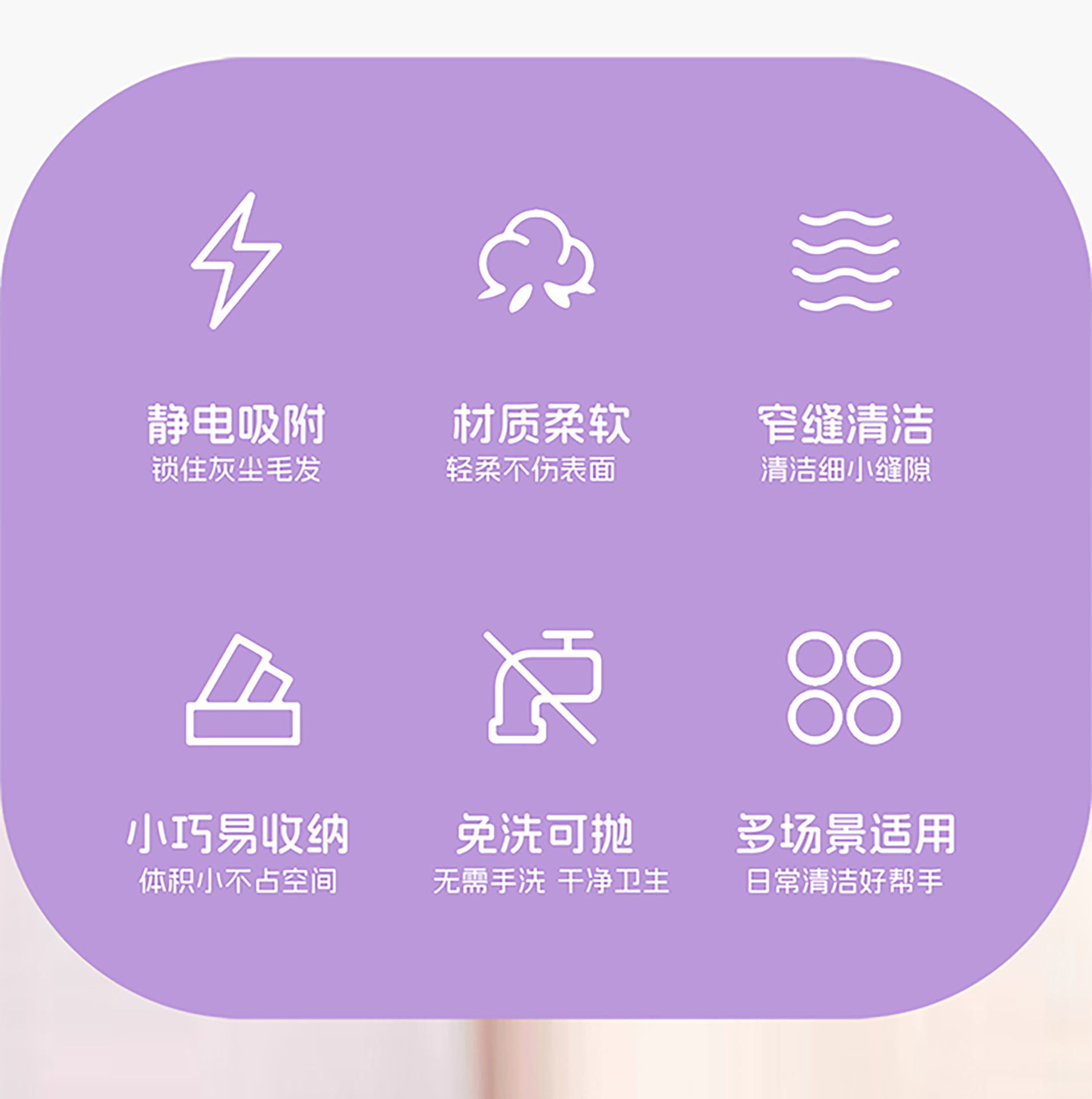 • 보라색 먼지떨이(6개) + 흰색 짧은 손잡이 1개