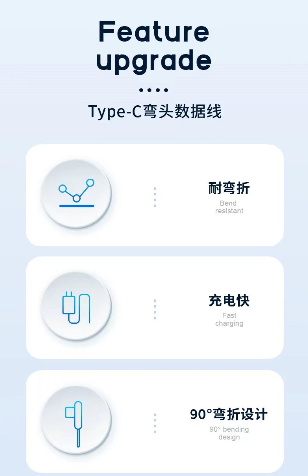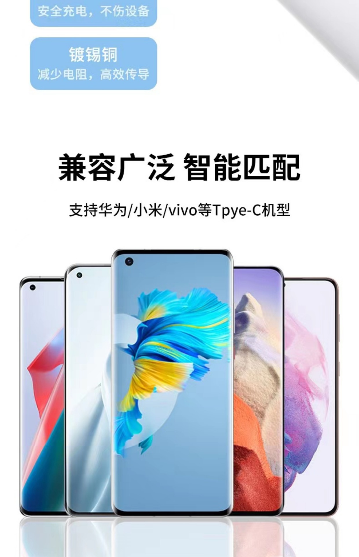 기장 붉은 쌀 검은 상어 33W55W67W90W120W 슈퍼 플래시 충전 라인을위한 C 형 팔꿈치 6A 데이터 라인