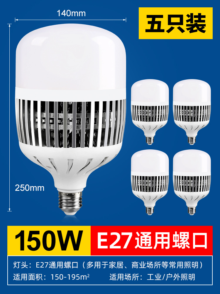 led灯泡E27螺口家用车间工厂房节能超亮球泡100W150W大功率照明灯
