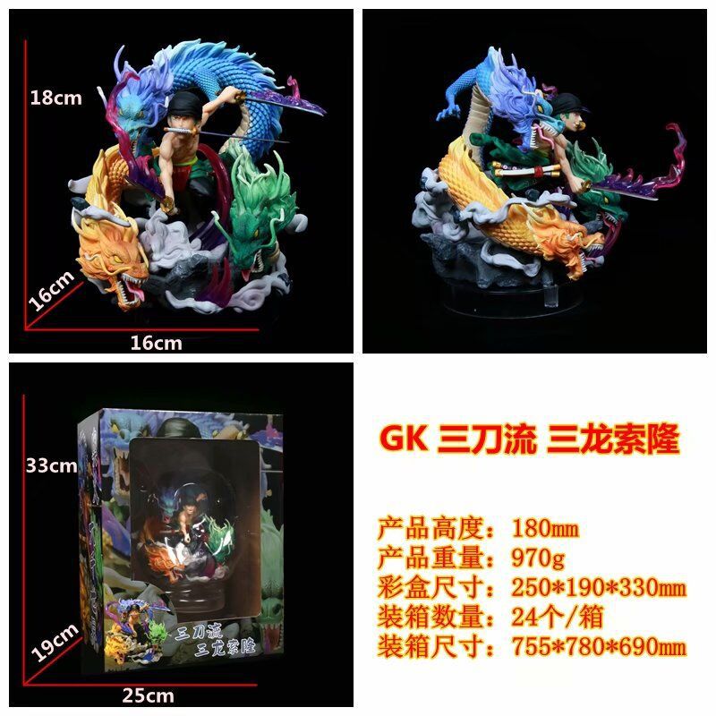 产品名称: 海贼 三刀流 三龙索隆 XZ.XS 联名合作款 摆件模型 盒装手办