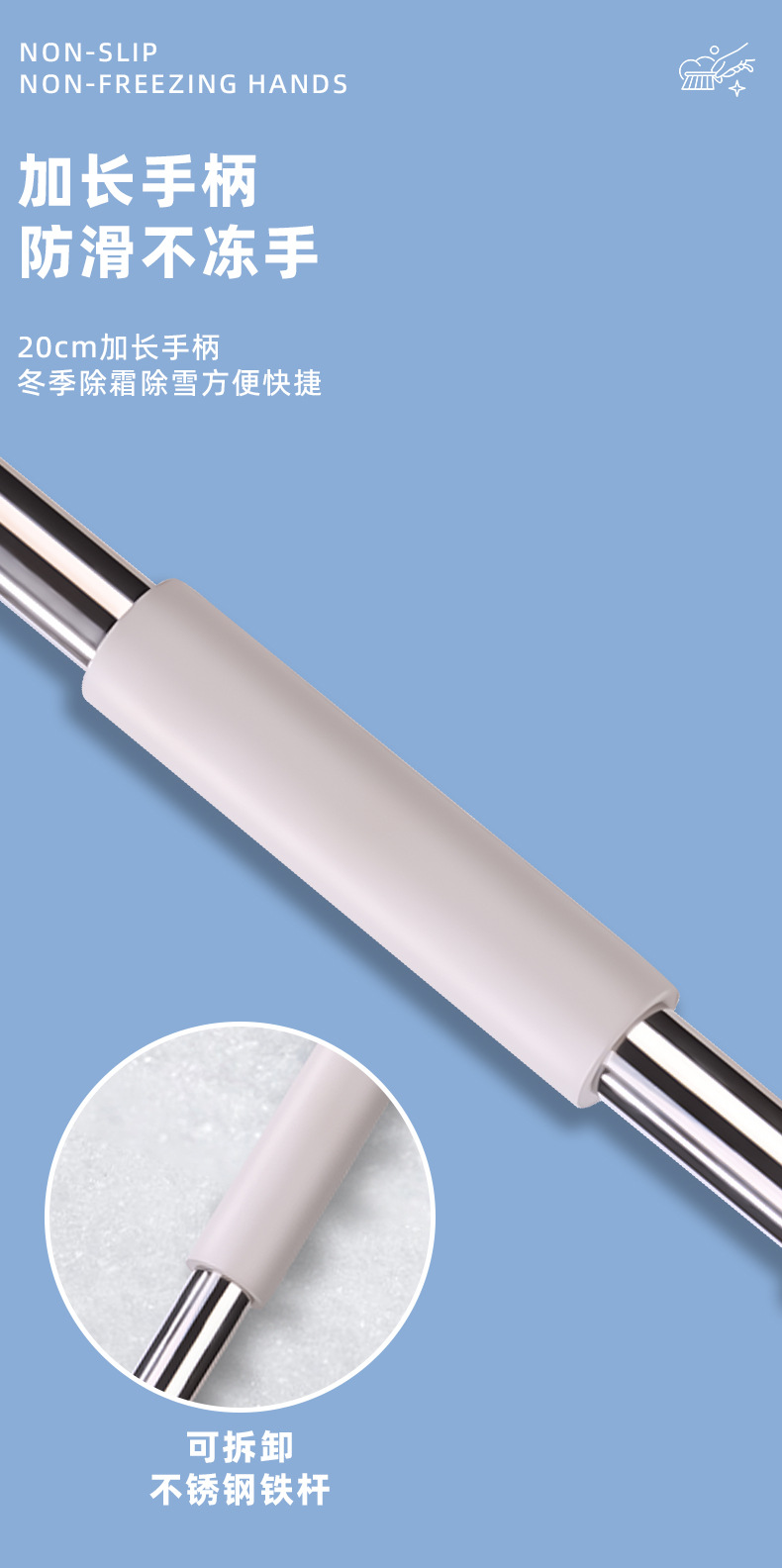 ●除了可以去除汽车上的雪和霜之外,还可以扫刷电动车,自行车以及被大雪被大雪覆盖的房子,玻璃门窗等。