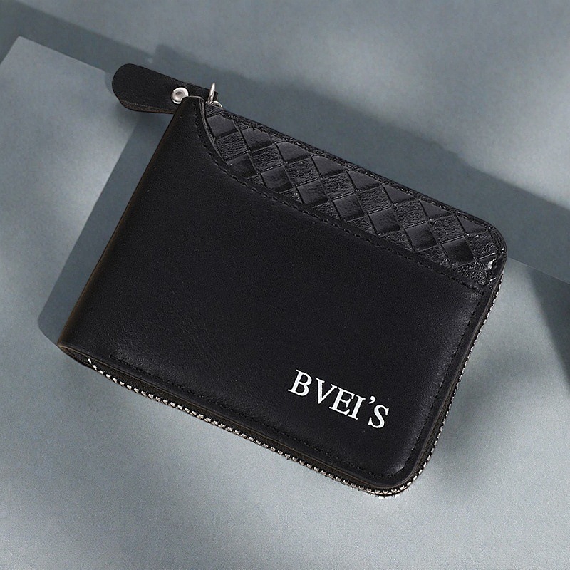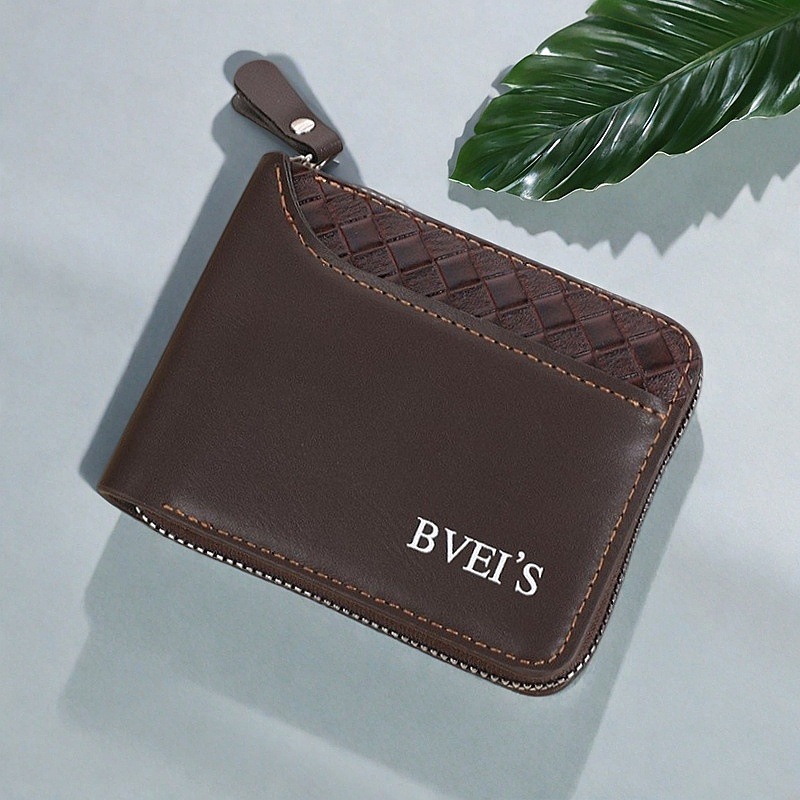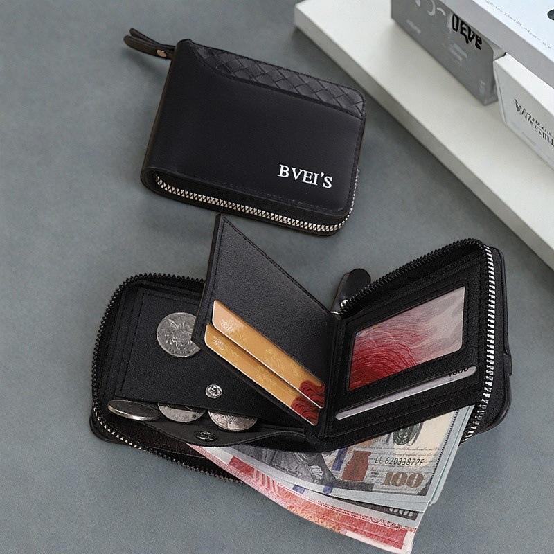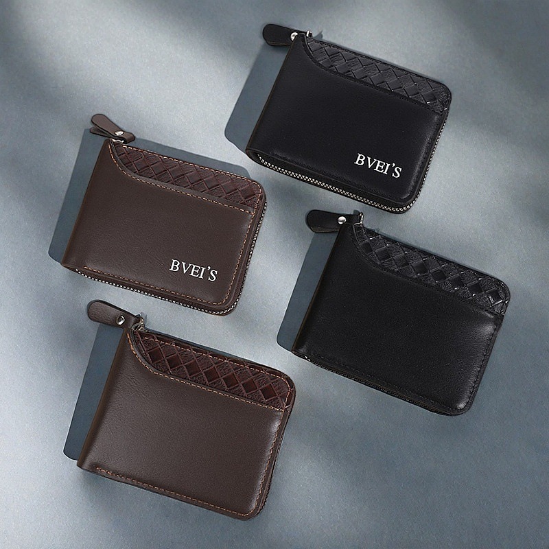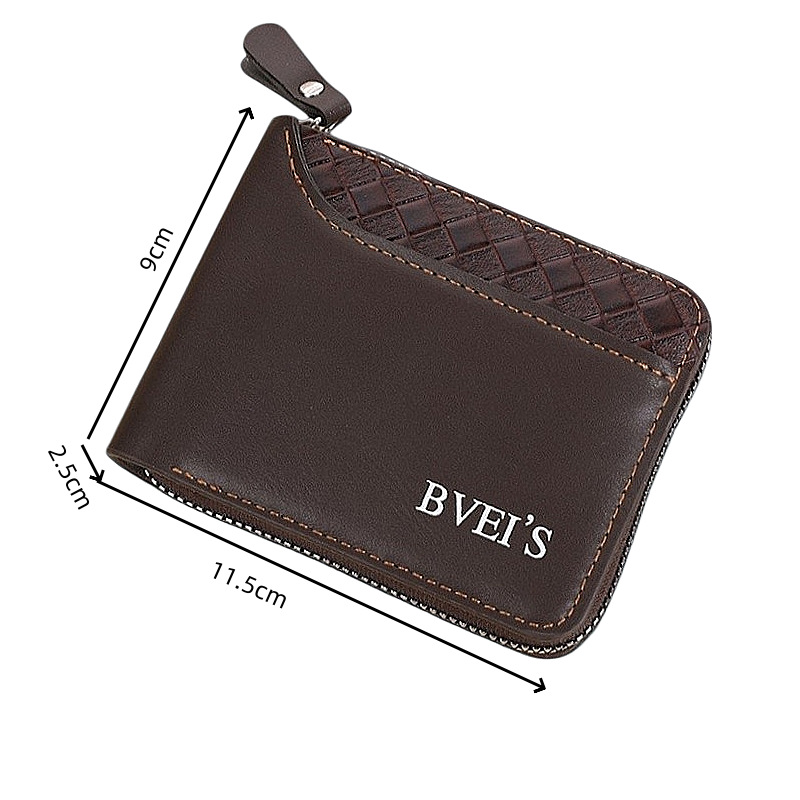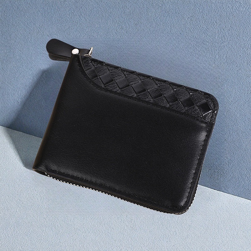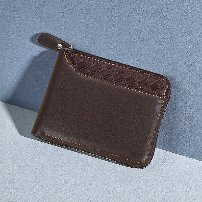 국경 새 지갑 남자의 짧은 수평 지퍼 지갑 20% 접힌 동전 지갑 짠 패턴 바느질 지갑