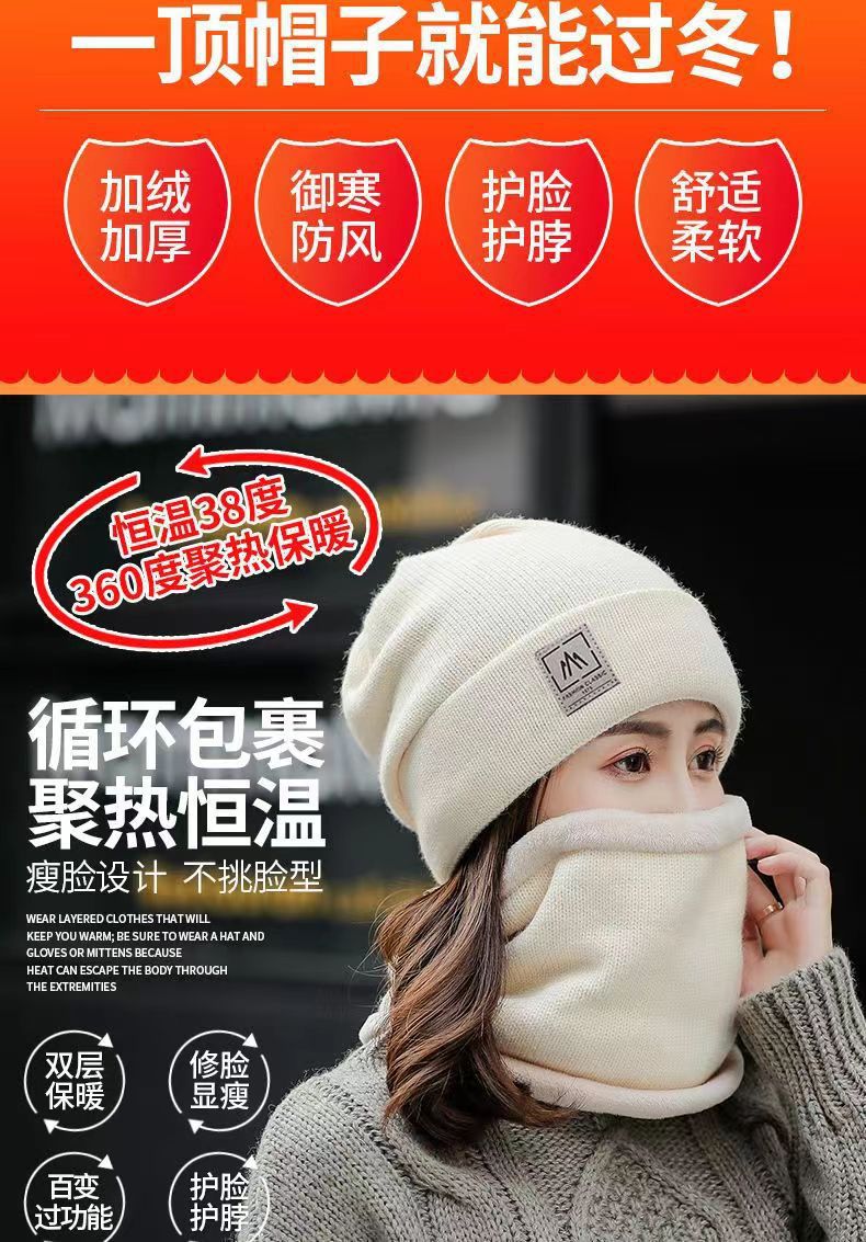모자 여자 겨울 한국 스타일 캐주얼 사이클링 따뜻한 기모 두꺼운 감기형 귀 보호자 여성 목 울 모자 가을과 겨울스토어 가기