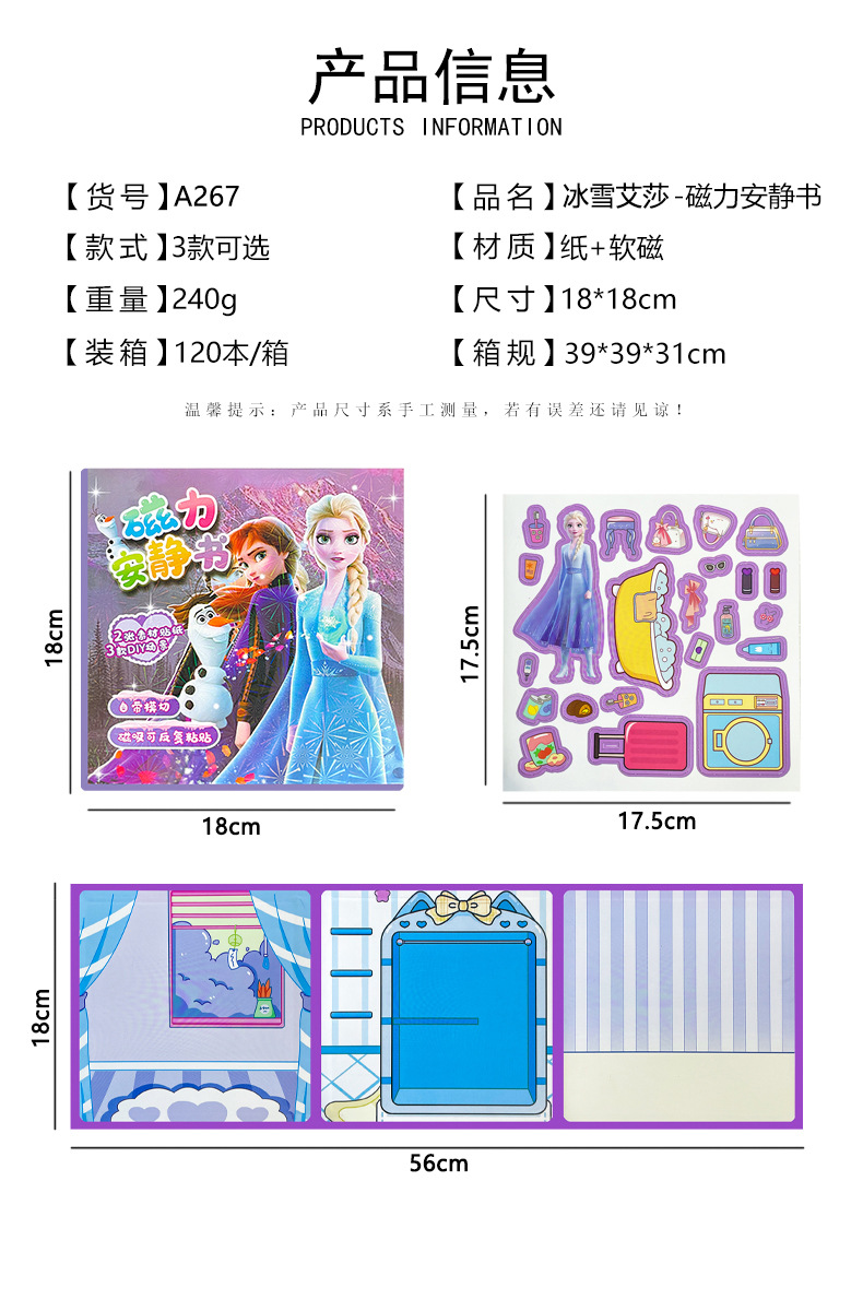자기 조용한 책 냉동 공주 아이샤 소녀 원피스 업 새로운 장면 어린이 수제 교육 자기 장난감스토어 가기