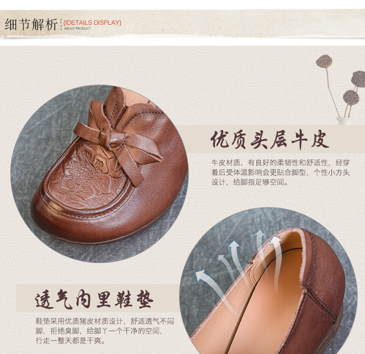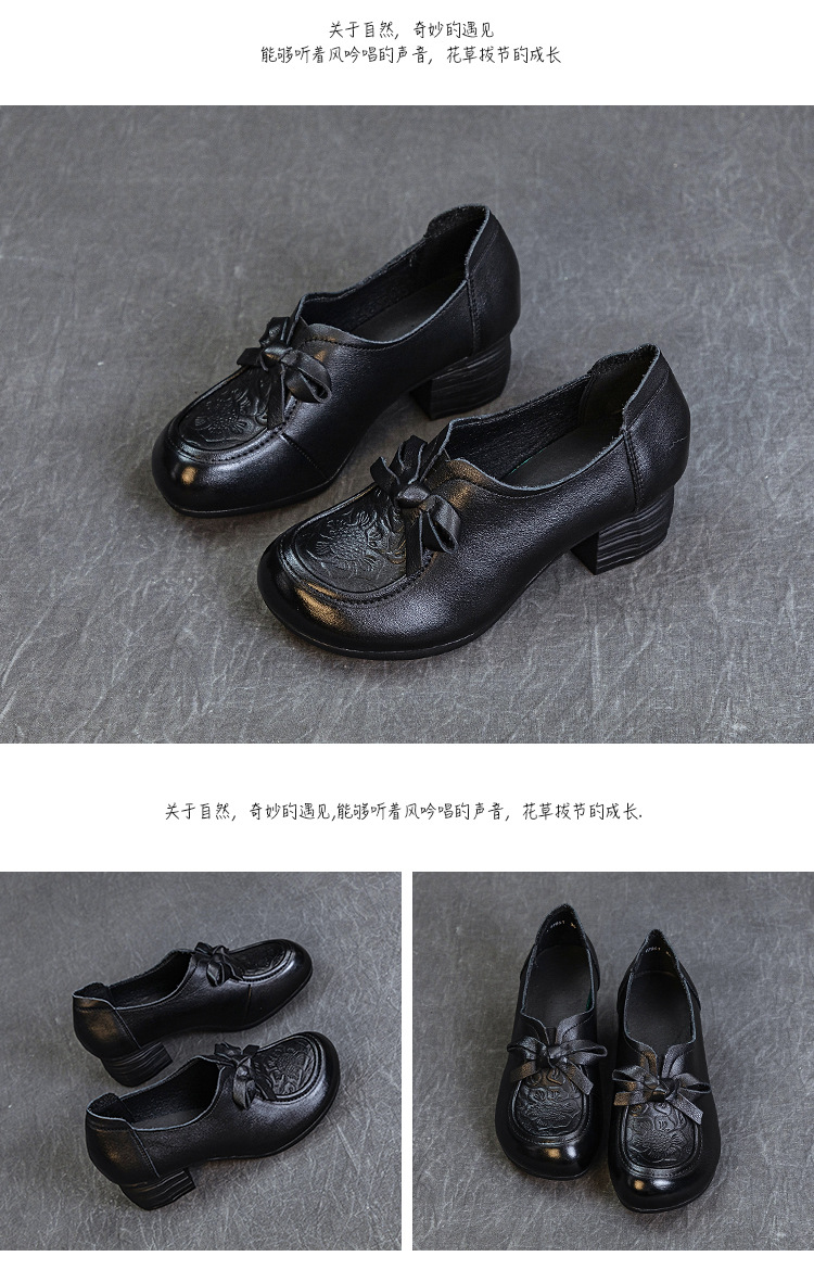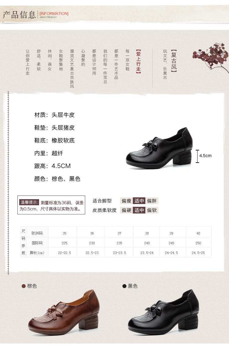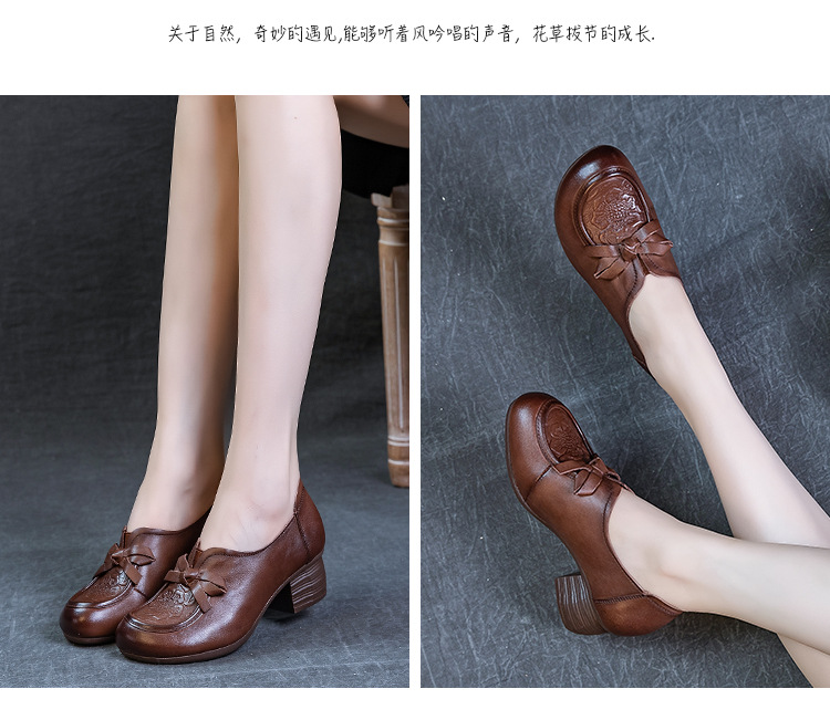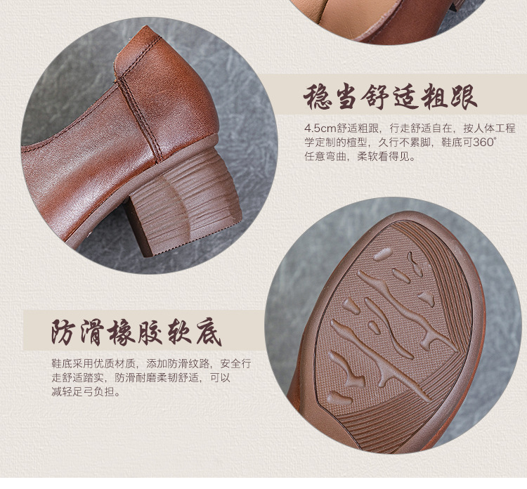 가을 2024 새로운 정품 가죽 여성 싱글 레이어 신발 두꺼운 힐 소프트 하단 상단 레이어 소프트 Cowhide 딥 활 신발스토어 가기