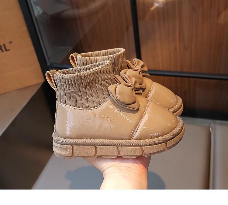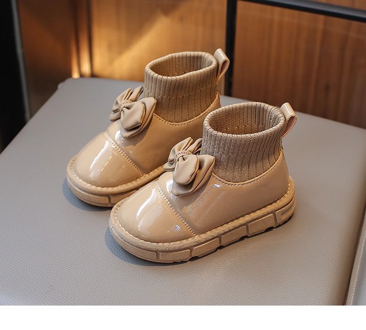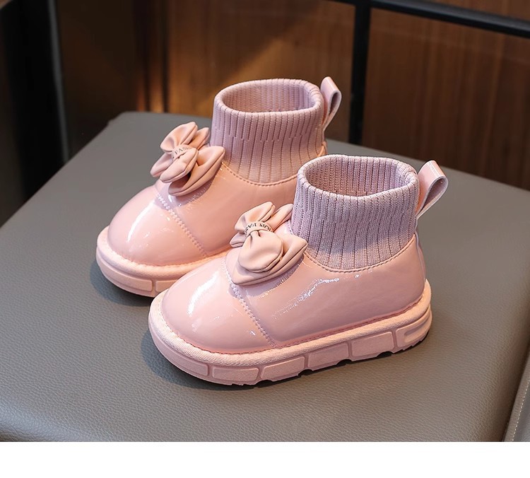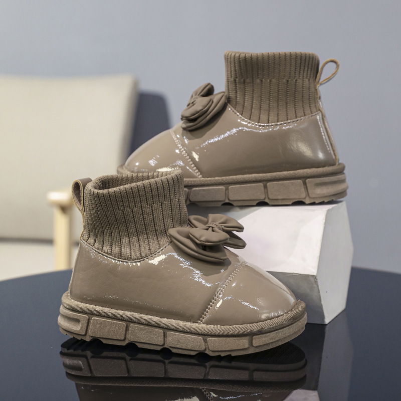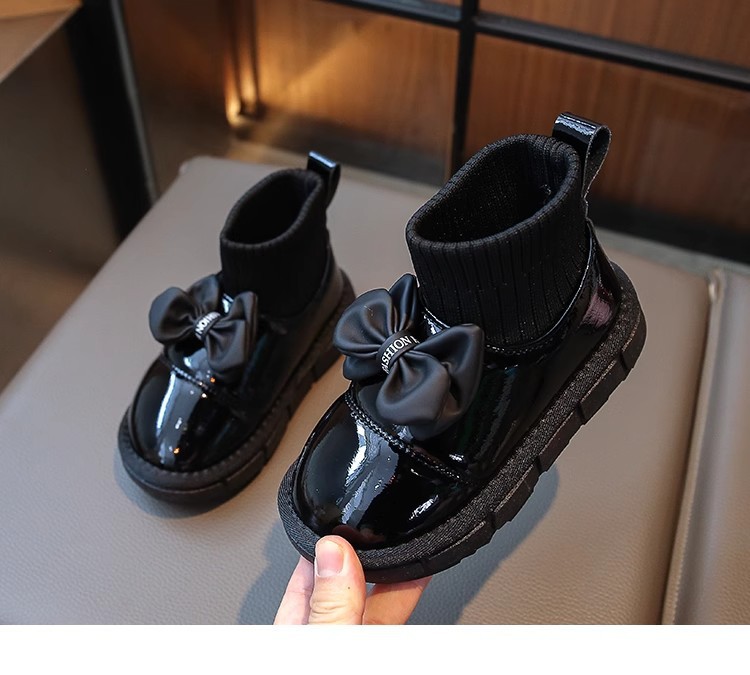 소녀 가죽 부츠 가을 및 겨울 새로운 어린이 소프트 솔 기모 코튼 슈즈 중형 및 대형 어린이 따뜻한 마틴 부츠 걸스 양말