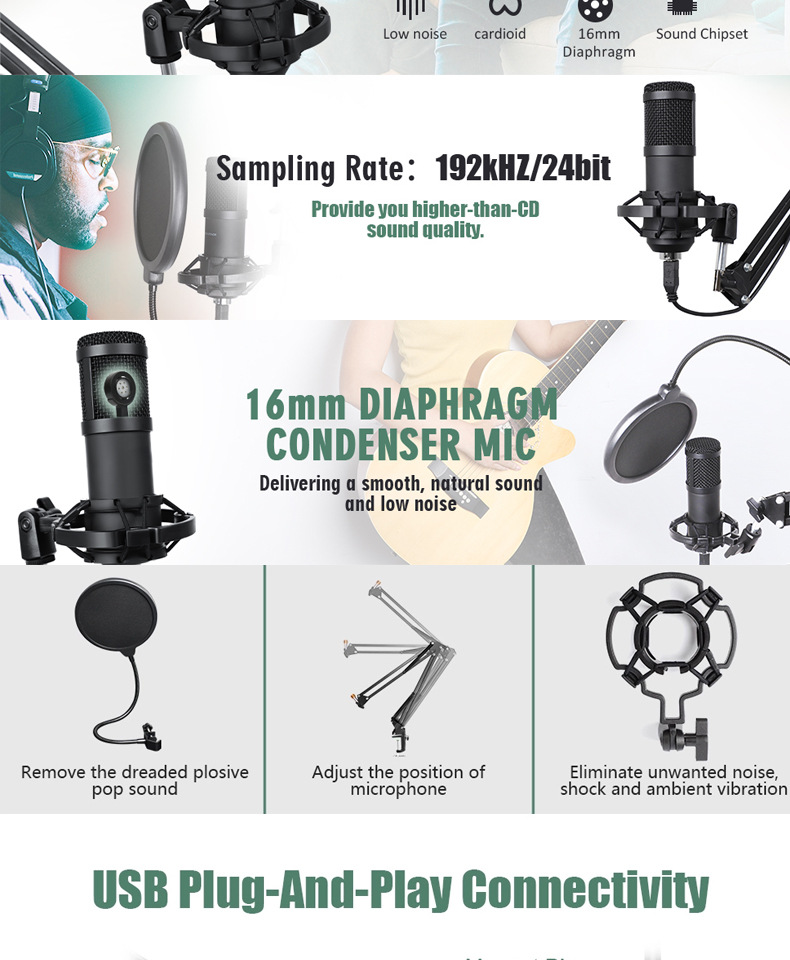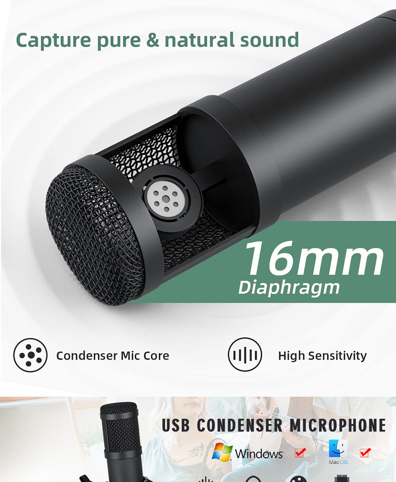 국경 간 BM800 콘덴서 마이크 라이브 USB 마이크 휴대 전화 컴퓨터 네트워크 앵커 K 노래 녹음 마이크