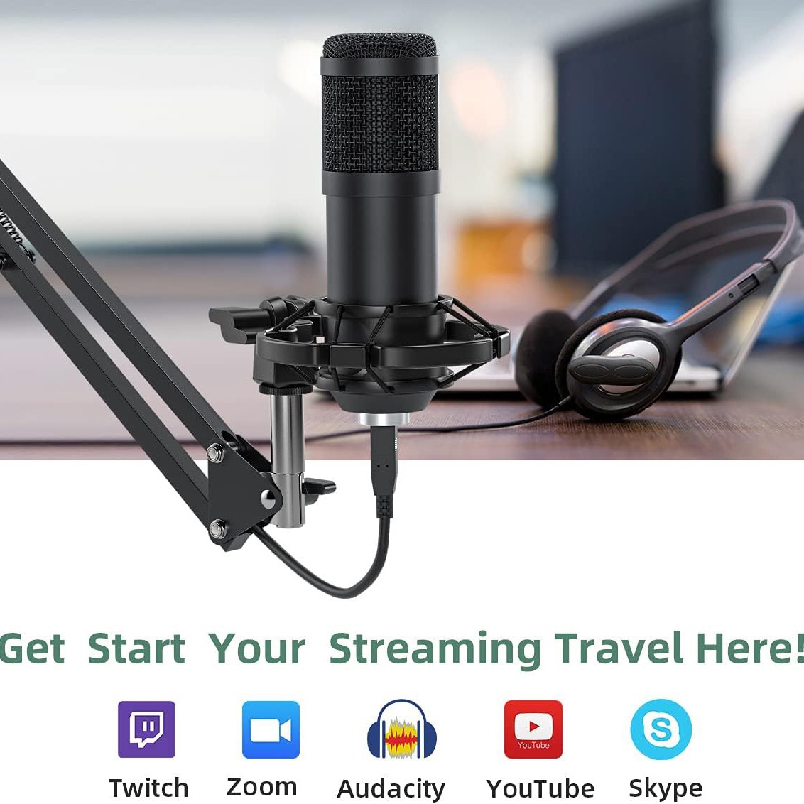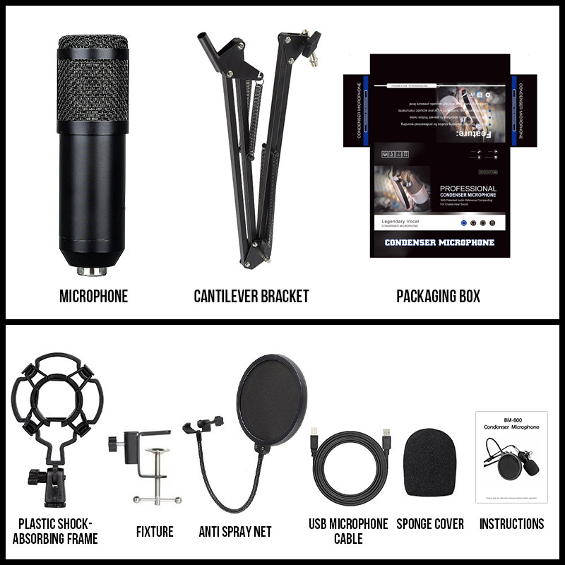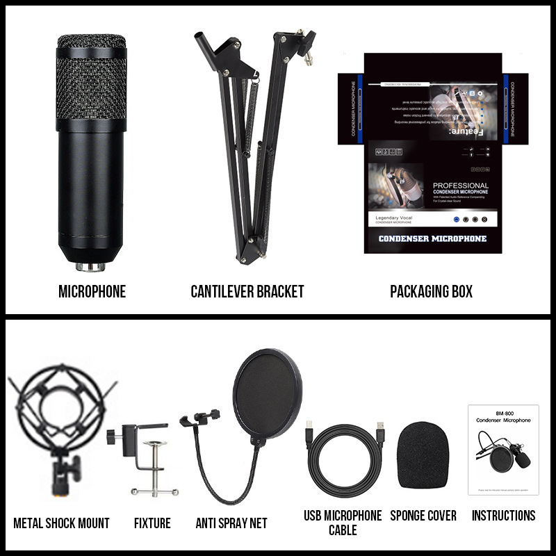국경 간 BM800 콘덴서 마이크 라이브 USB 마이크 휴대 전화 컴퓨터 네트워크 앵커 K 노래 녹음 마이크스토어 가기