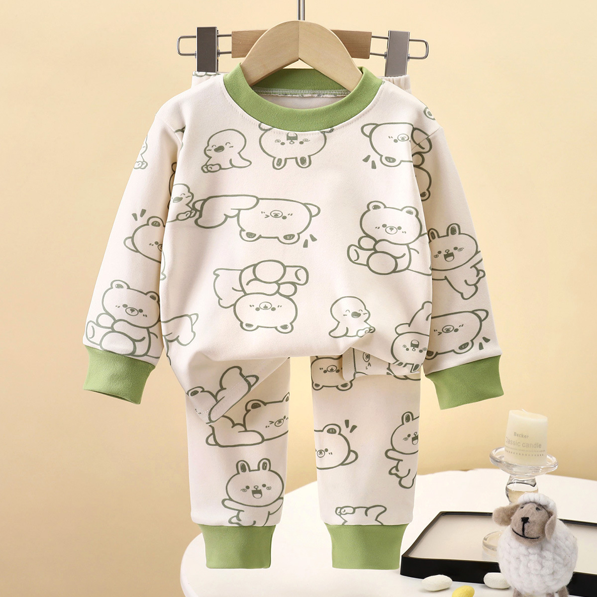어린이 속옷 세트 양면 양면 양털 가을 옷 가을 바지 소년 집 옷 가을과 겨울 소녀 잠옷 둥근 목 새스토어 가기