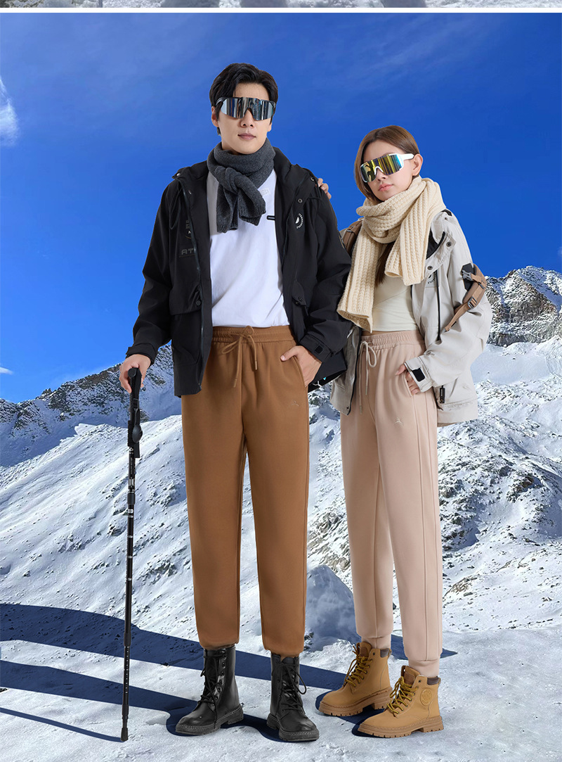 2025 가을 겨울 두꺼운 플리스 안감 스포츠 바지 여성용 야외 방한 캐주얼 바지 하이웨이스트 슬림핏 커플용 하렘 바람막이 바지