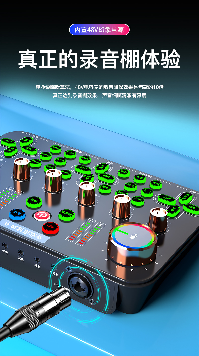 국내 공급 K700 라이브 사운드 카드는 휴대 전화 사운드 카드 48v 사운드 카드의 48V 커패시터 마이크 전체 세트와 일치 할 수 있습니다스토어 가기