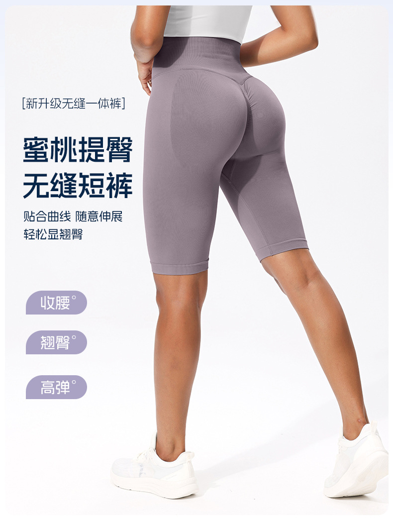 欧美跨境运动短裤女蜜桃臀紧身跑步瑜伽服裸感高腰五分健身瑜伽裤