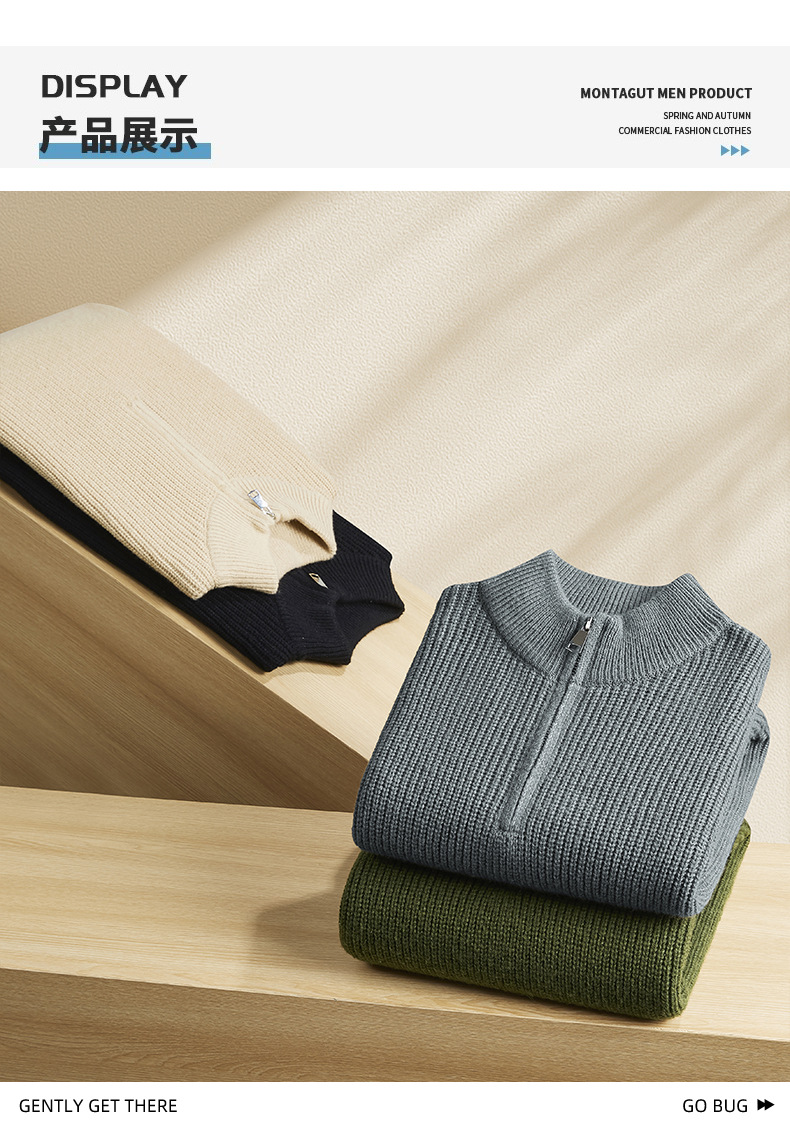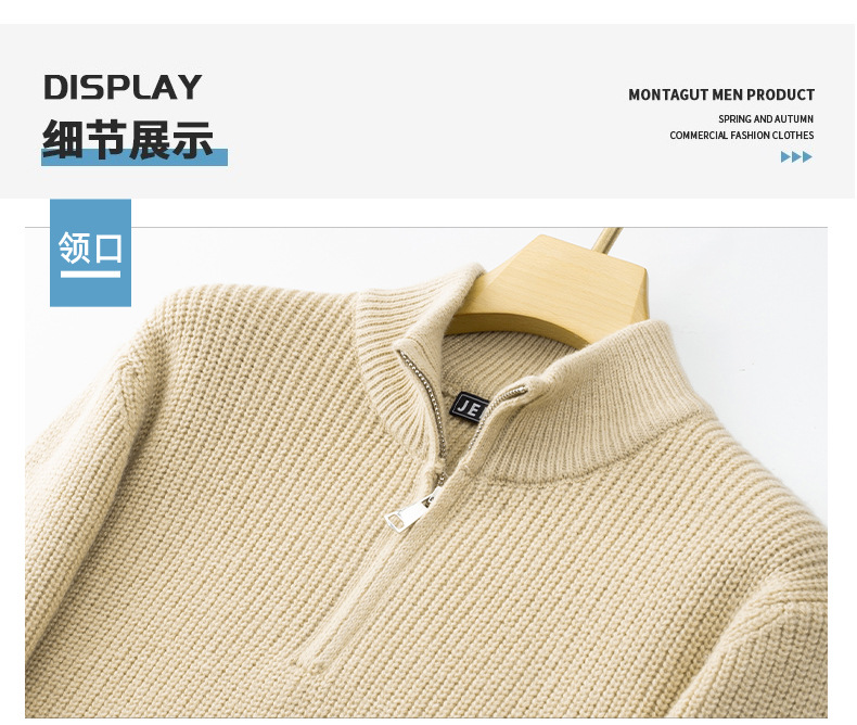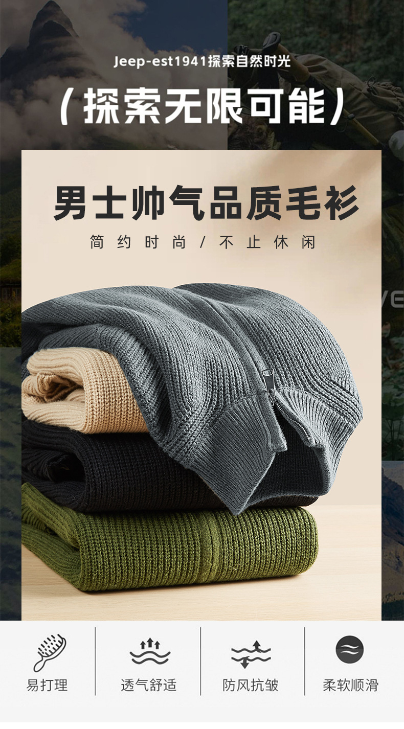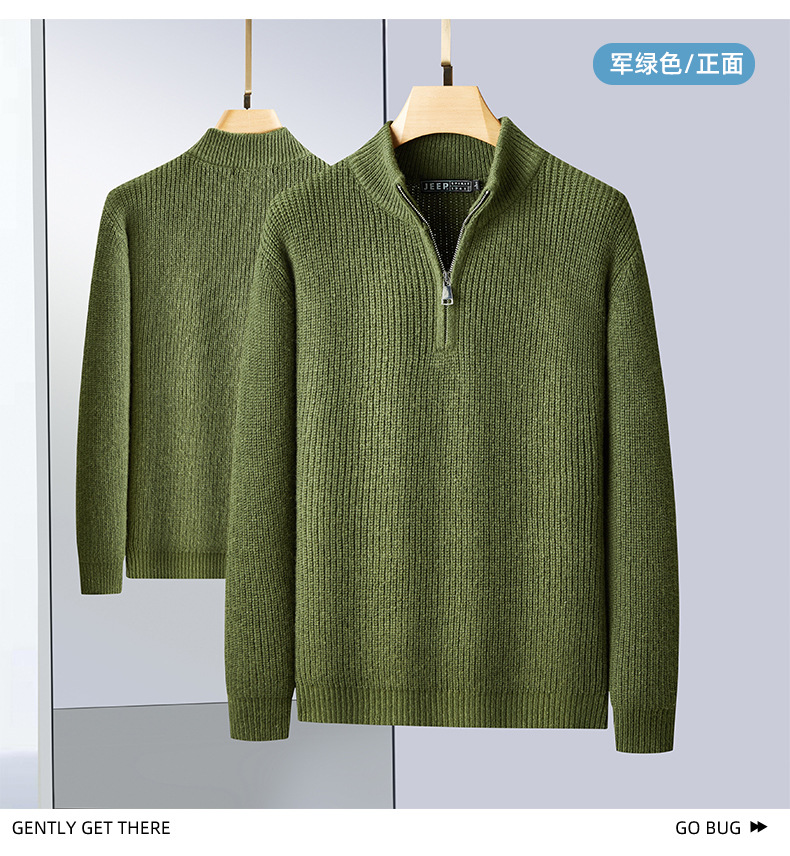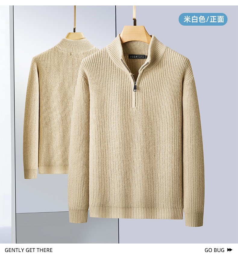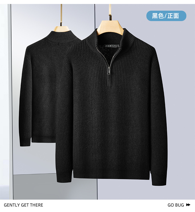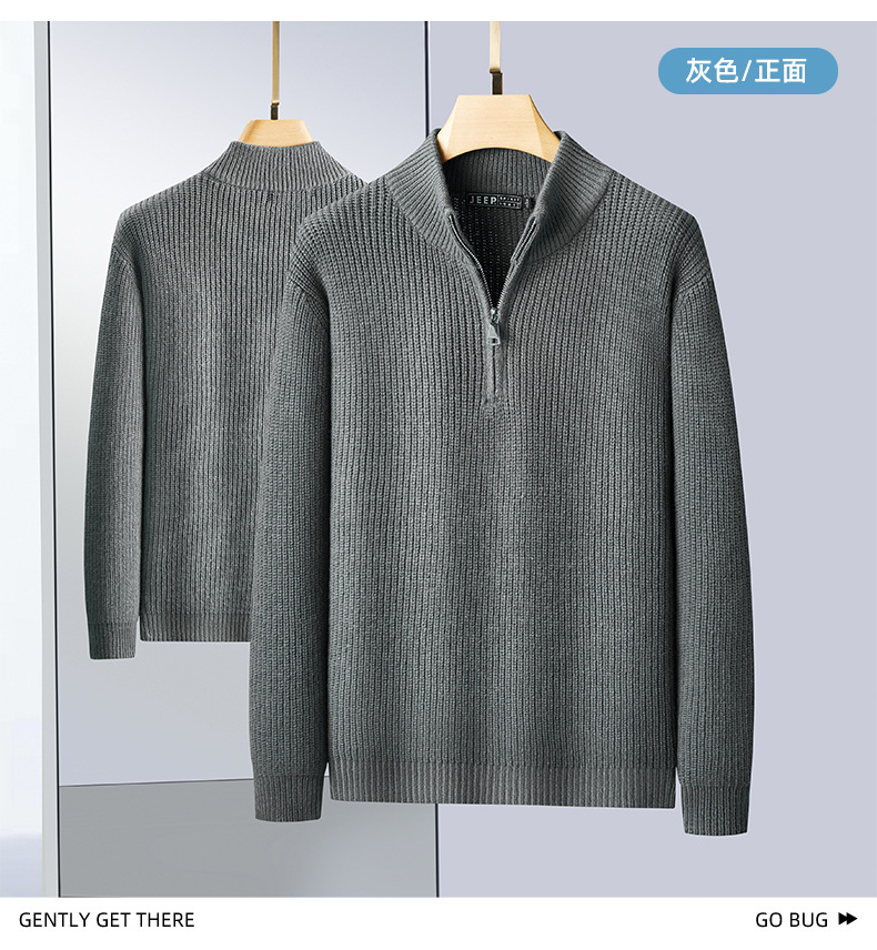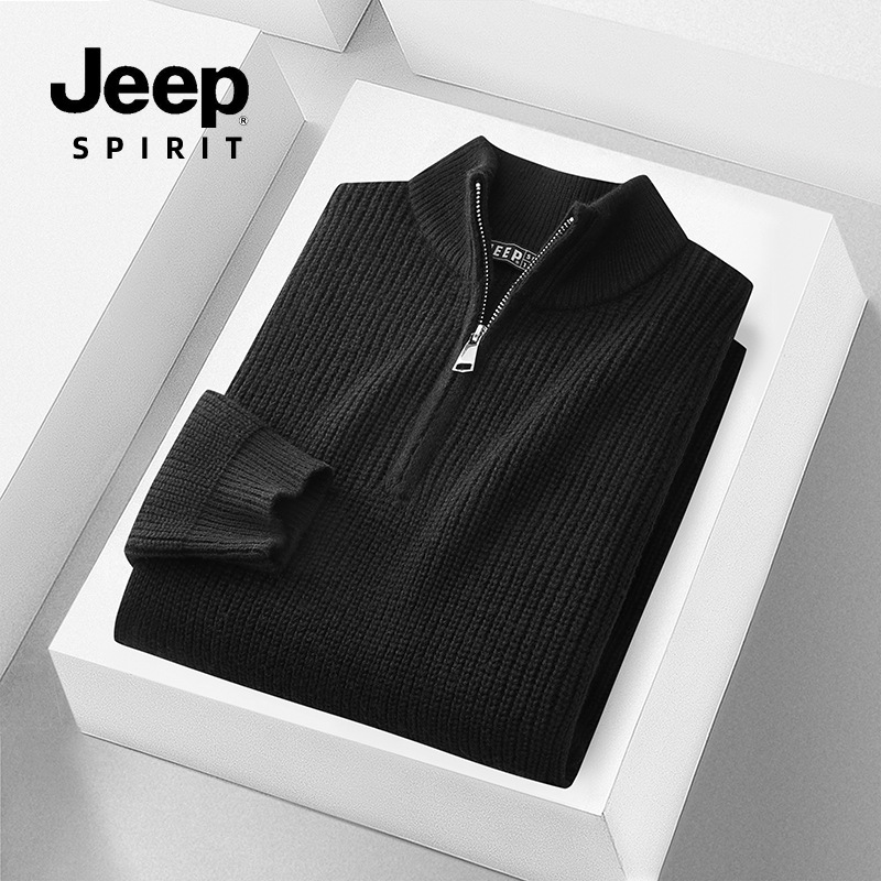 JEEP SPIRIT 2024 가을과 겨울 남자 반 지퍼 스웨터 편안한 통기성 따뜻한 잠금 온도 캐주얼 패션스토어 가기