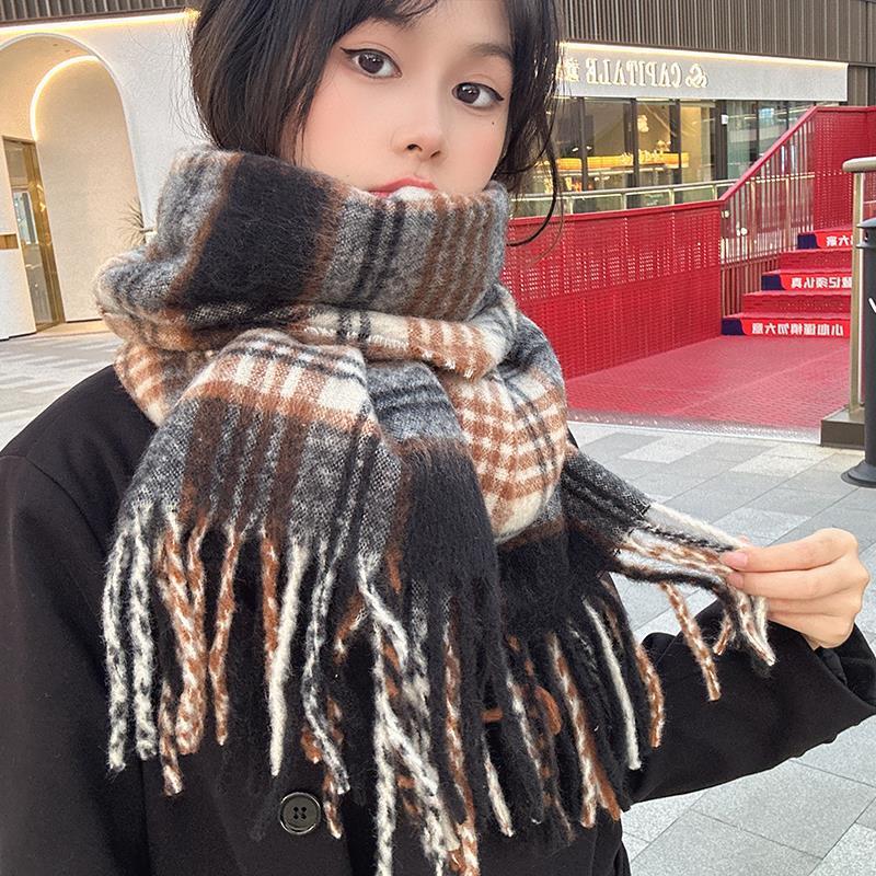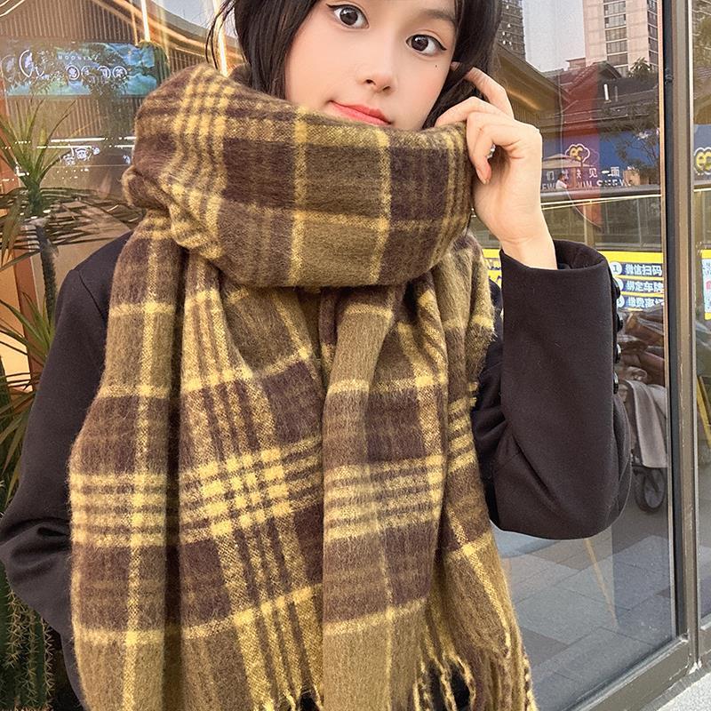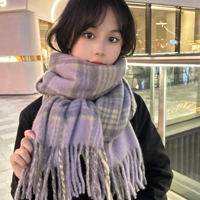 포도와 복숭아 ~ Yuanzi * 앰비언스 두꺼운 격자 무늬 스카프 올매치 따뜻한 술 스카프 가을과 겨울