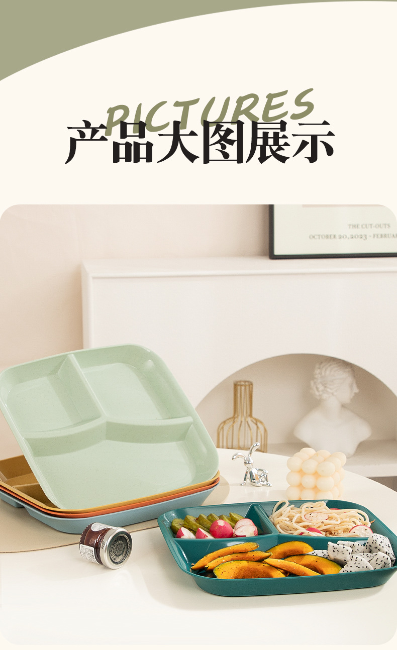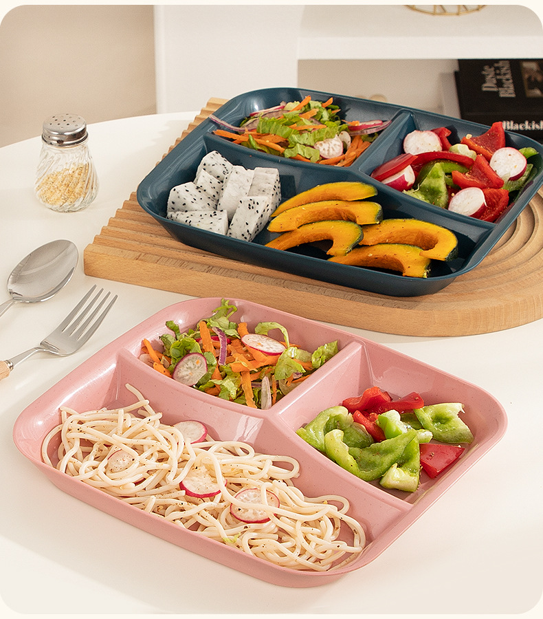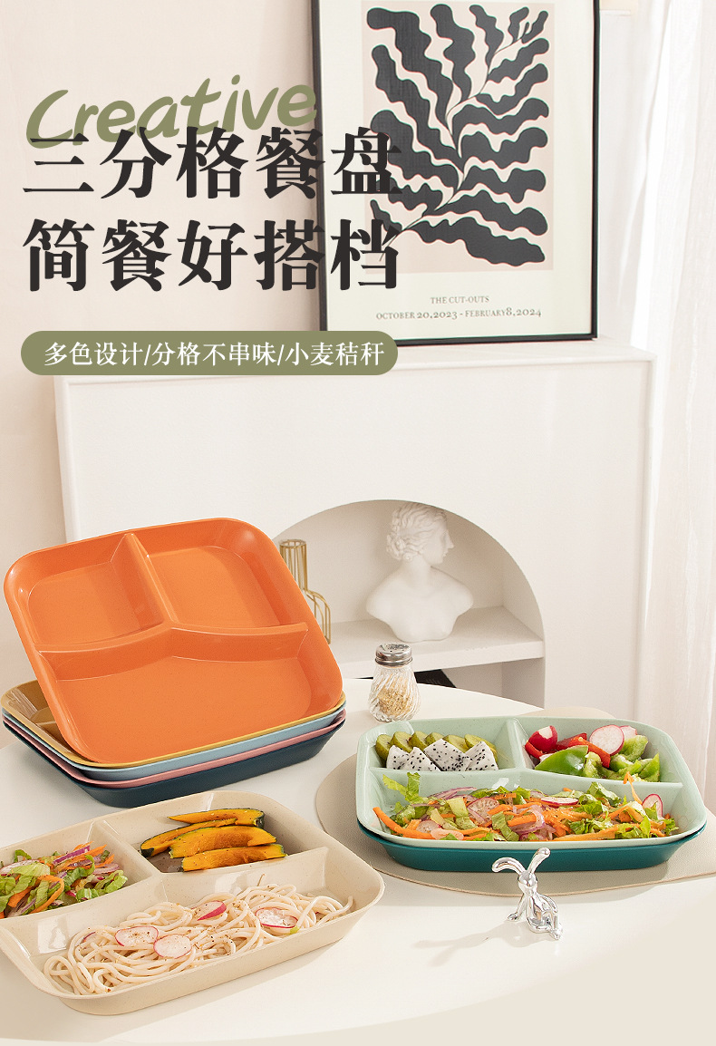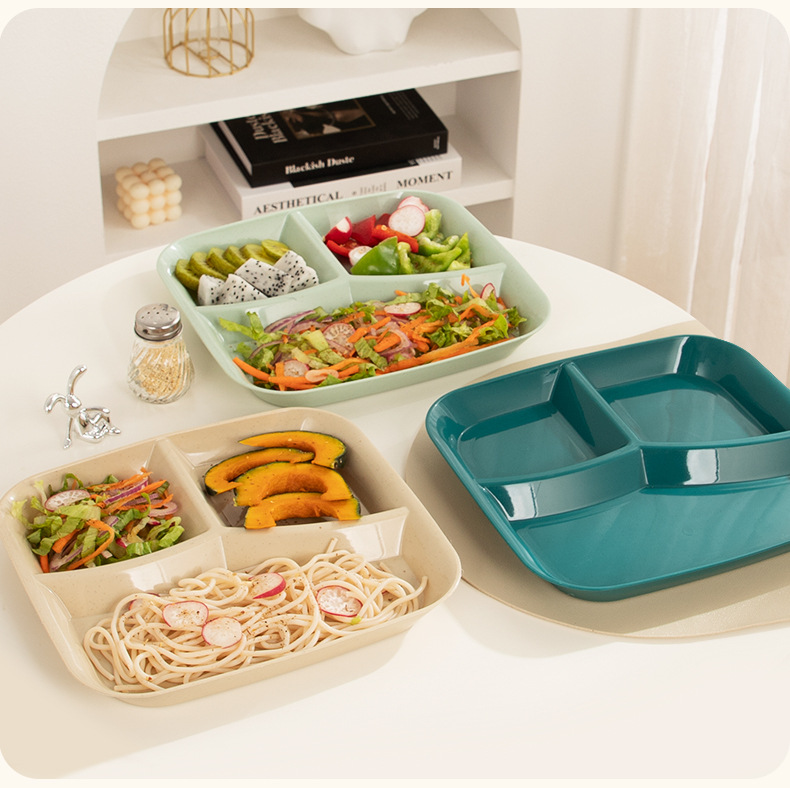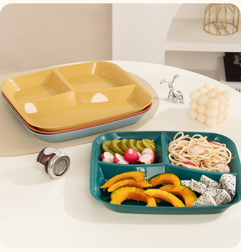 분할 된 지방 감소 판 일본식 크리에이티브 플레이트 용 사각형 3 칸 플레이트 분할 가정용 드롭 방지 크리에이티브 플라스틱 플레이트스토어 가기