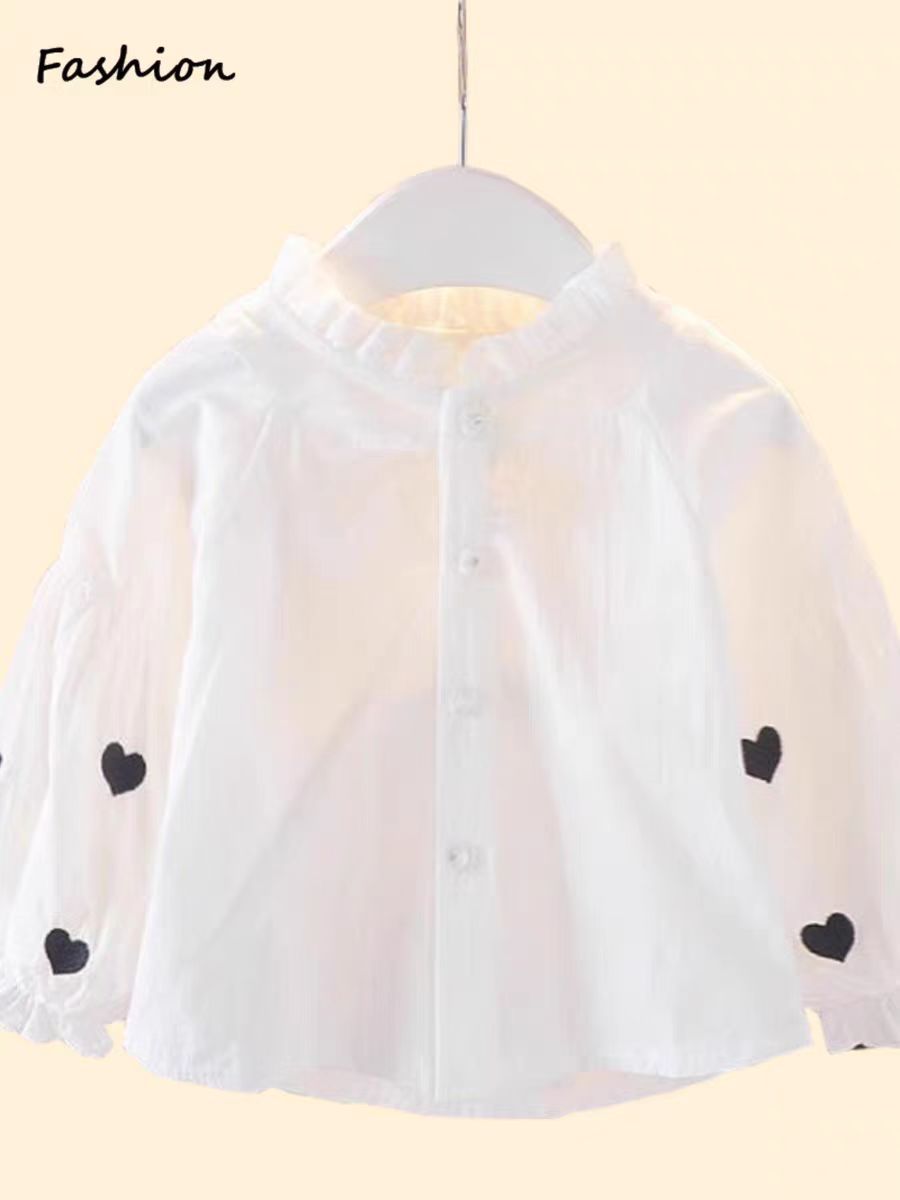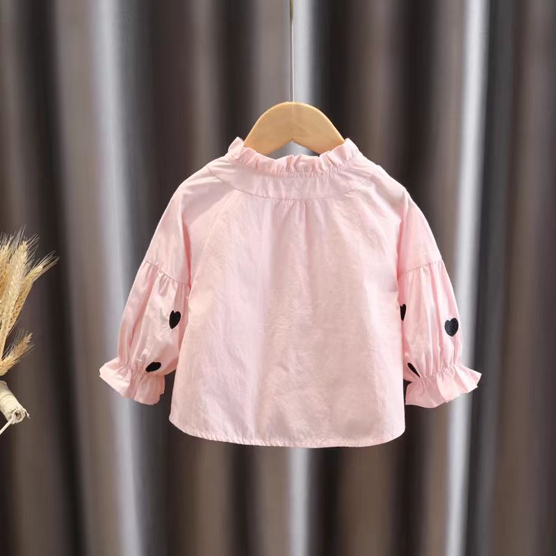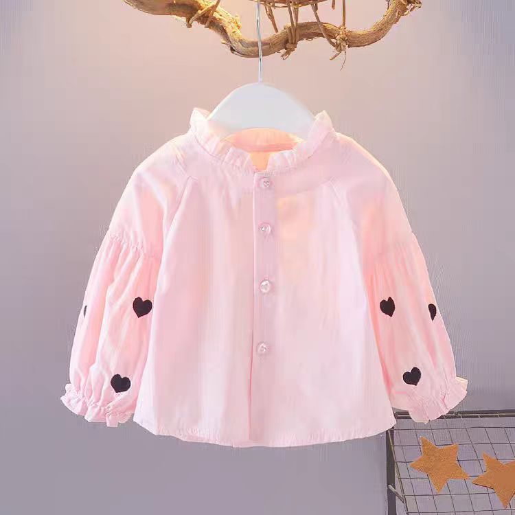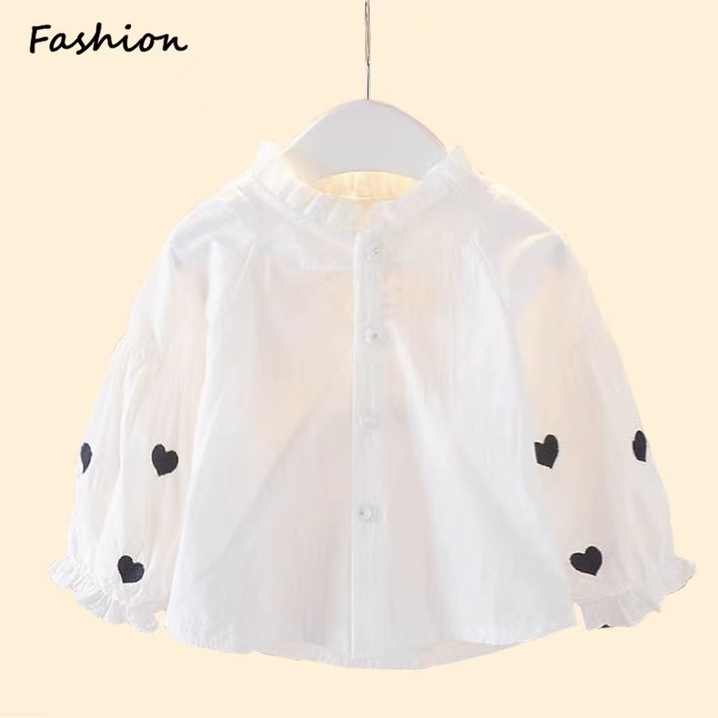 2024 가을 새 셔츠 소녀 한국 긴팔 어린이 캐주얼 패션 아기 셔츠 얇은 아동복스토어 가기