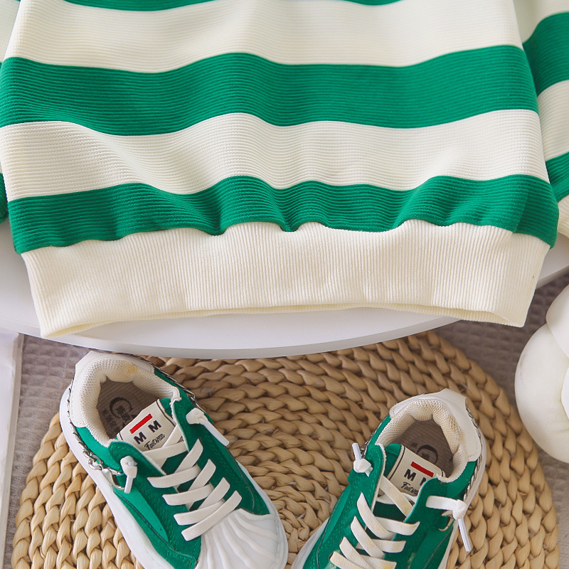 남자들의 봄 스트랩 세트 2024 새로운 아기 봄 가을 스트랩 팬츠 서양식 아기 스트라이프 투피스 세트스토어 가기