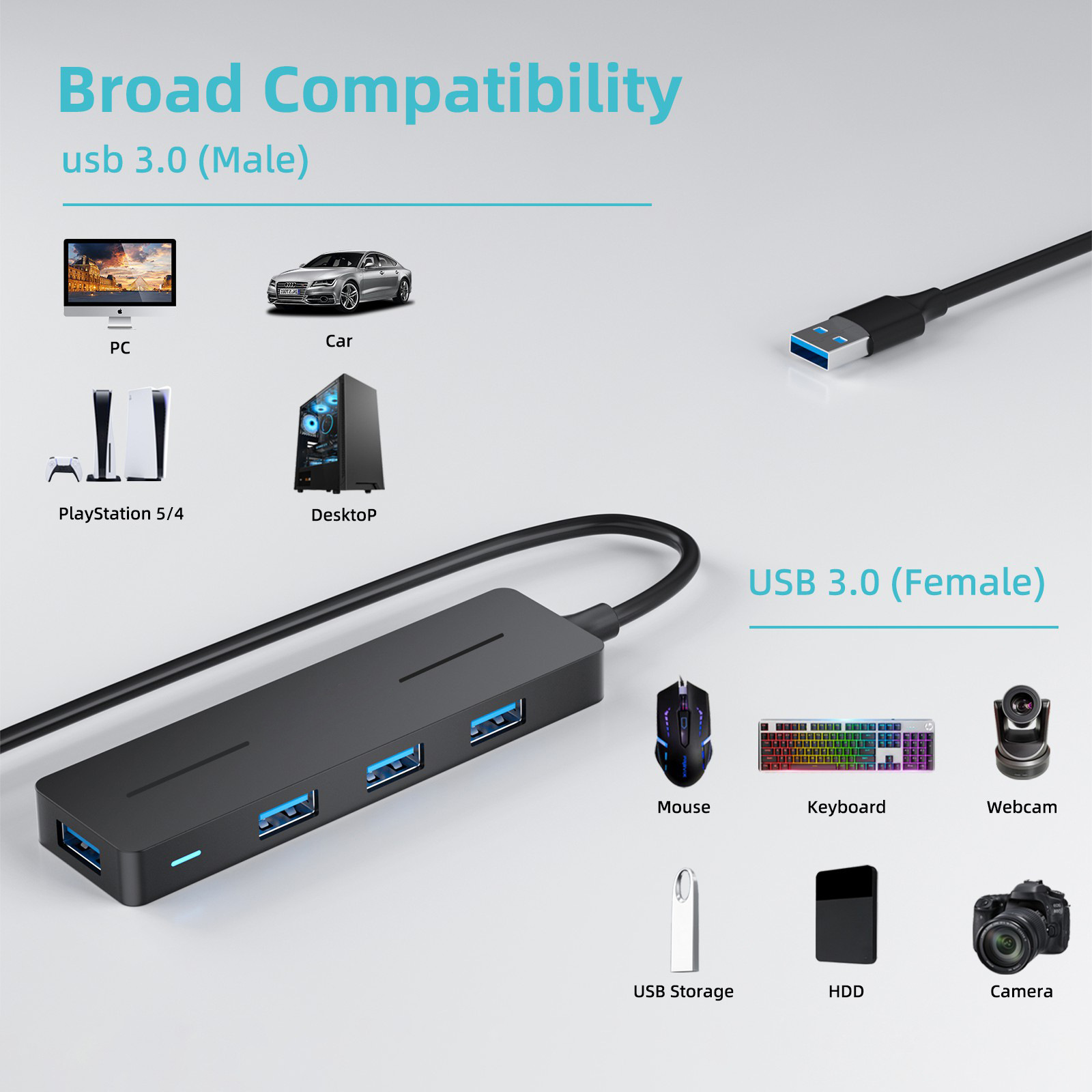 Usb3.0 허브 일대일 도킹 스테이션 4 USB 3.0 허브 스플리터 USB 도킹 스테이션 확장 도크스토어 가기