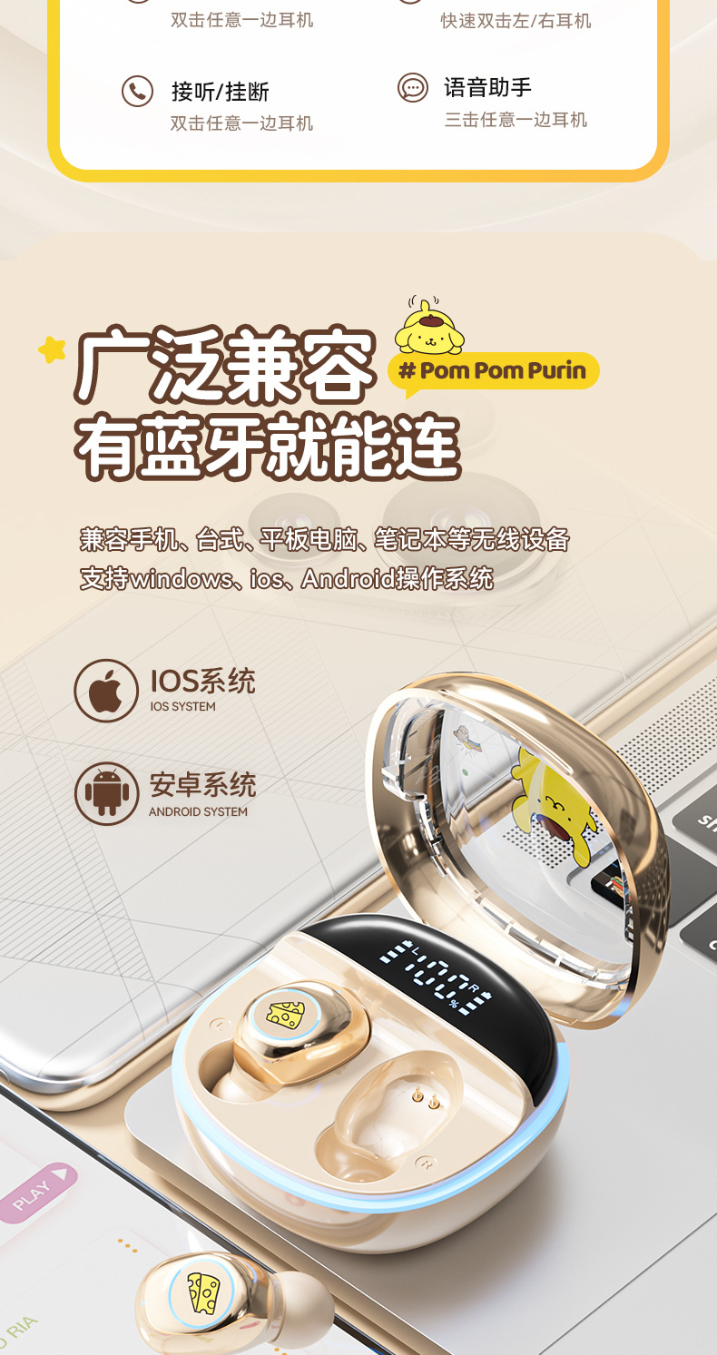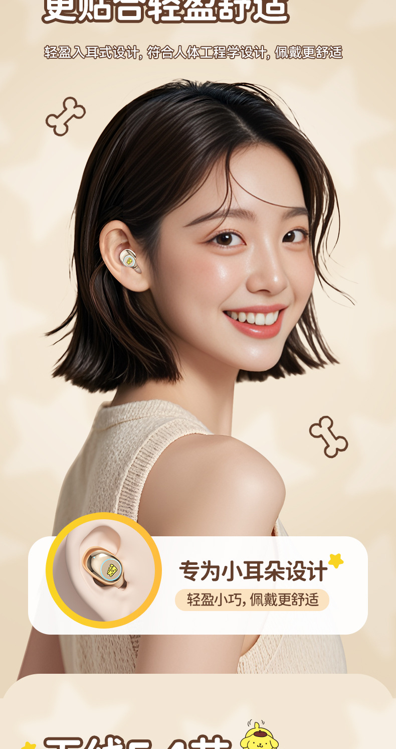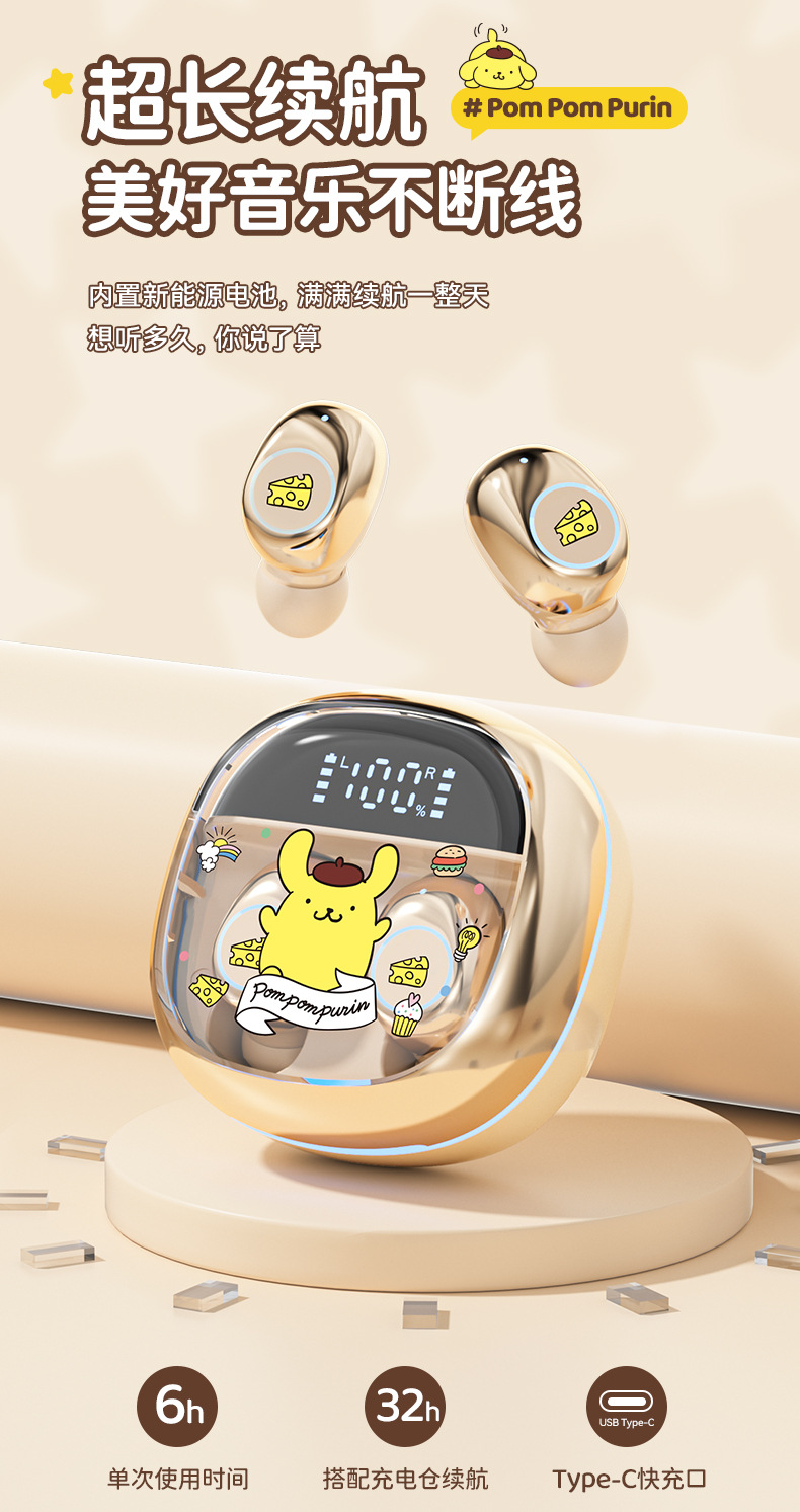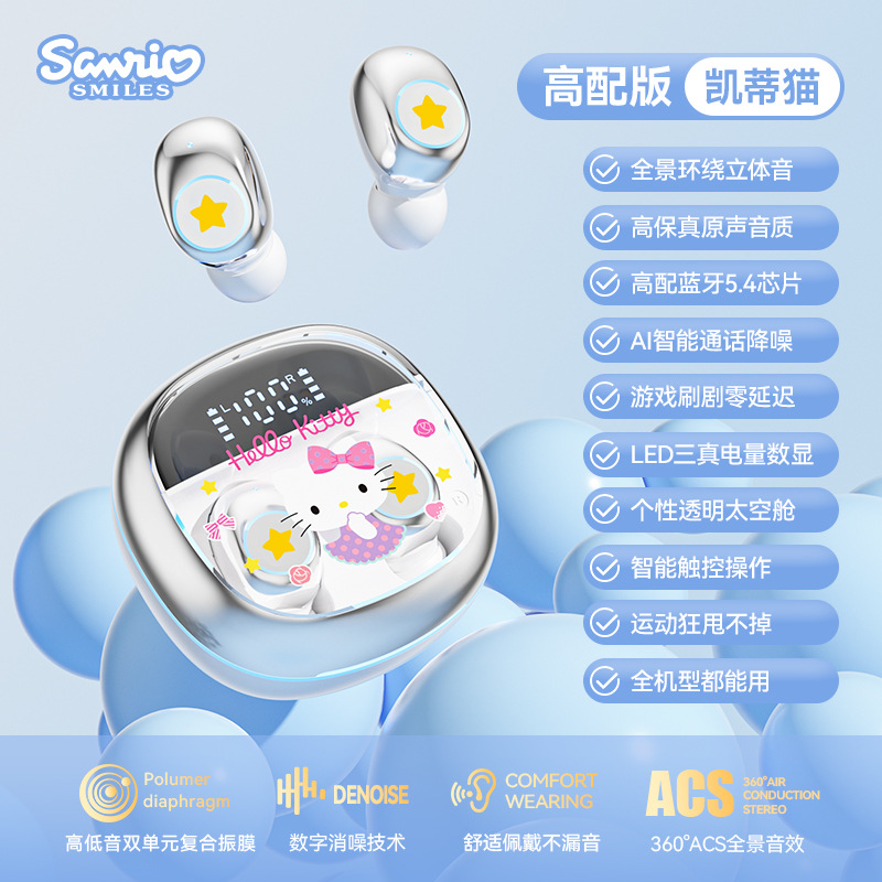 Sanrio/Sanrio 정품 블루투스 헤드셋은 휴대성이 뛰어나고 귀엽고 멋스러우며, 이어폰형으로 착용감이 향상되어 더욱 편안합니다.