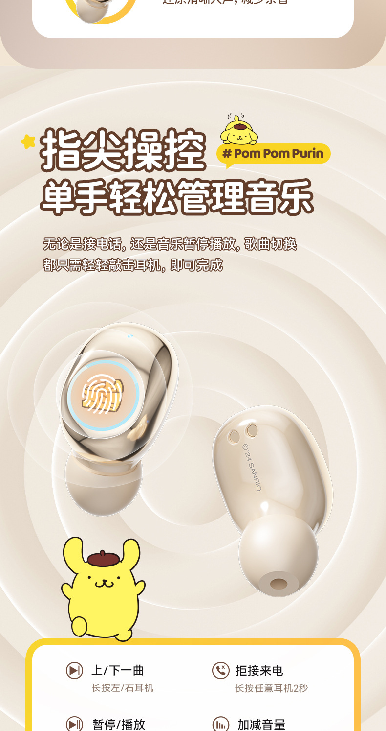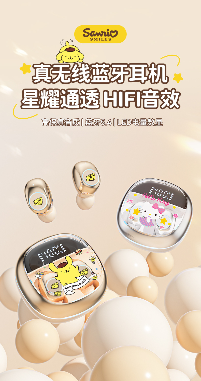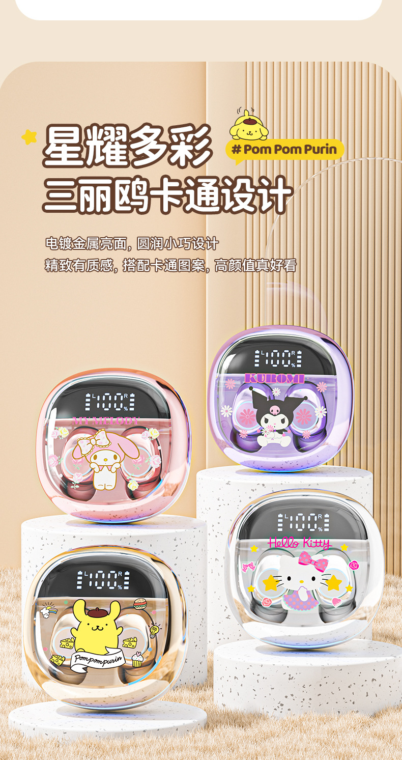 Sanrio/Sanrio 정품 블루투스 헤드셋은 휴대성이 뛰어나고 귀엽고 멋스러우며, 이어폰형으로 착용감이 향상되어 더욱 편안합니다.스토어 가기