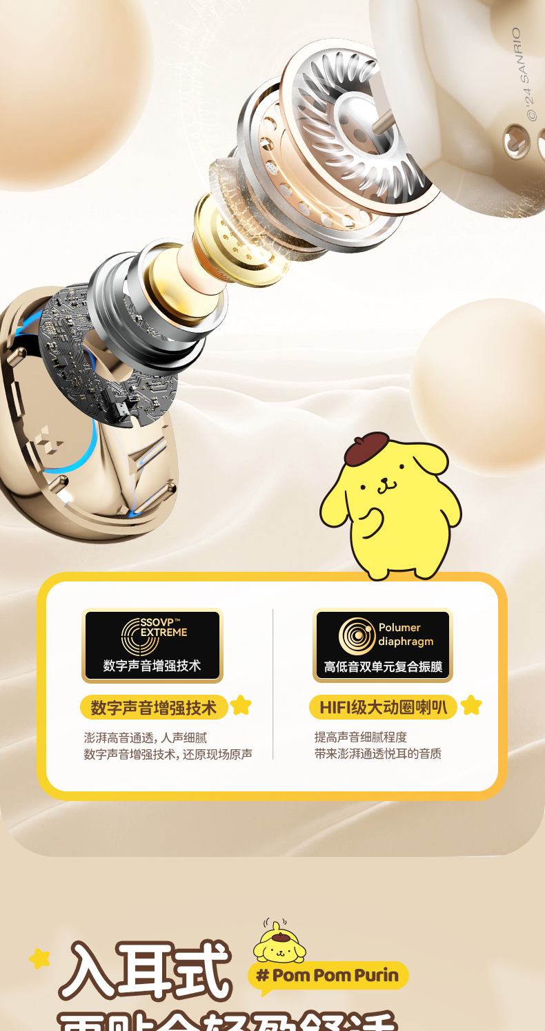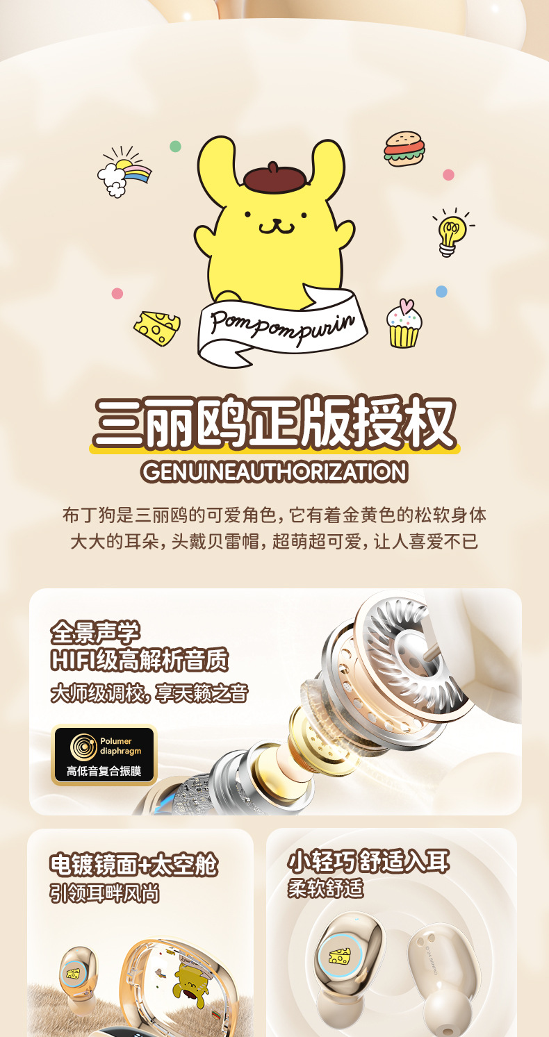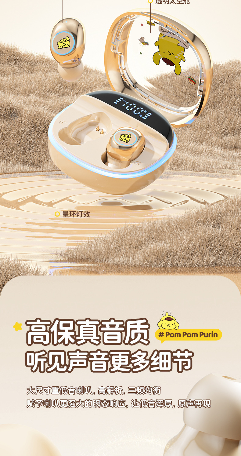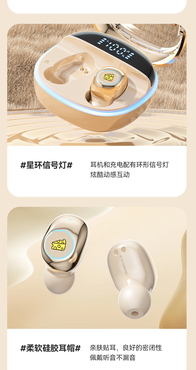 Sanrio/Sanrio 정품 블루투스 헤드셋은 휴대성이 뛰어나고 귀엽고 멋스러우며, 이어폰형으로 착용감이 향상되어 더욱 편안합니다.스토어 가기