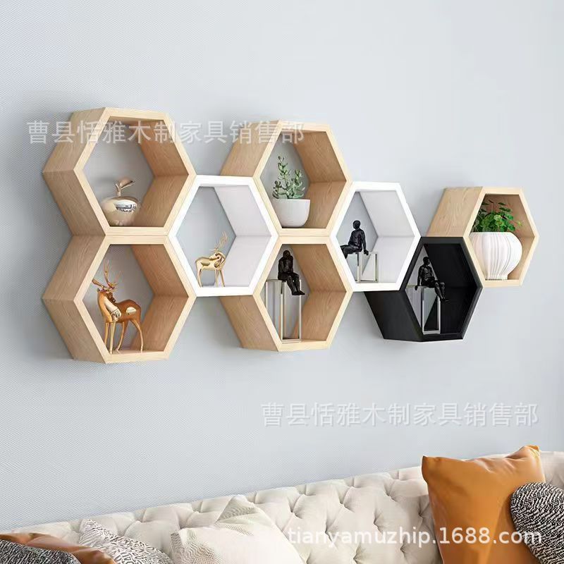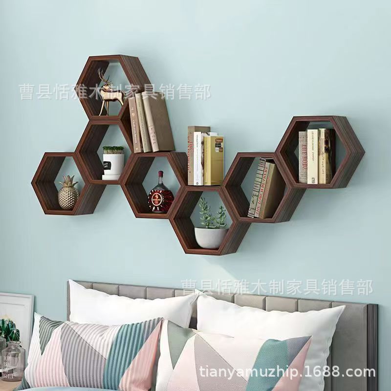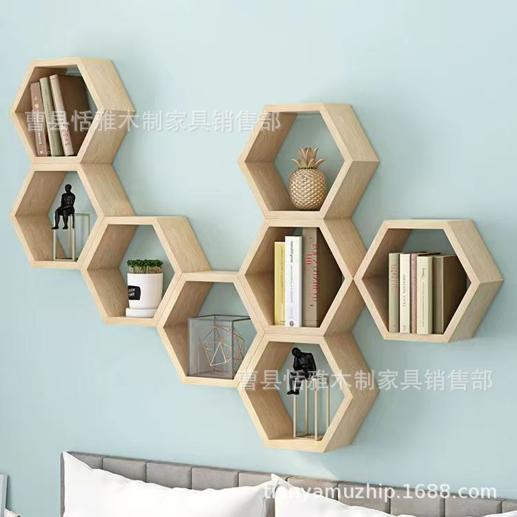 나무 육각형 벽걸이 선반 벌집 모양 선반 벽걸이 원목 벽 장식 선반