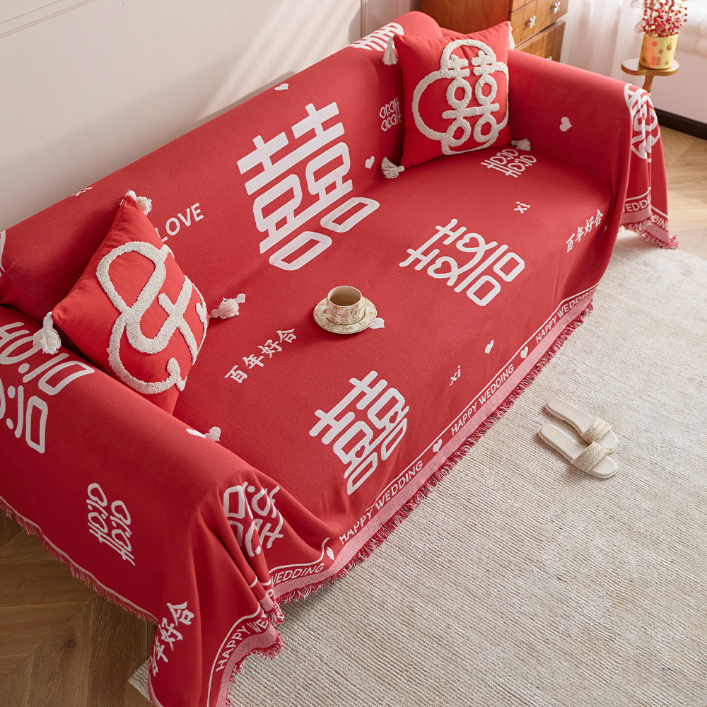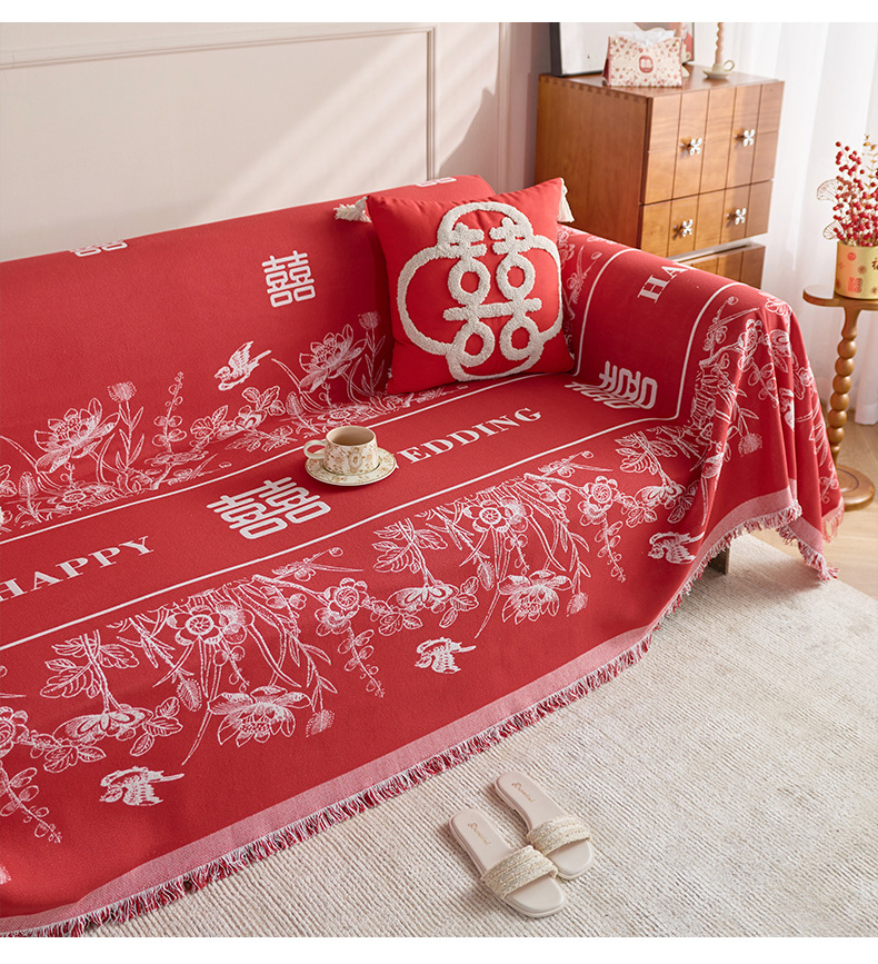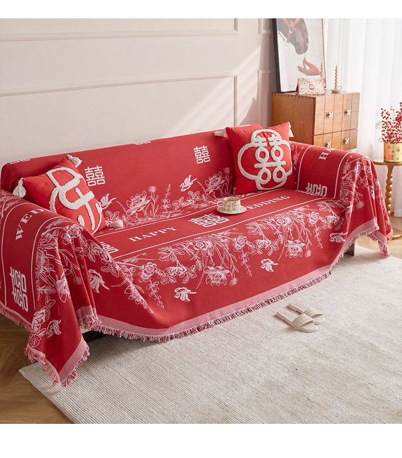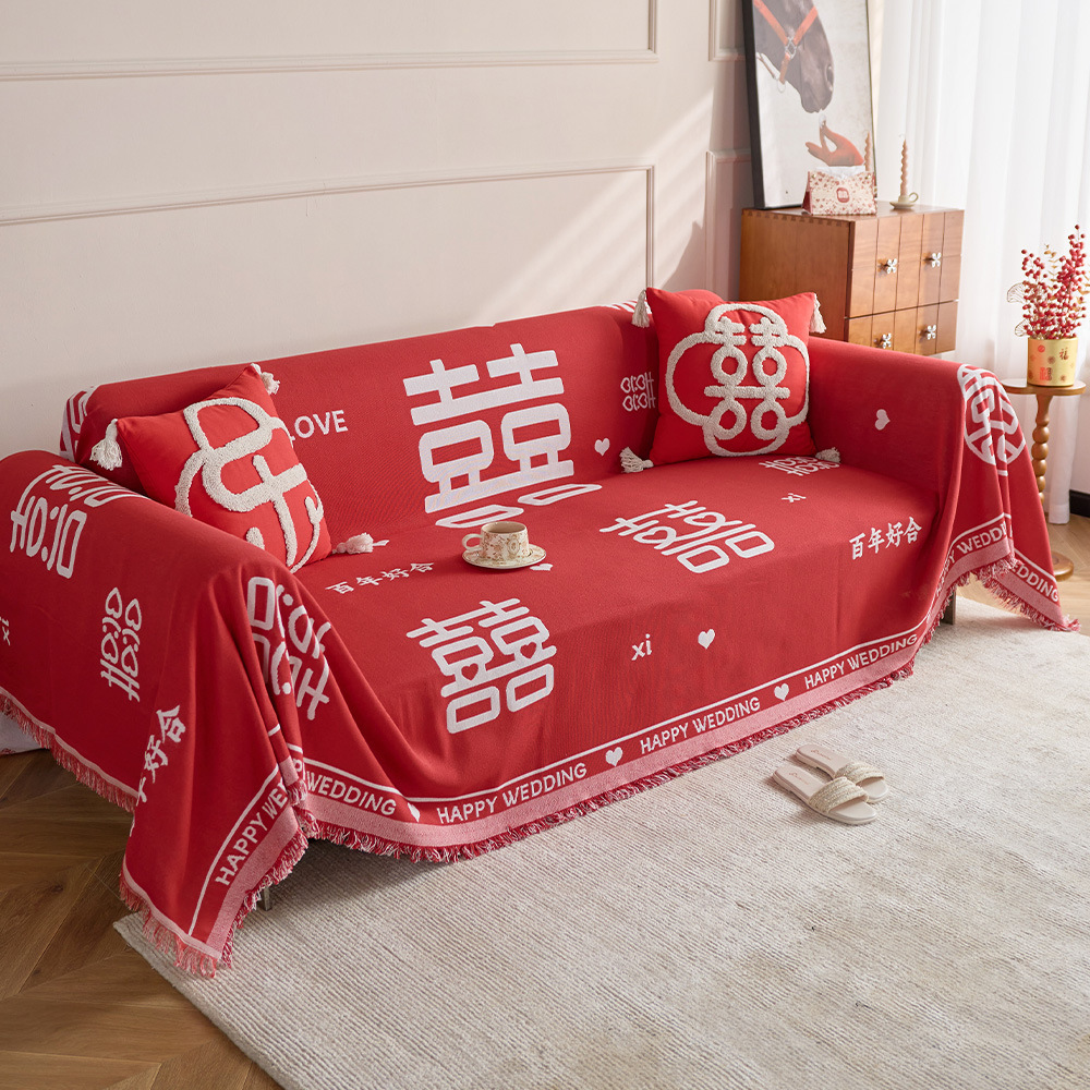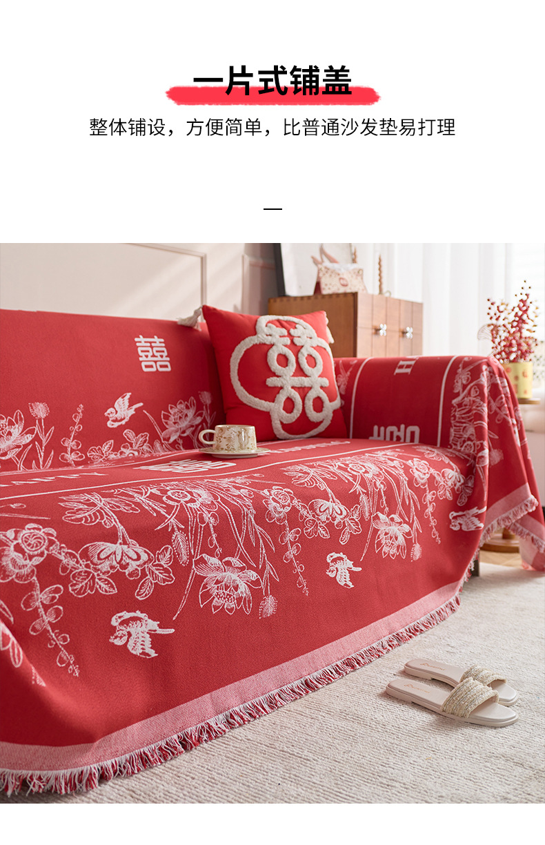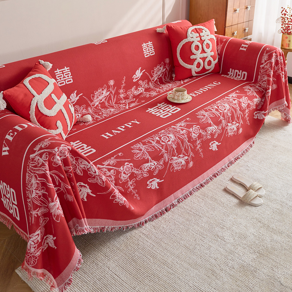 새로운 중국 스타일 축제 자카드 소파 타월 커버 천 레드 웨딩 배열 웨딩 분위기 장식 천 모든 포함 소파 커버
