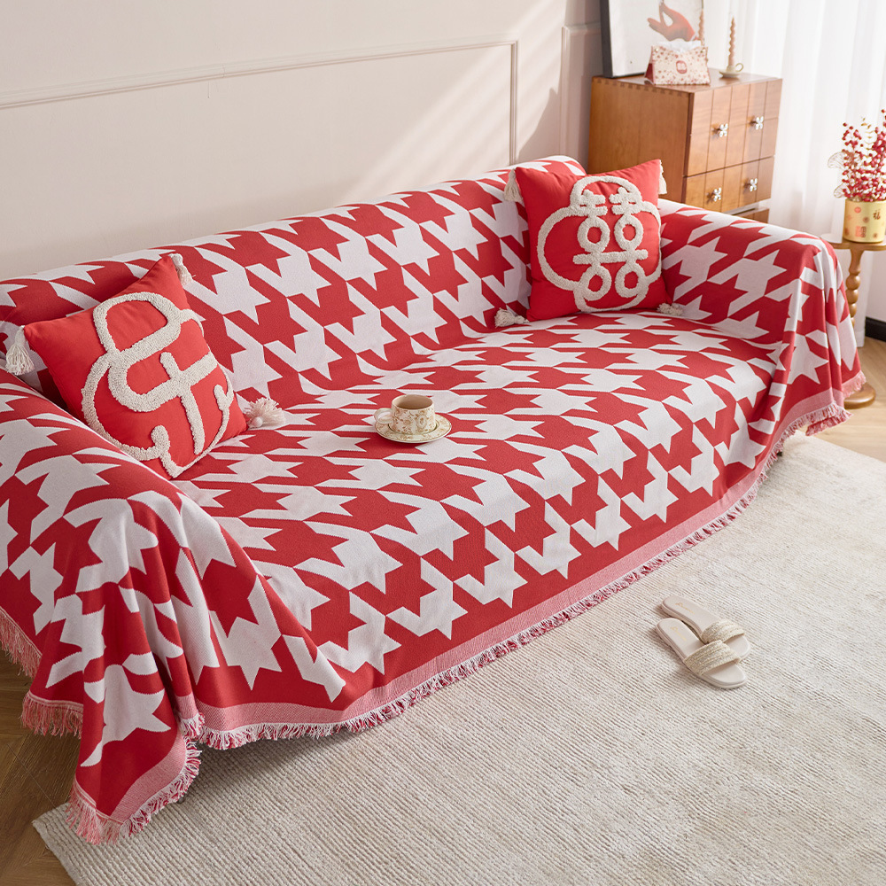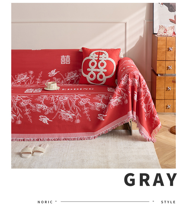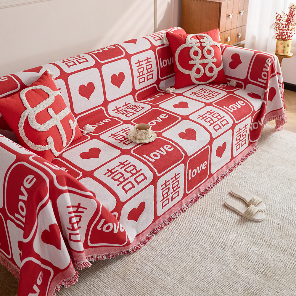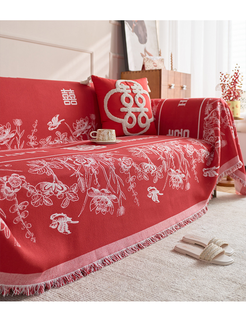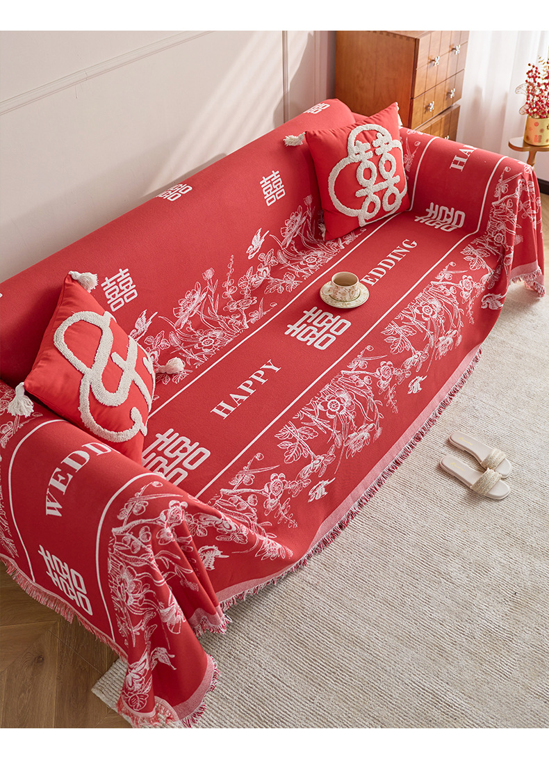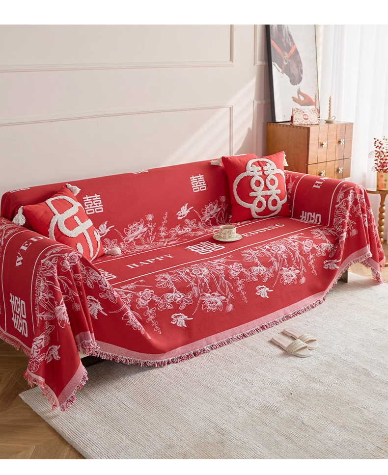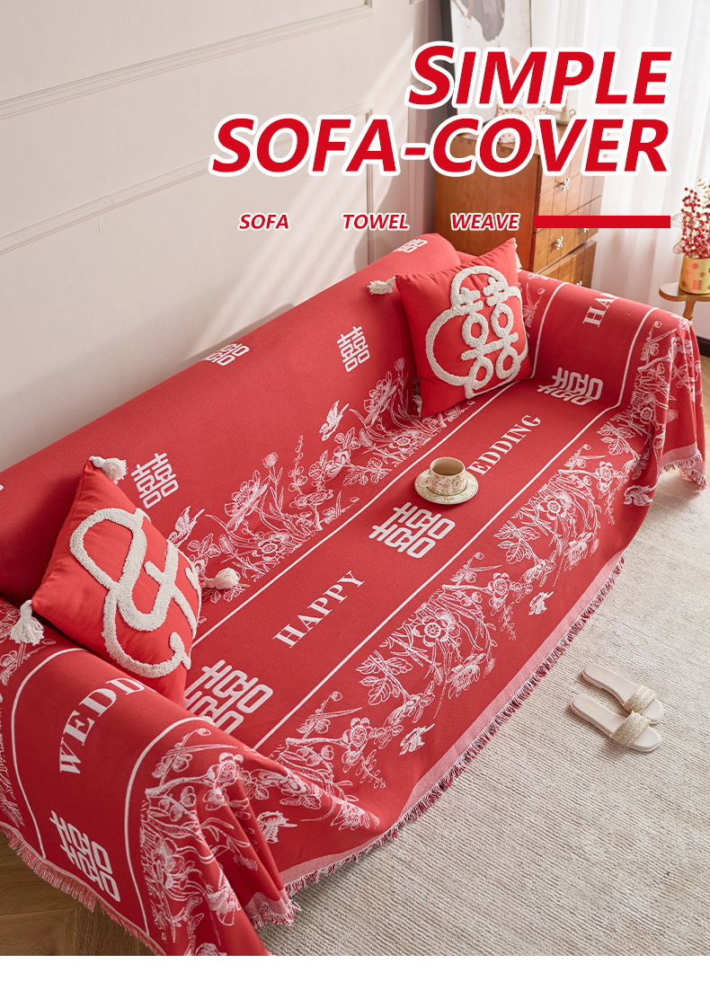 새로운 중국 스타일 축제 자카드 소파 타월 커버 천 레드 웨딩 배열 웨딩 분위기 장식 천 모든 포함 소파 커버
