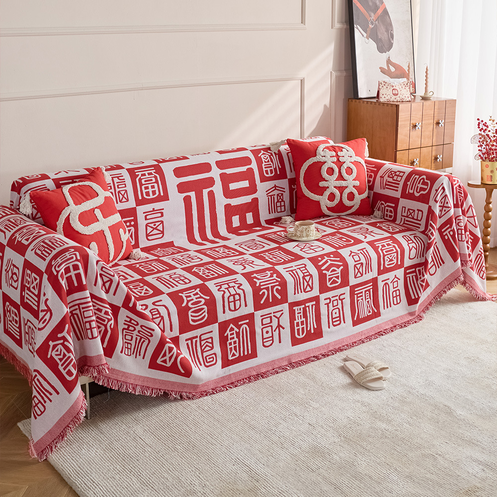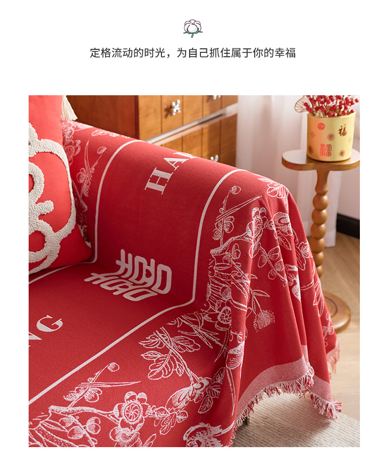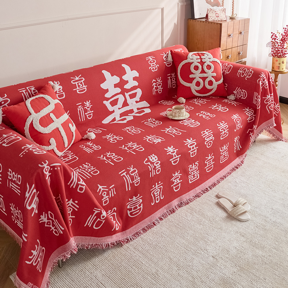 새로운 중국 스타일 축제 자카드 소파 타월 커버 천 레드 웨딩 배열 웨딩 분위기 장식 천 모든 포함 소파 커버스토어 가기
