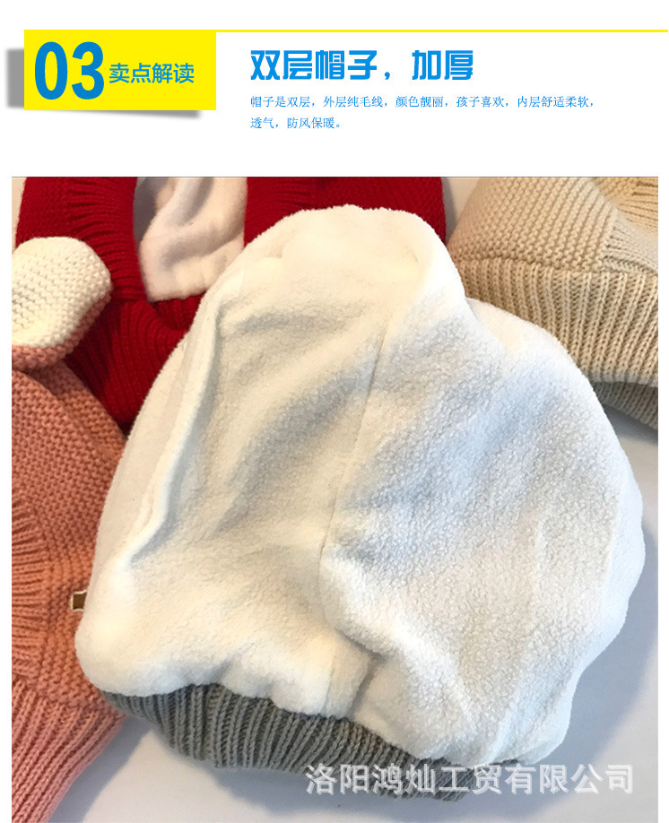 겨울 기모 두꺼운 아기 토끼 귀 보호 아기 소년과 소년의 니트 모자 귀여운 양모 모자